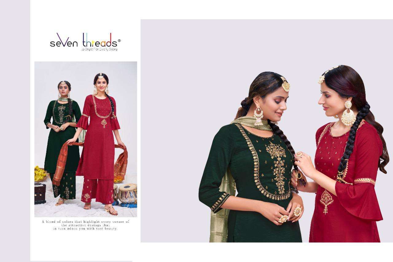 seven threads ritual viscose silk full stitch top bottom with dupatta
