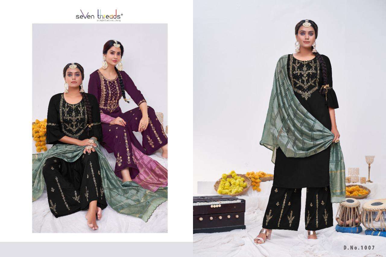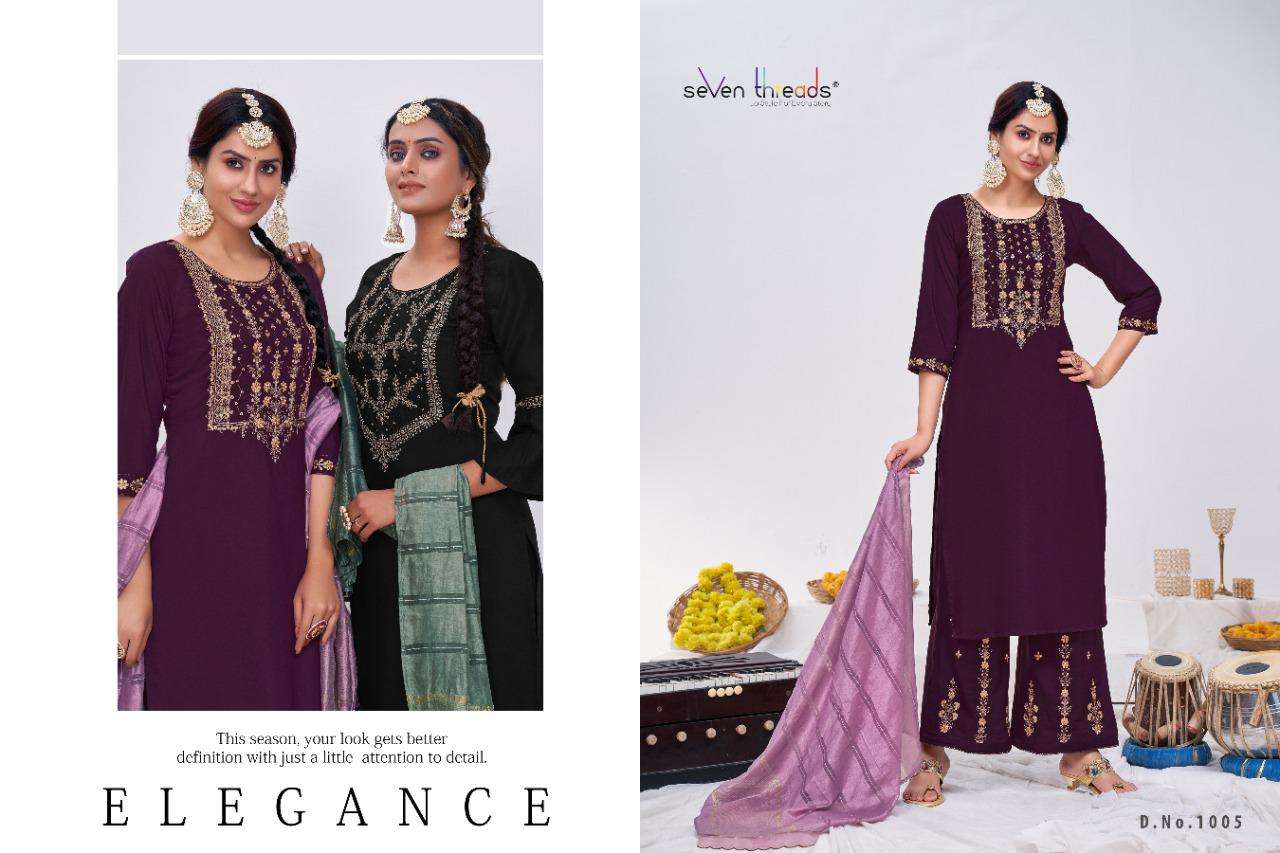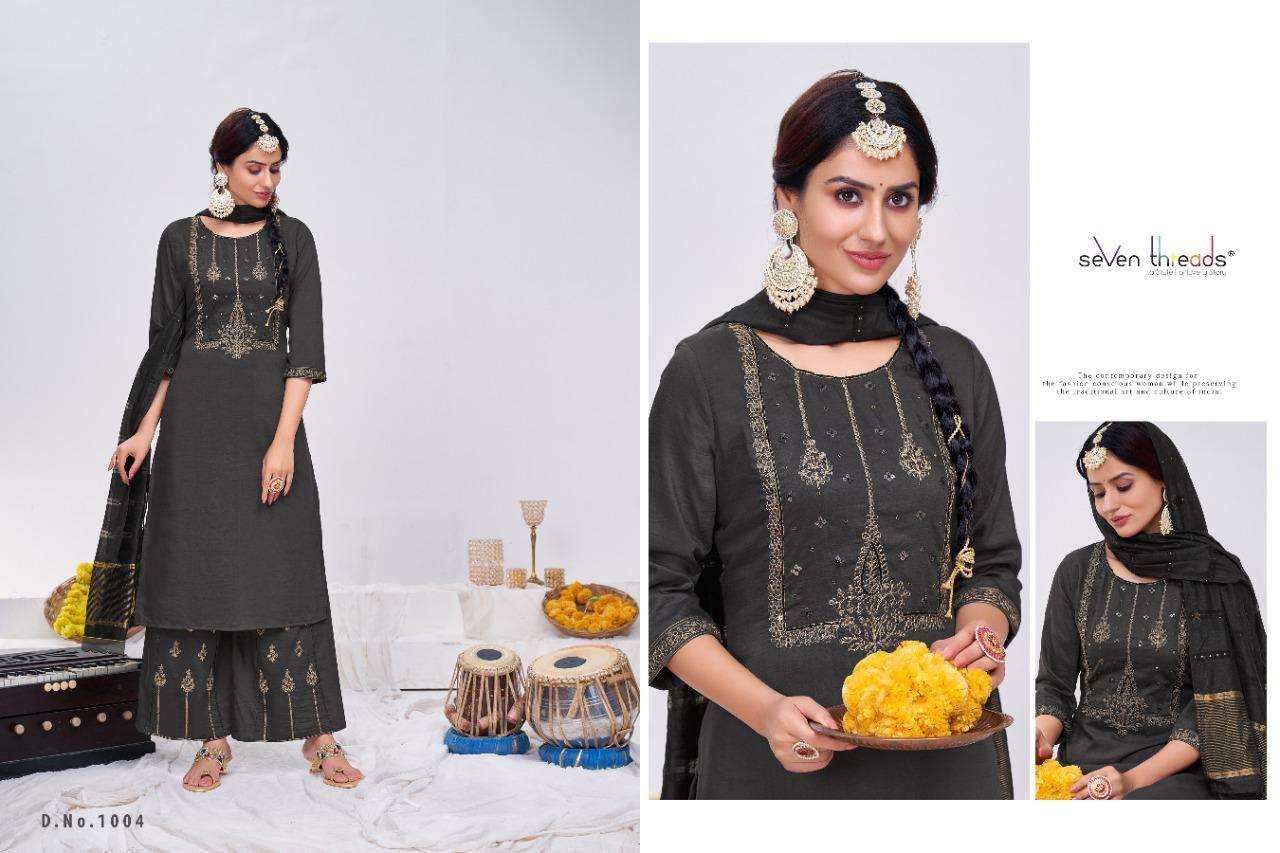 We’re proud to announce the launch of our new catalogue as part of the ongoing evolution of our brand ”SEVEN THREADS” Catalogue name:-RITUAL * 🛍 - 7 Designs *👗Fabric - Top 👚 -Bitalian viscous silk *🎗Size - M , L , XL , XXL , XXXL *🔸Length - 46+ *🧶Work - Top 👚 - Classic handwork with khatli and elegant coding work ✅Type - Full stitched 💰- 1051/-Rs |
