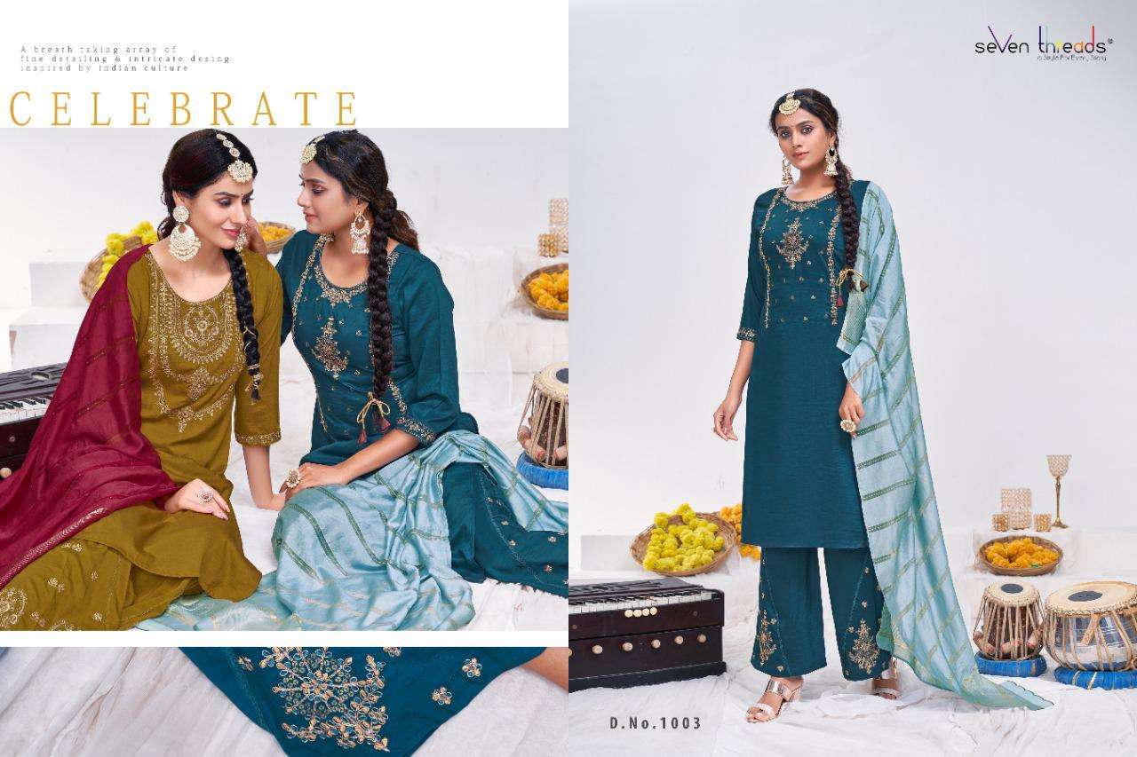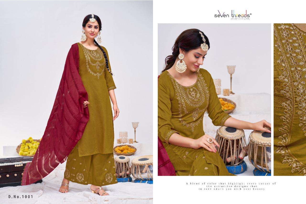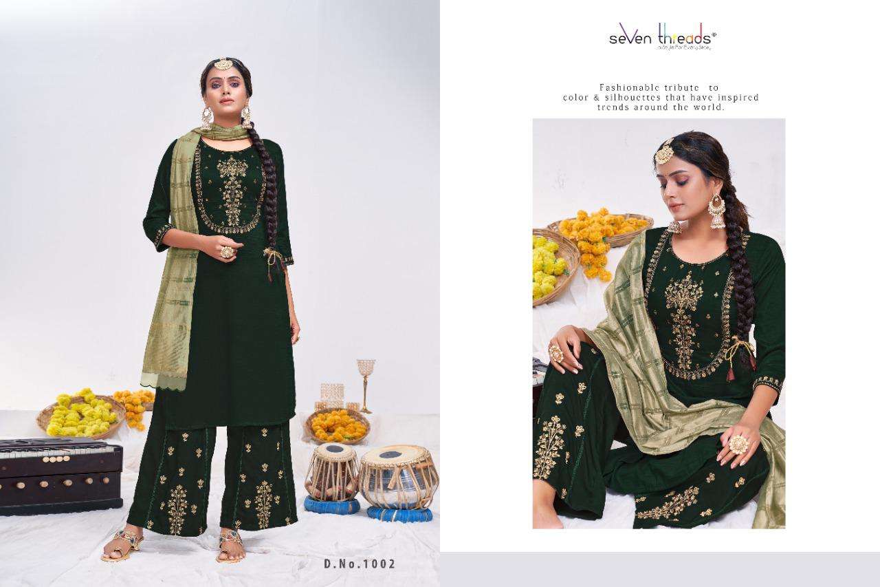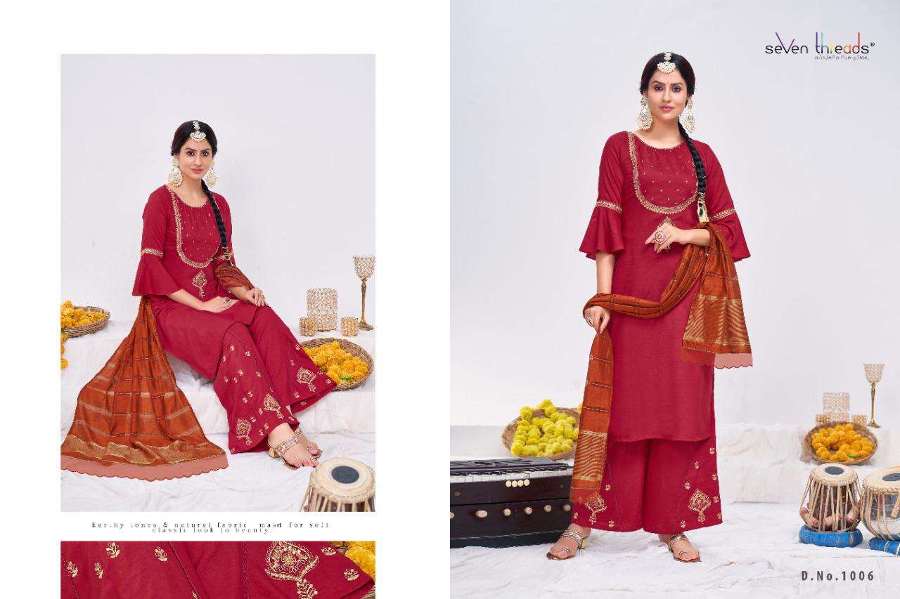 We’re proud to announce the launch of our new catalogue as part of the ongoing evolution of our brand ”SEVEN THREADS” Catalogue name:-RITUAL * 🛍 - 7 Designs *👗Fabric - Top 👚 -Bitalian viscous silk *🎗Size - M , L , XL , XXL , XXXL *🔸Length - 46+ *🧶Work - Top 👚 - Classic handwork with khatli and elegant coding work ✅Type - Full stitched 💰- 1051/-Rs |
