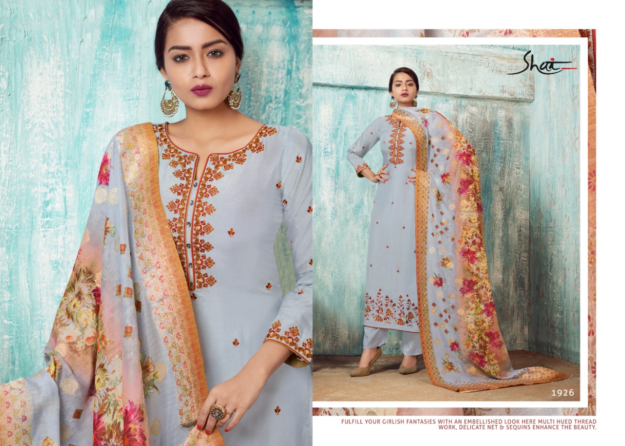 Shai Present Sadira Pure Russian Silk Embroidery Designer Fancy Suits Collection