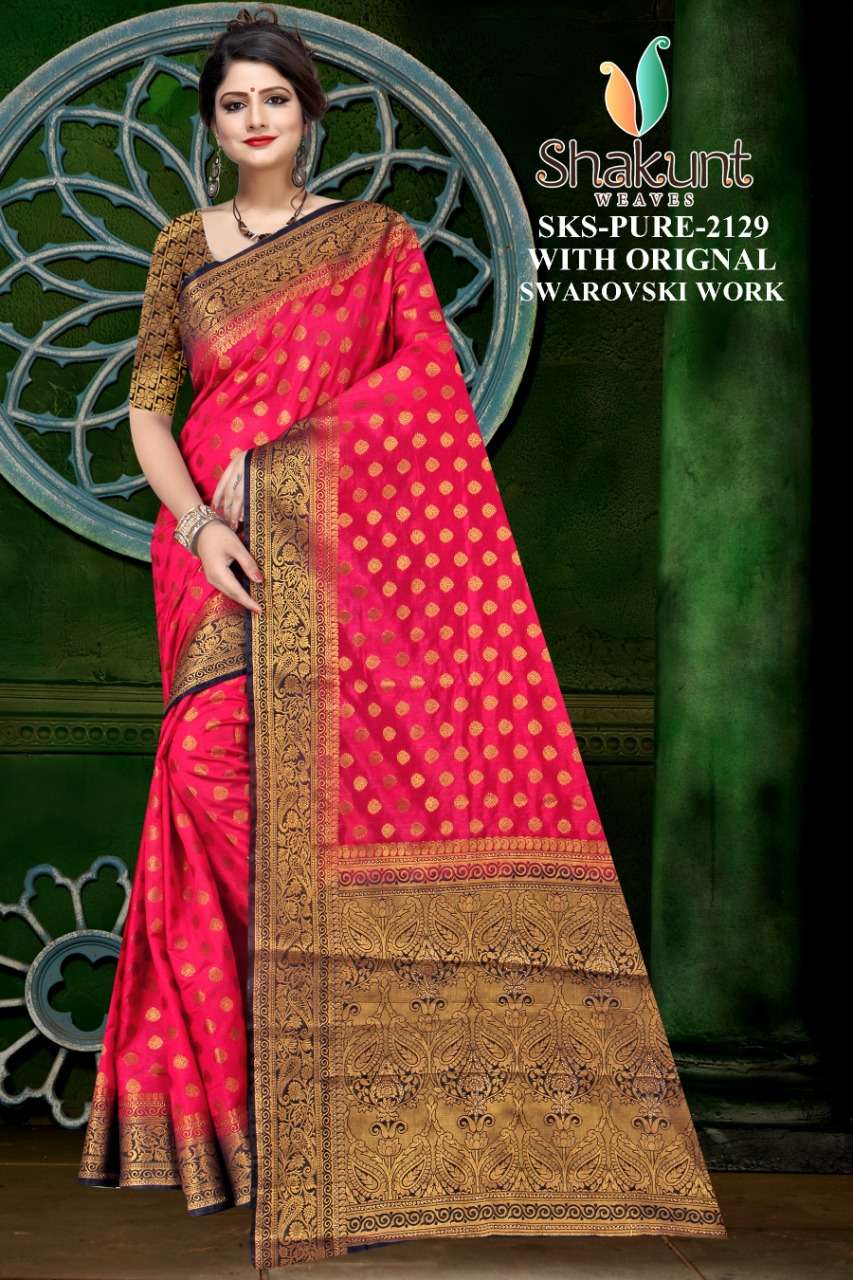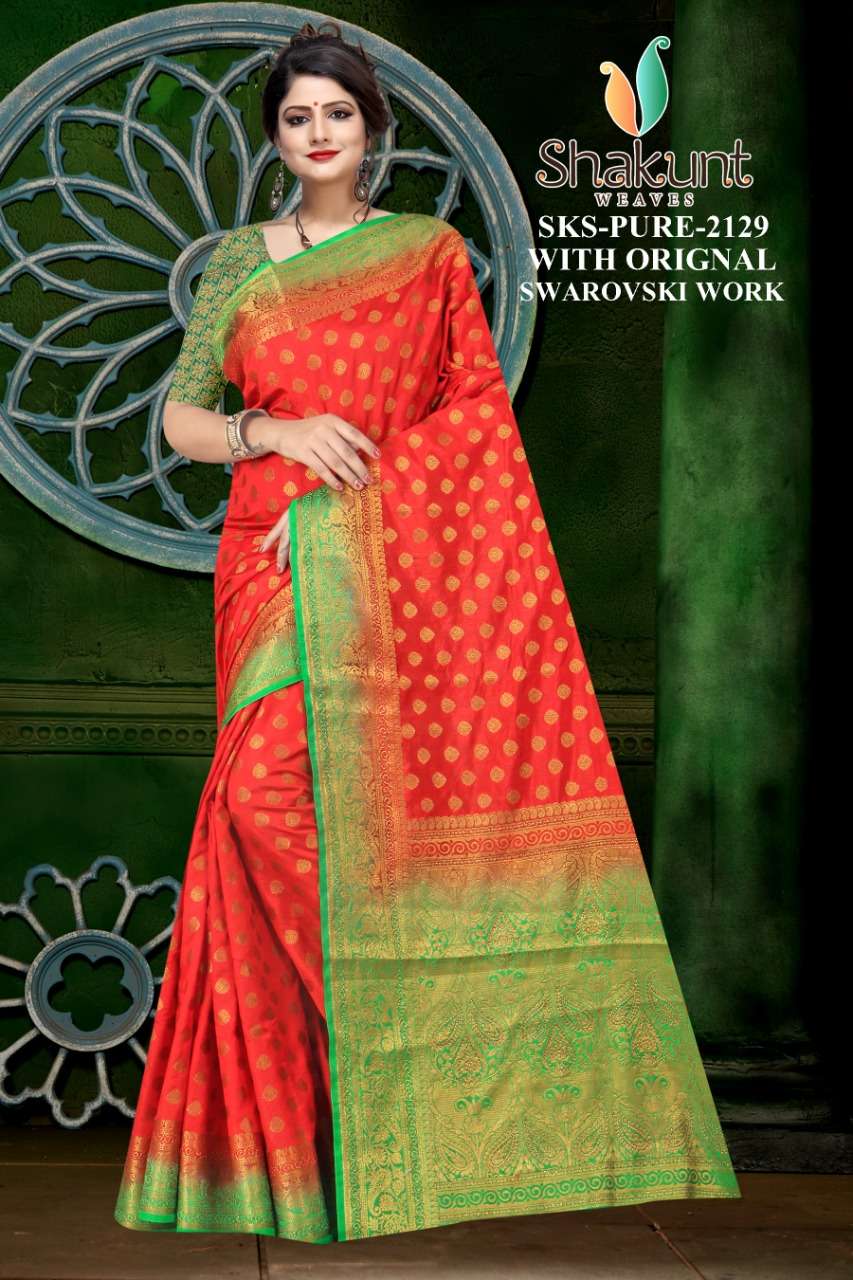 shakunt sks pure 2129 art silk traditional wear fancy sarees
