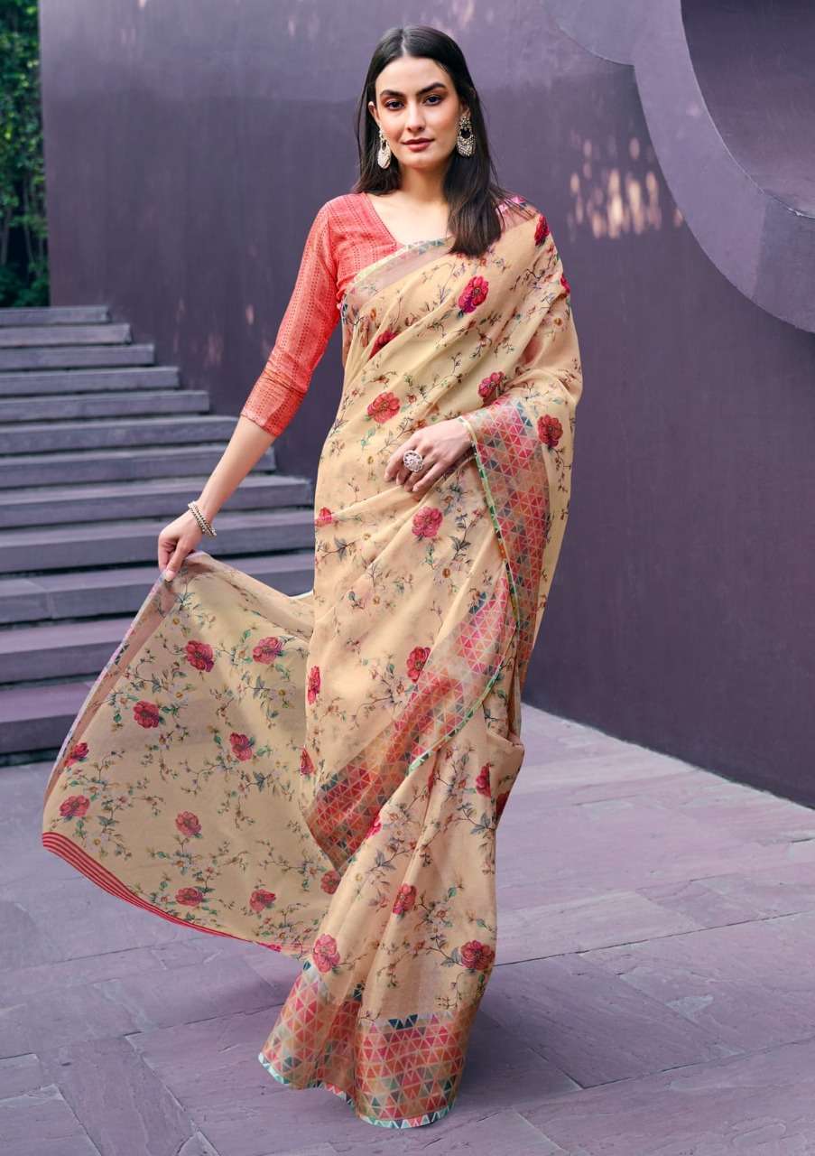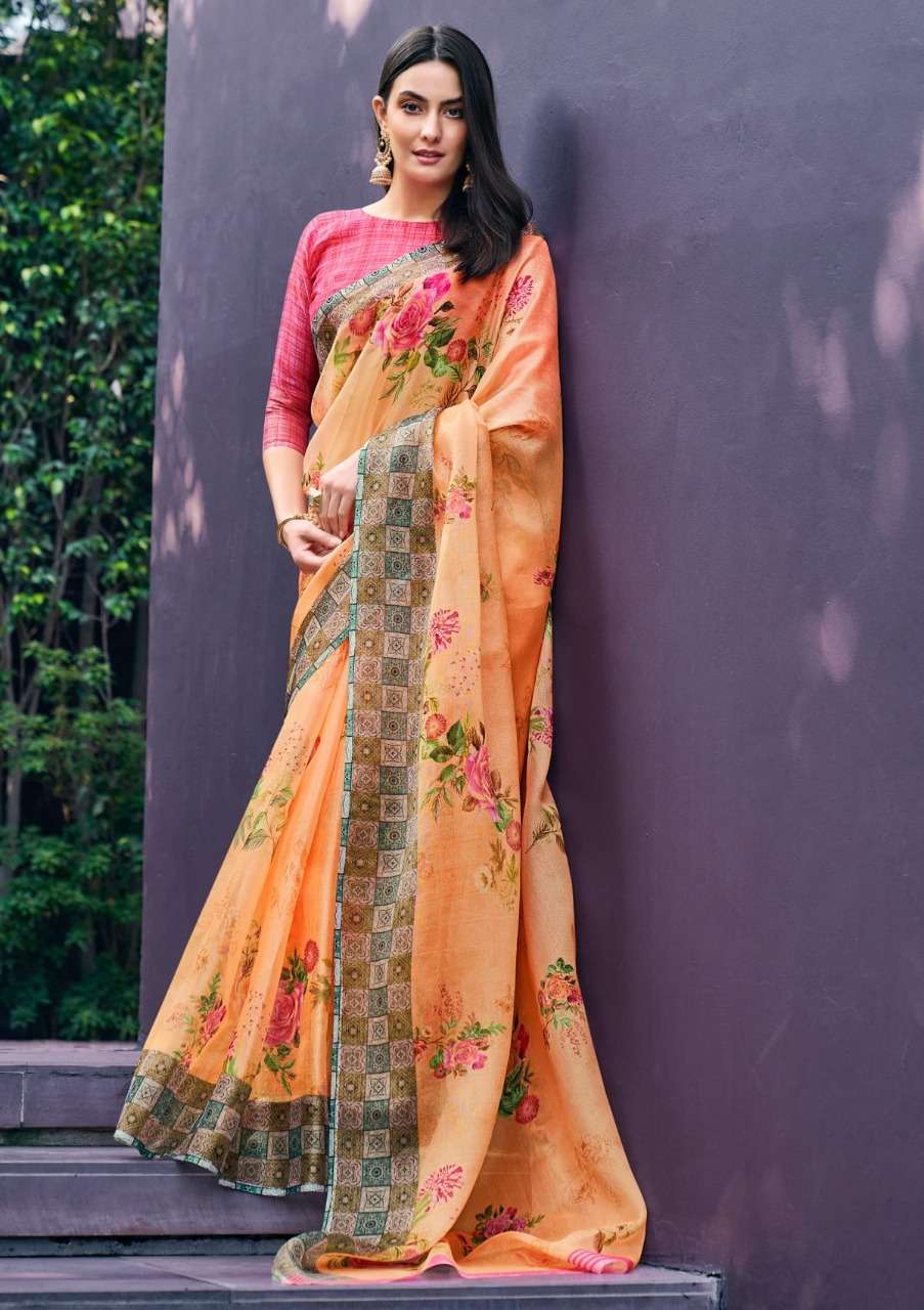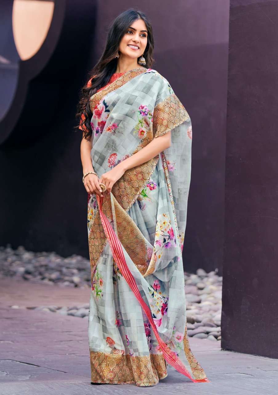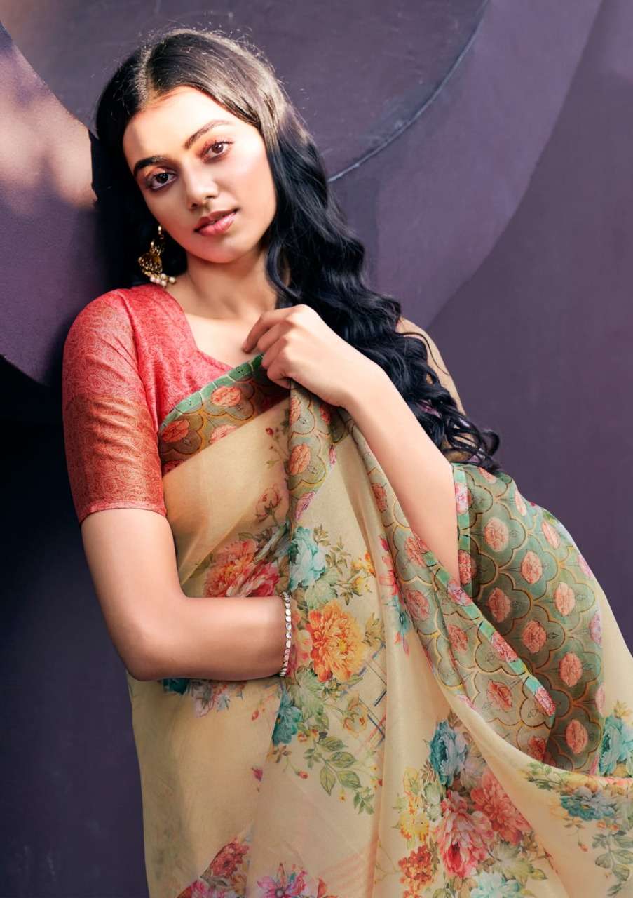 shangrila rosey orgenza vol 3 digital flower printed sarees