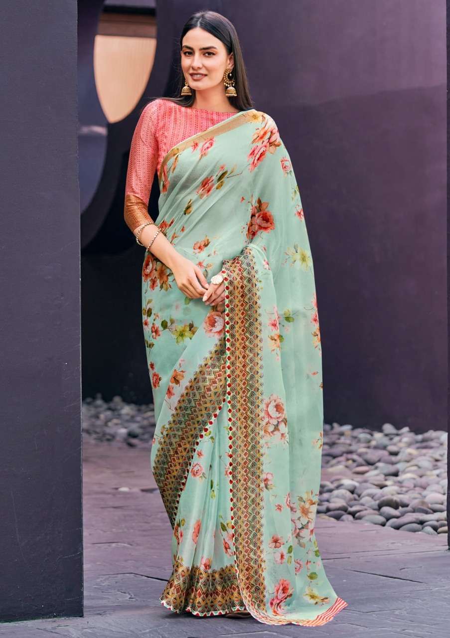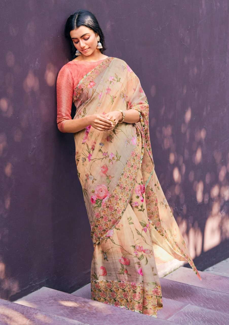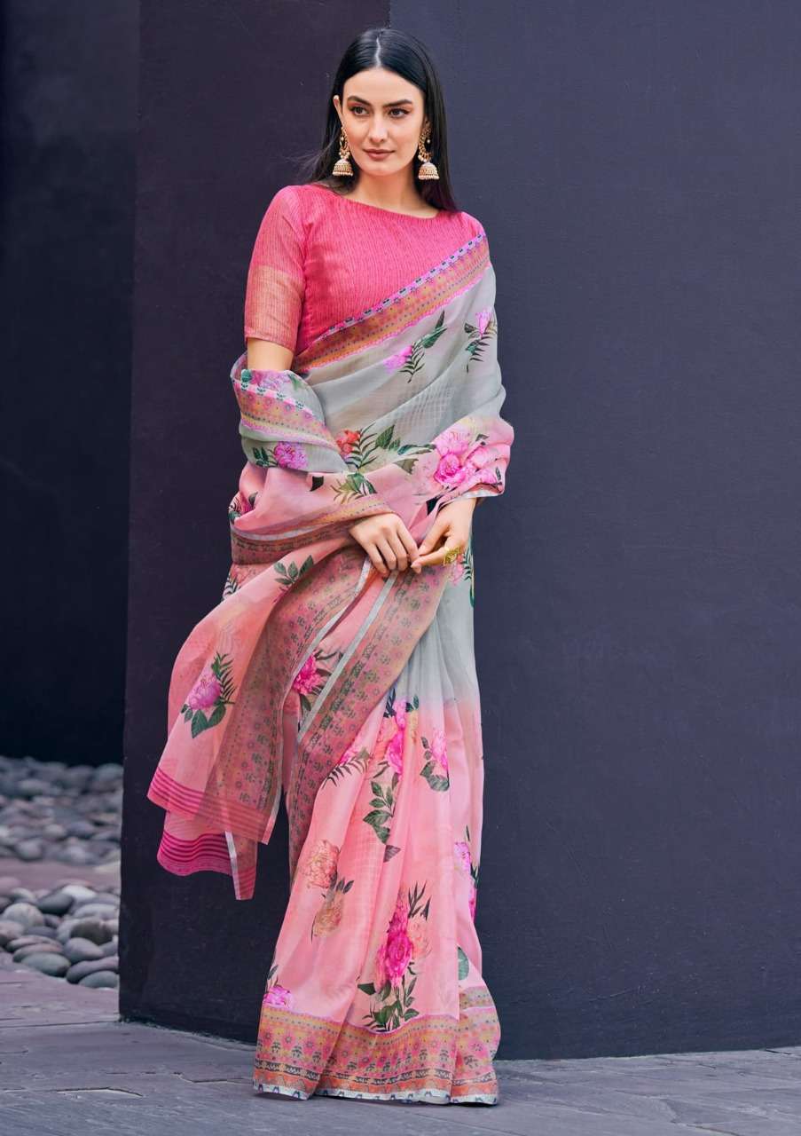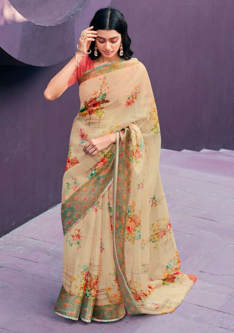 shangrila rosey orgenza vol 3 digital flower printed sarees