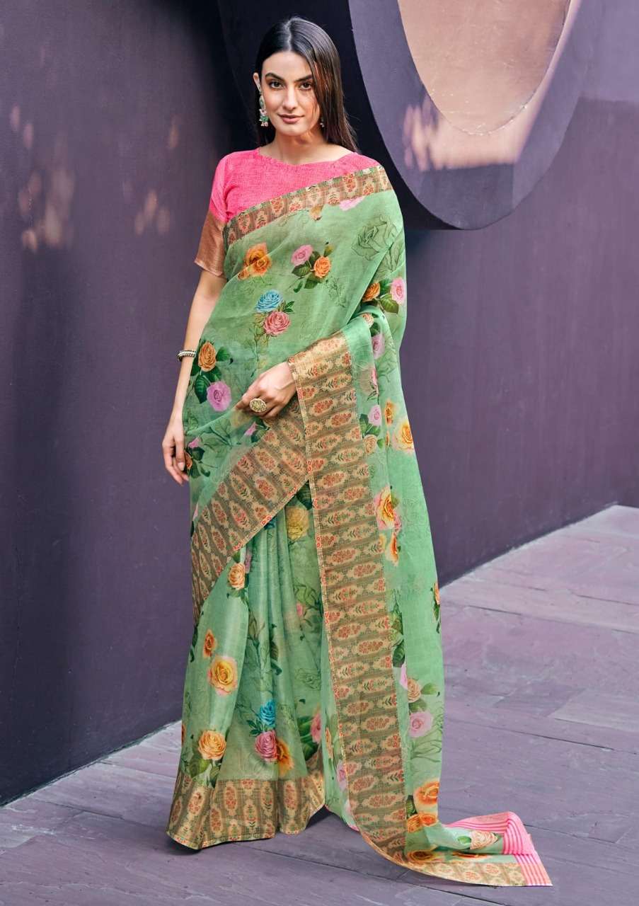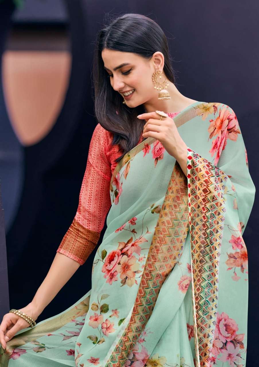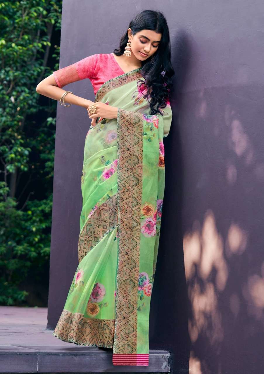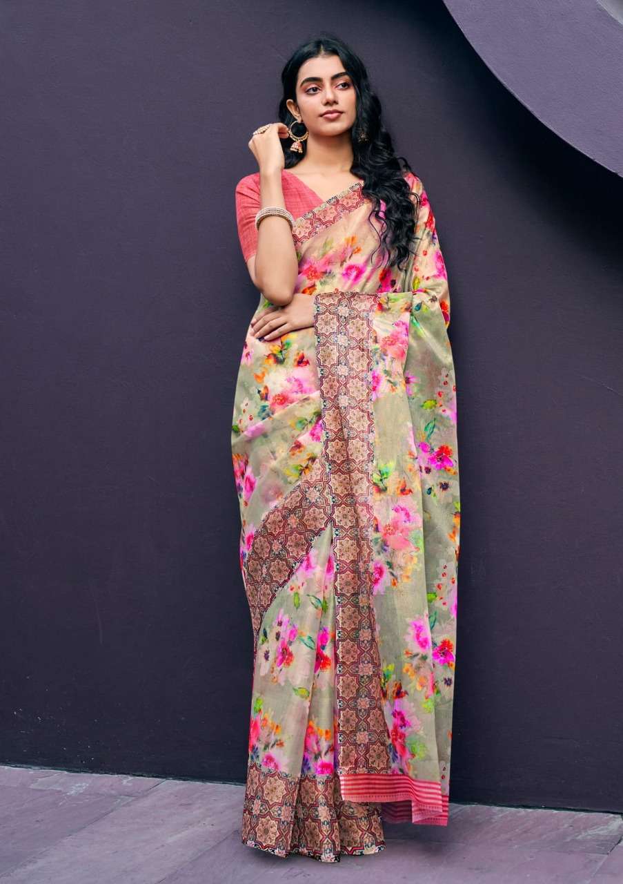 shangrila rosey orgenza vol 3 digital flower printed sarees