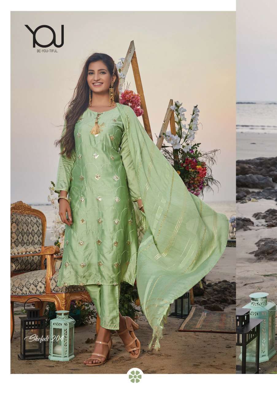 shefali vol 2 by you super fancy chanderi kurti with pant and dupatta