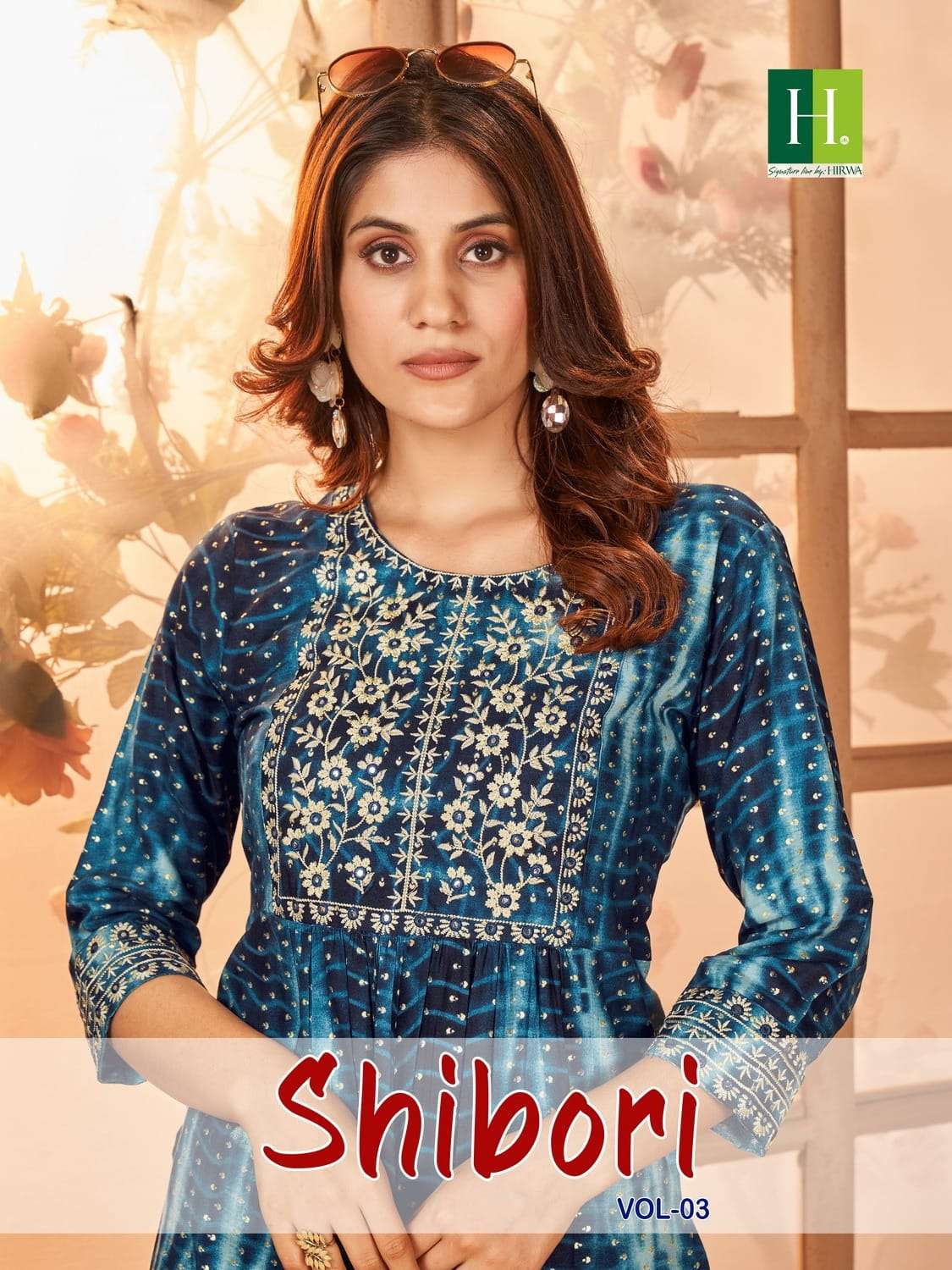 shibori vol 3 by hirwa festive wear fancy nayra cut kurtis