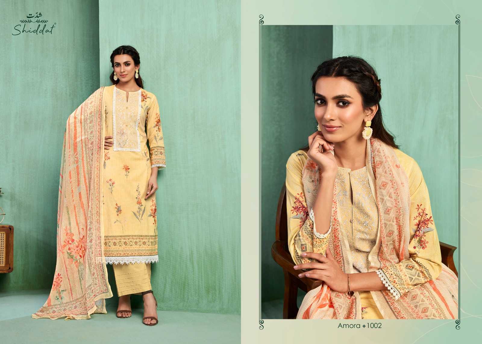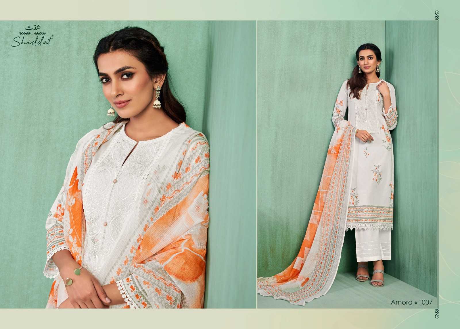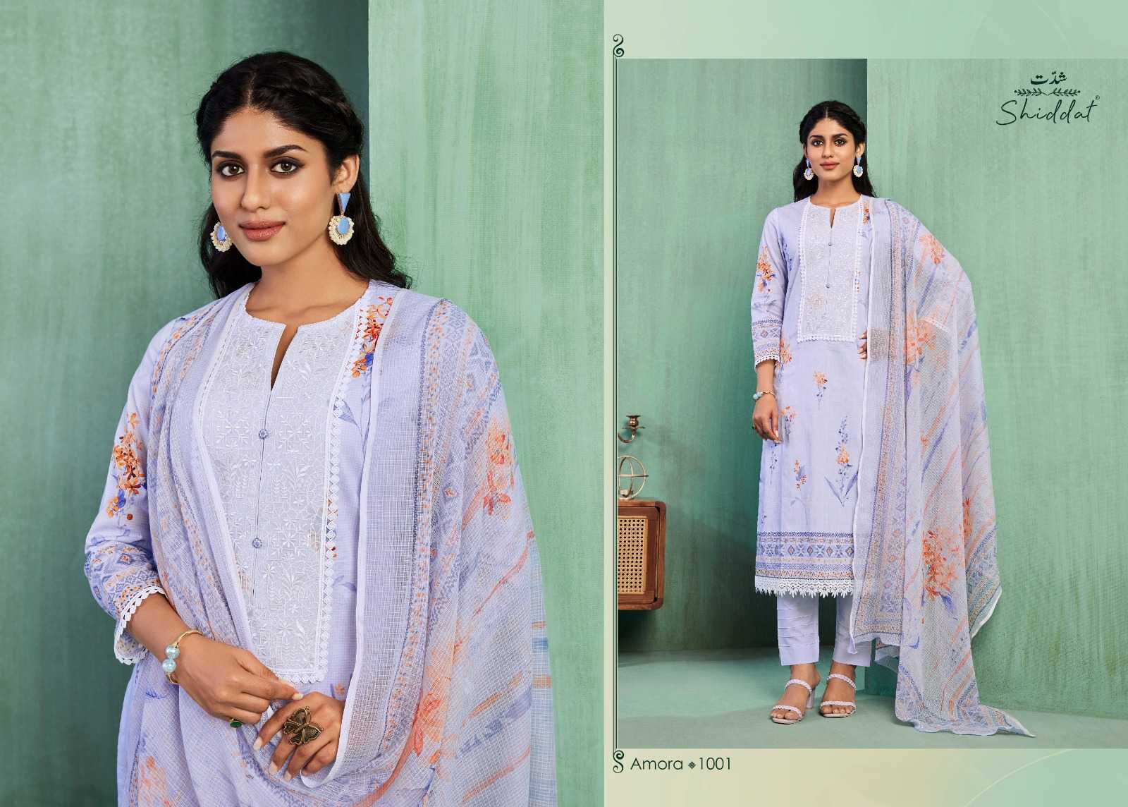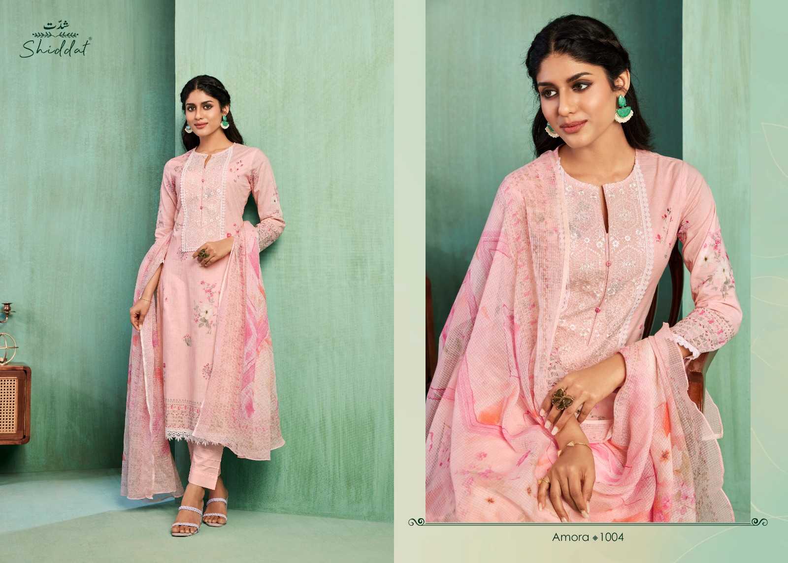 shiddat amora traditional wear cotton embroidery work dress material