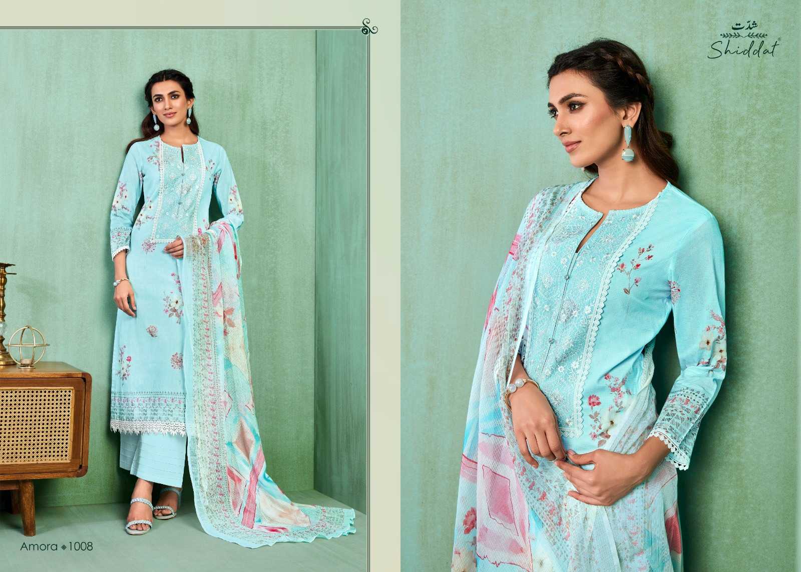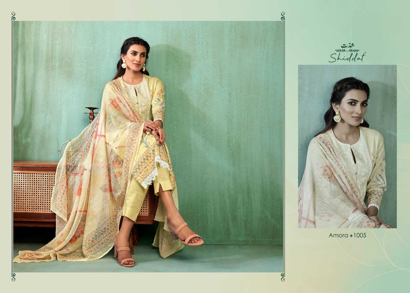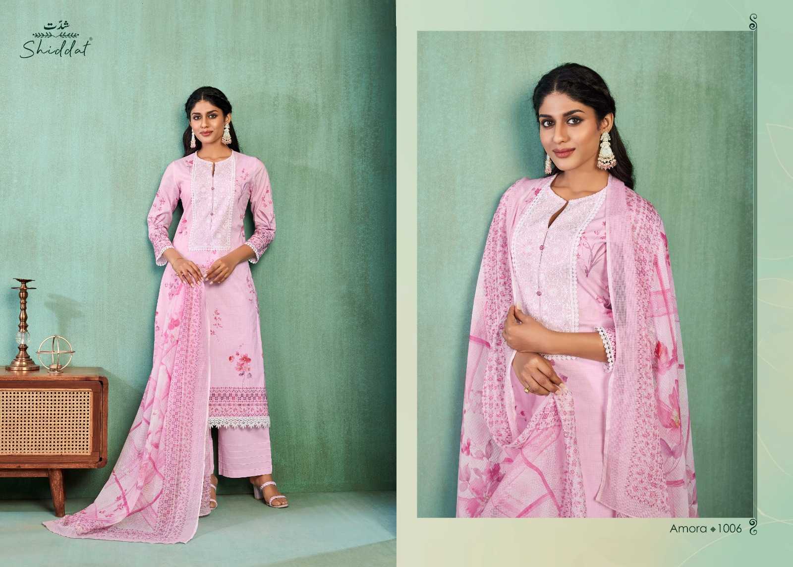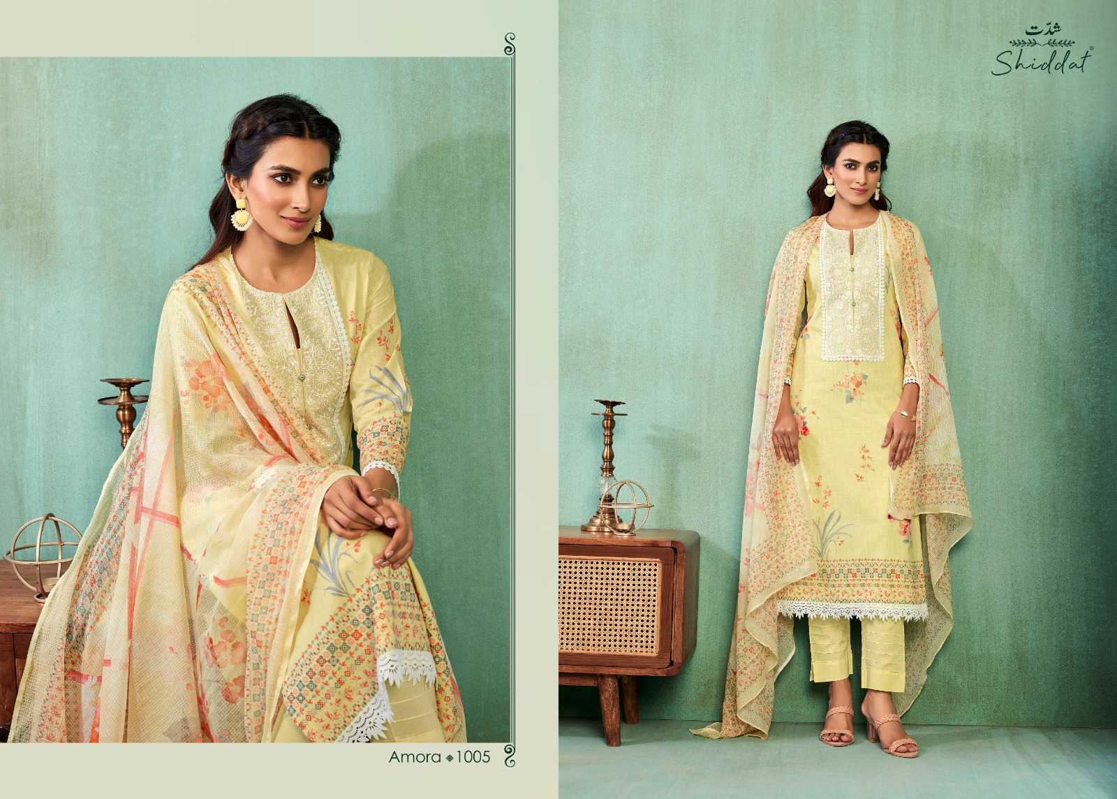 shiddat amora traditional wear cotton embroidery work dress material