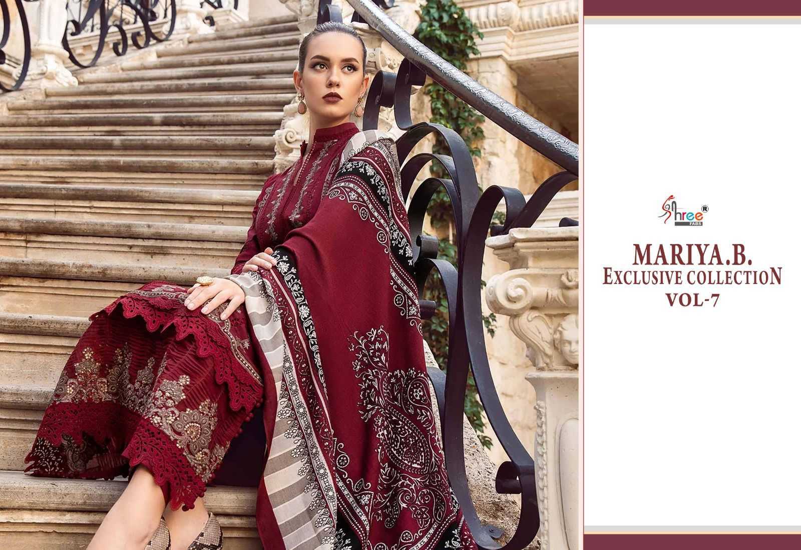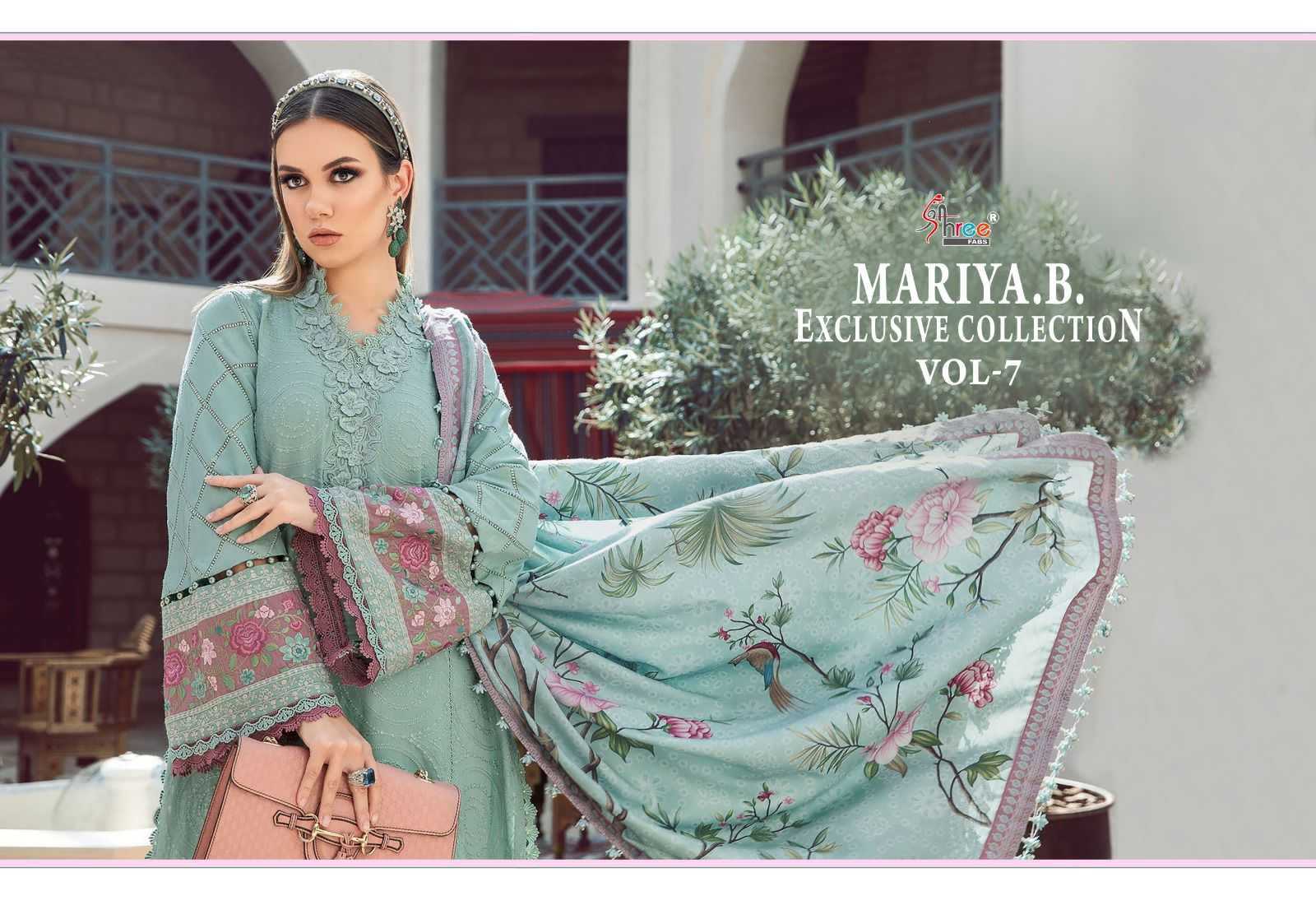 shree fab maria b exclusive collection vol 7 pakistani embroidery suit material