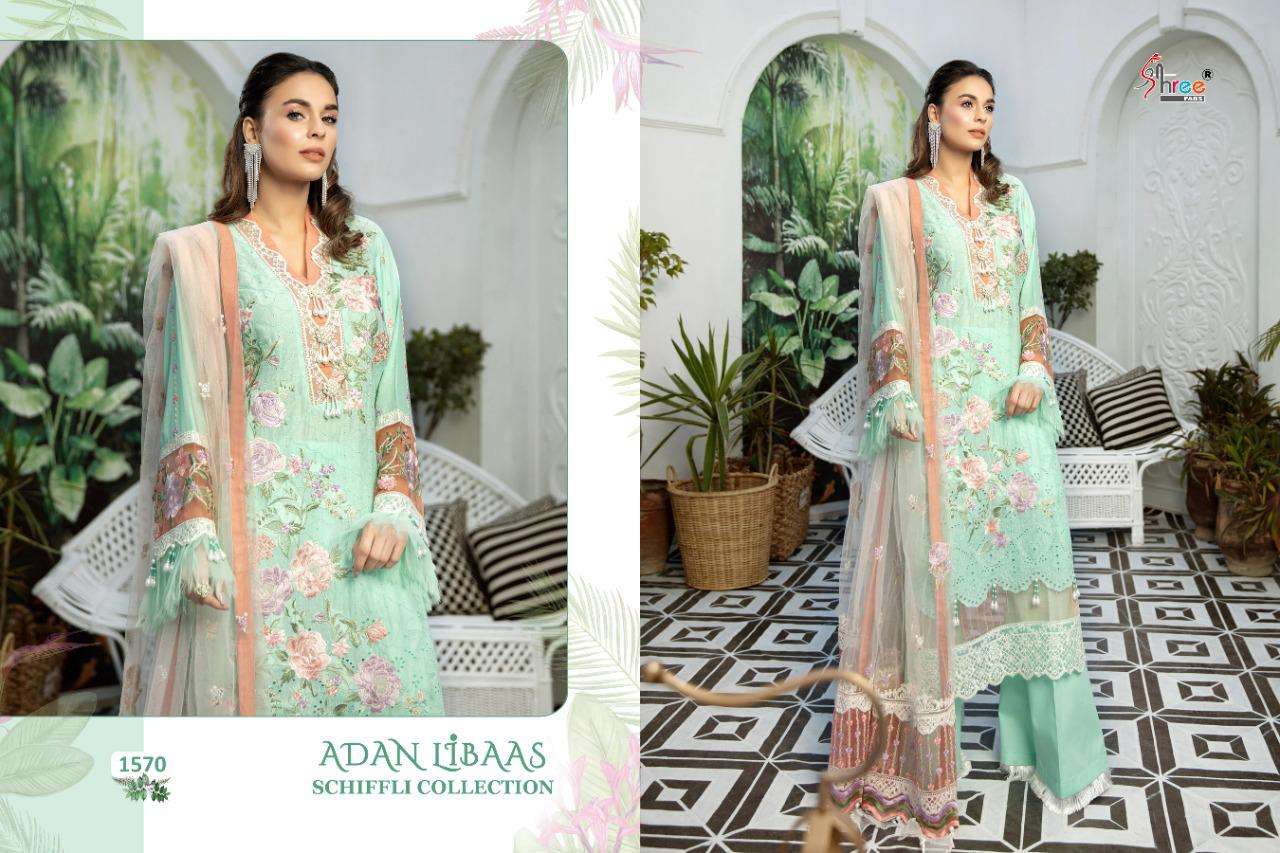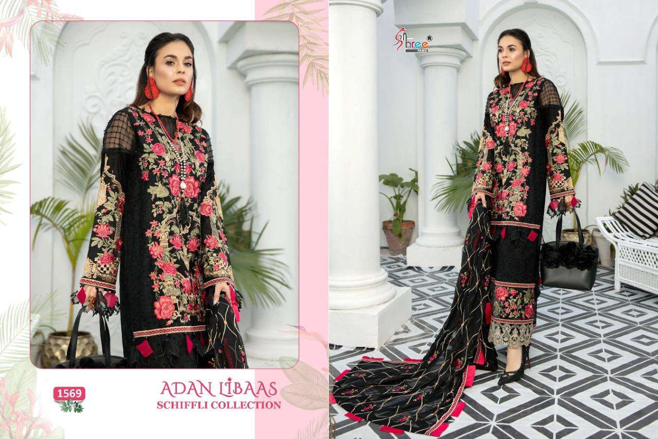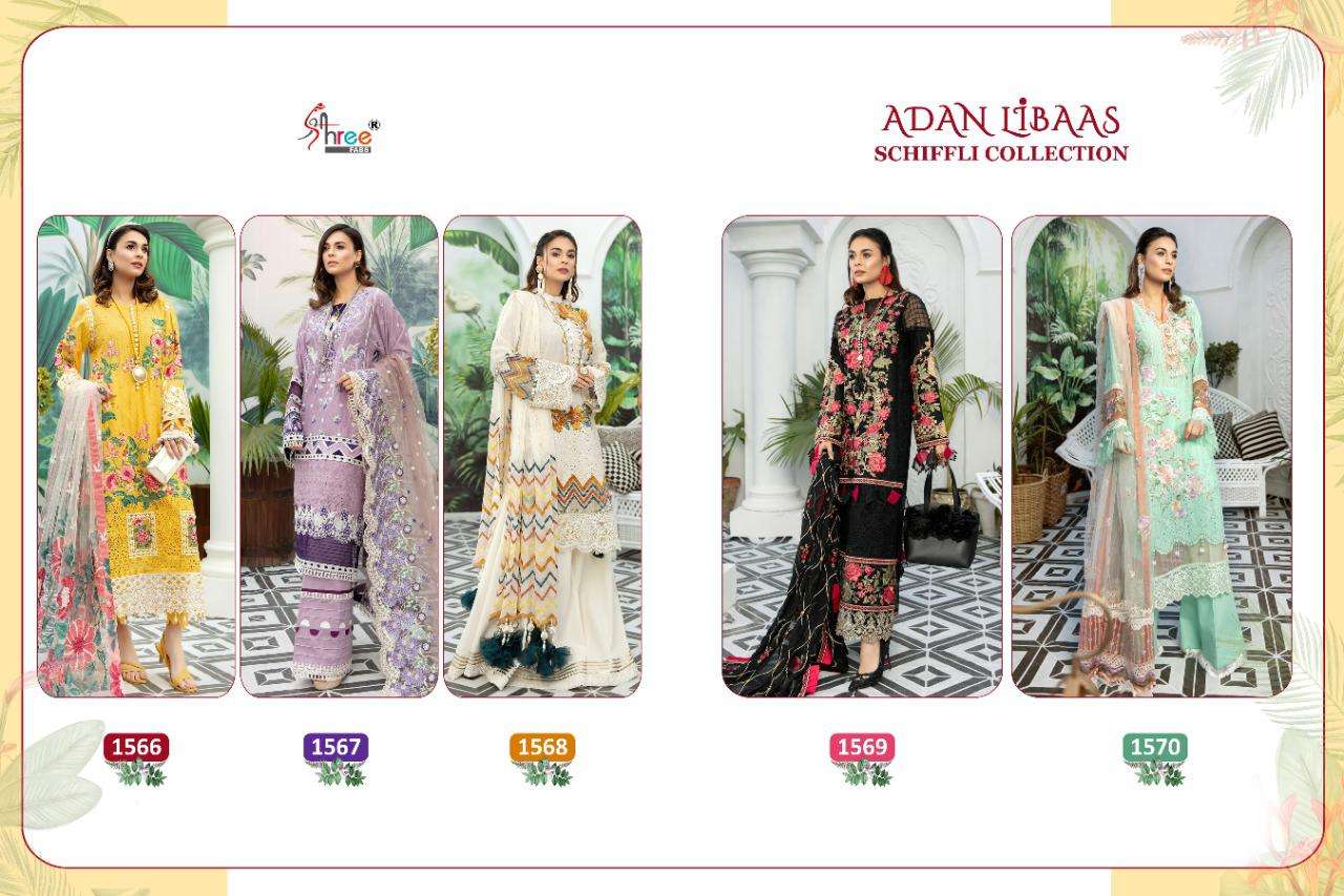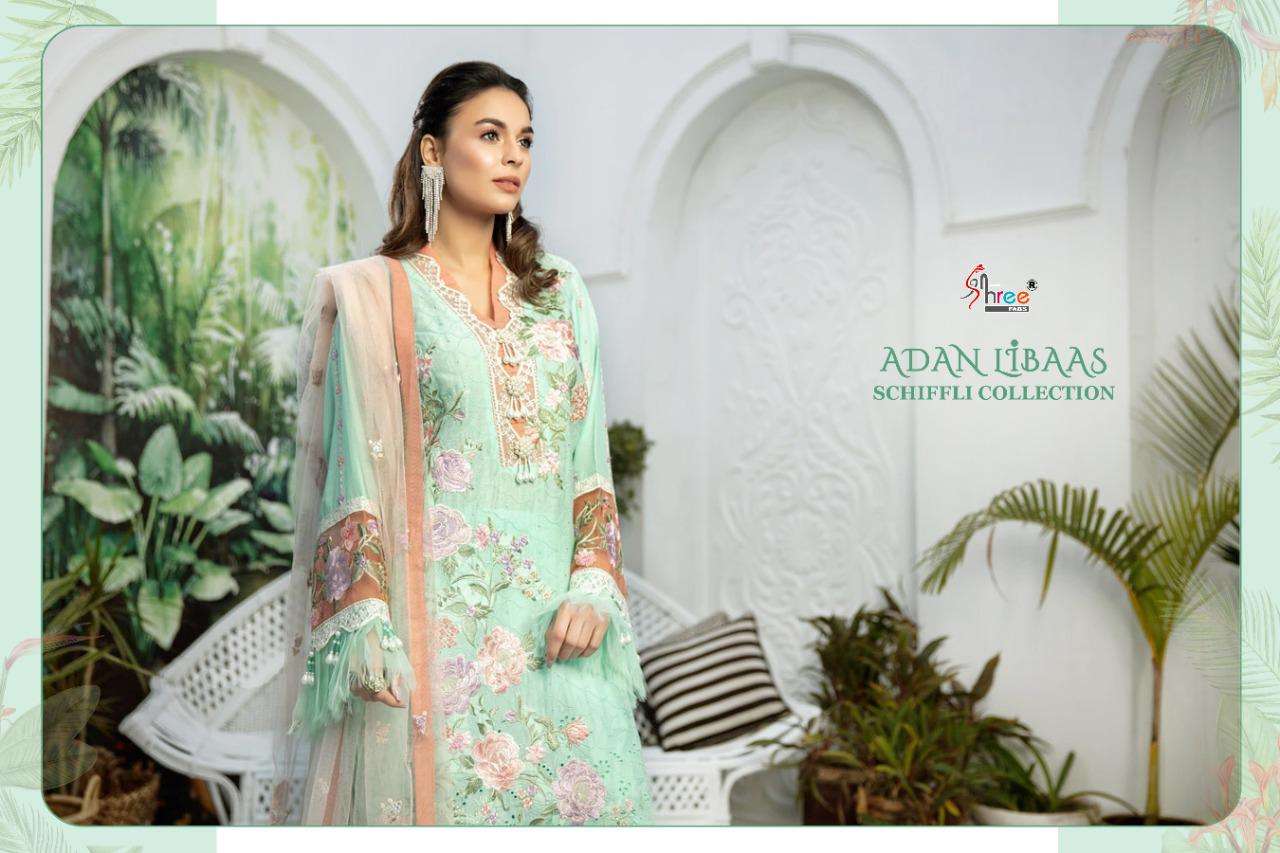 ADAN LIBAAS SCHIFFLI COLLECTION TOP PURE COTTON WITH HEAVY SELF EMBRODERY BOTTOM SEMILAWN DUPPTA BUTTERFLY EMBRODERD NET DES 5 RATE 1199 Shree fabs surat |