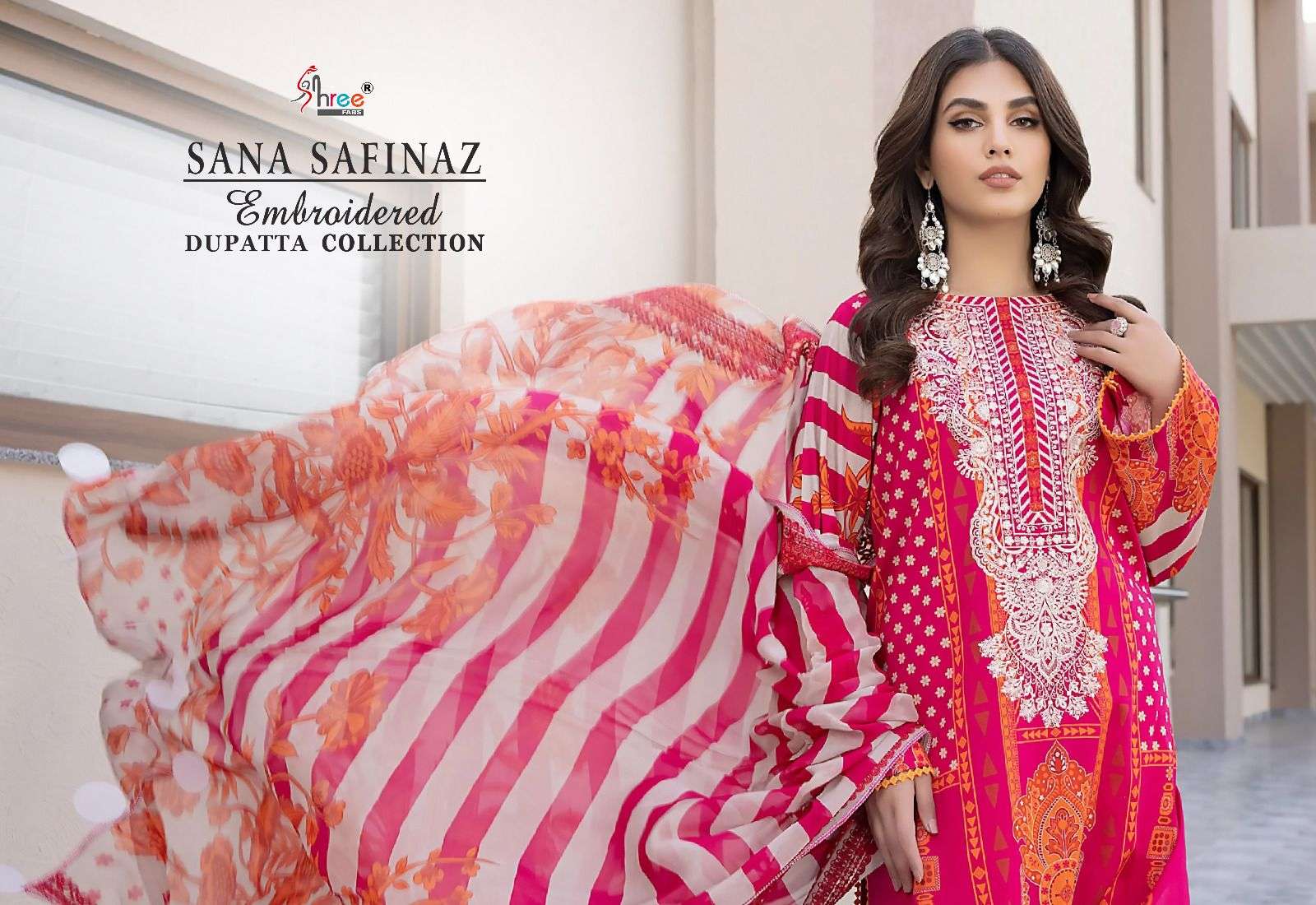 SANA SAFINAZ EMBROIDERED DUPATTA COLLECTION VOL TOP PURE COTTON PRINT WITH SELF EMBRODEY BOTTOM SEMILAWN DUPPTA SIFFON/ COTTON EMBRODERED DESIGNS 6 RATE 785 SIFFON SHREE FABS SURAT®️ |