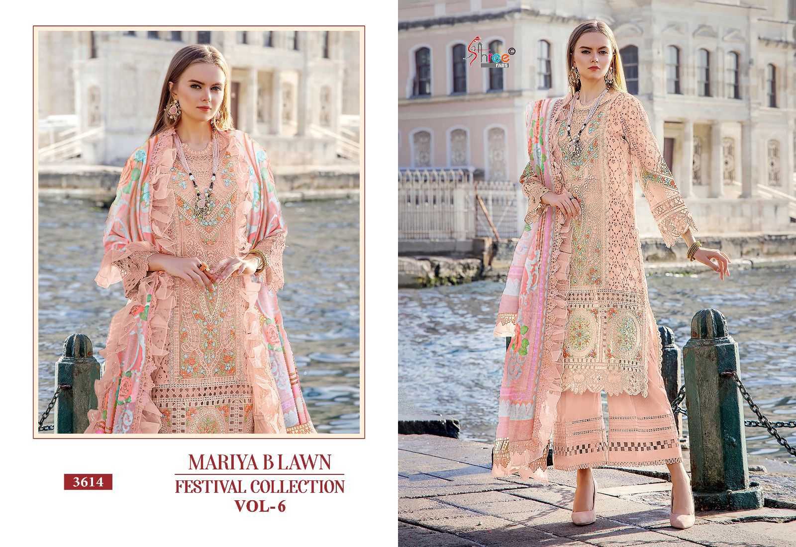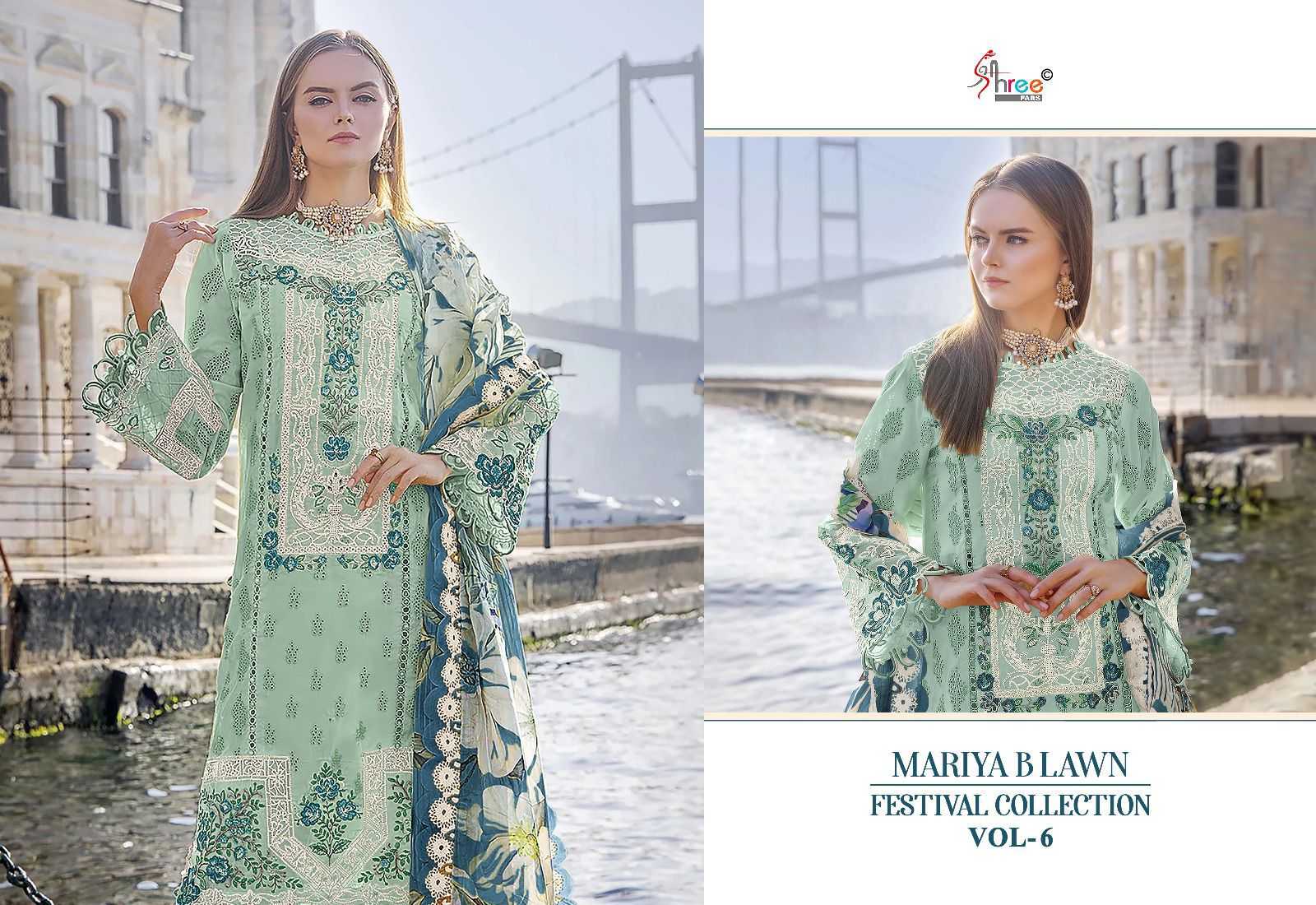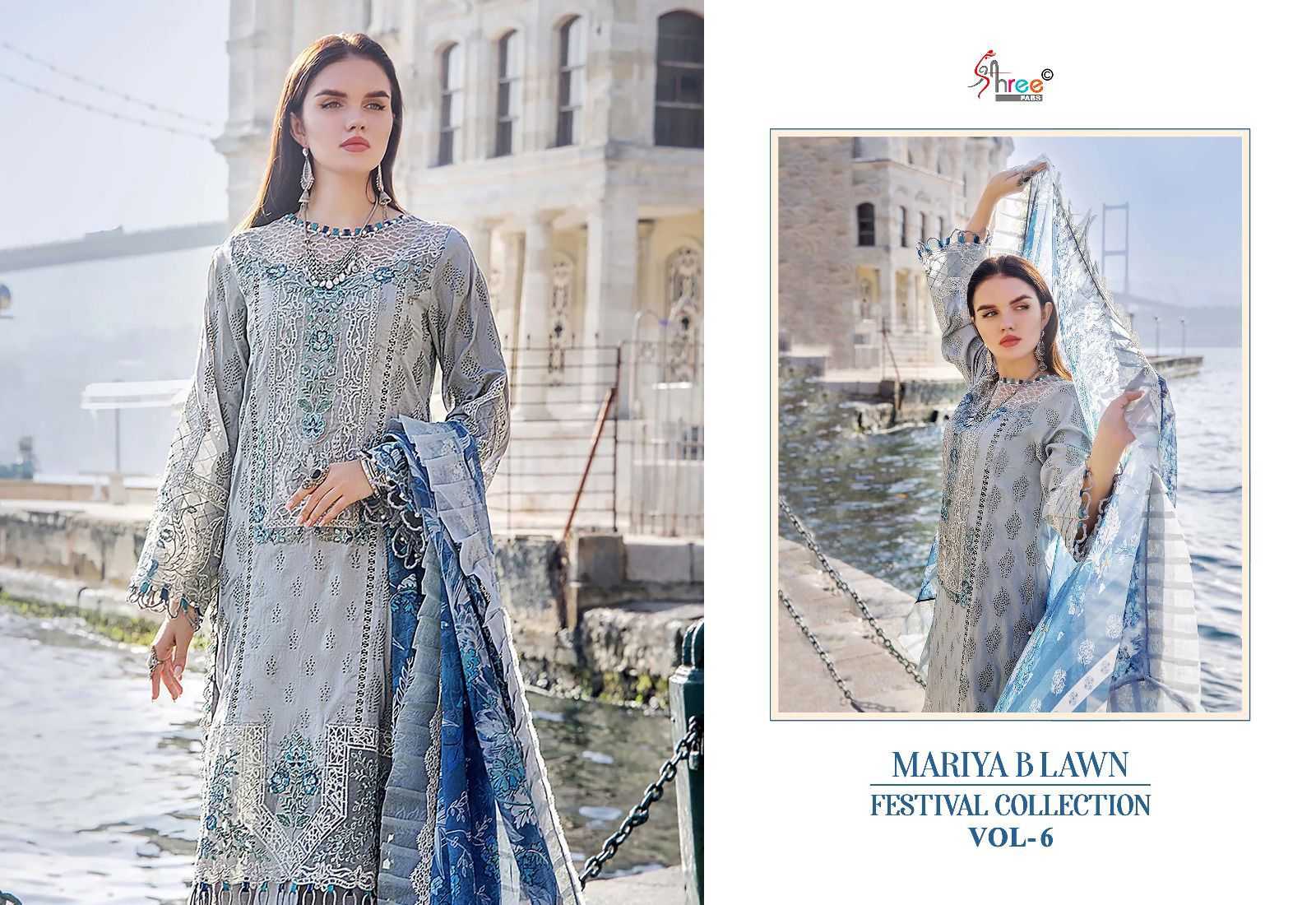 MARIYA B LAWN FESTIVAL COLLECTION VOL-06 TOP PURE LAWN COTTON WITH HEAVY SELF EMBRODERY AS LIKE ORIGNAL BOTTOM SEMILAWN DUPPTA SILVER / COTTON DESIGNS 6 RATE 1199/- + gst SIFFON 1249/- gst COTTON SHREE FABS SURAT©️ |
