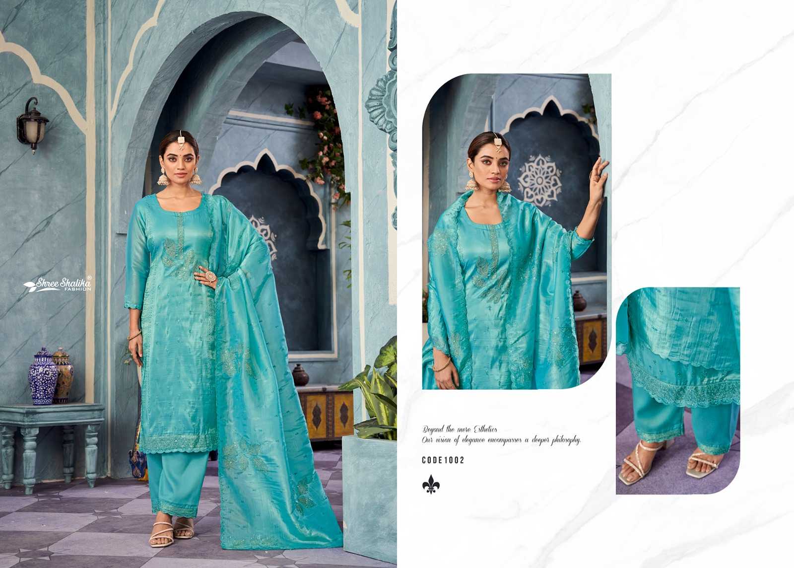 shree shalika fashion azra organza designer wear unstitch salwar suit collection