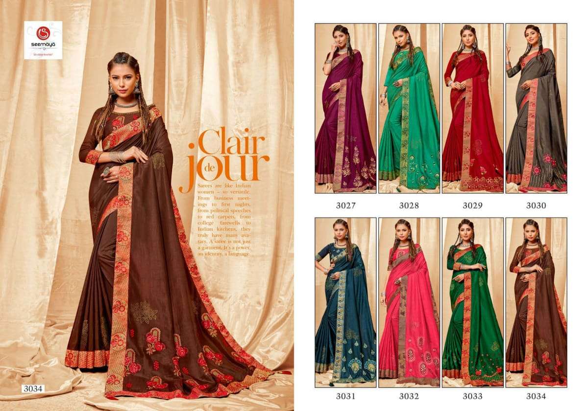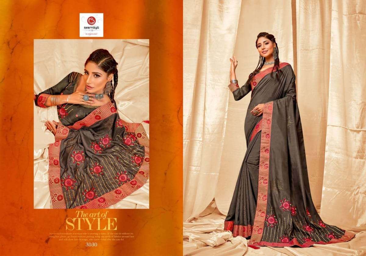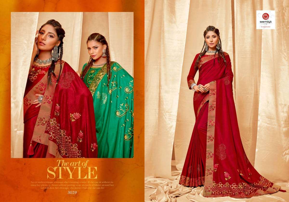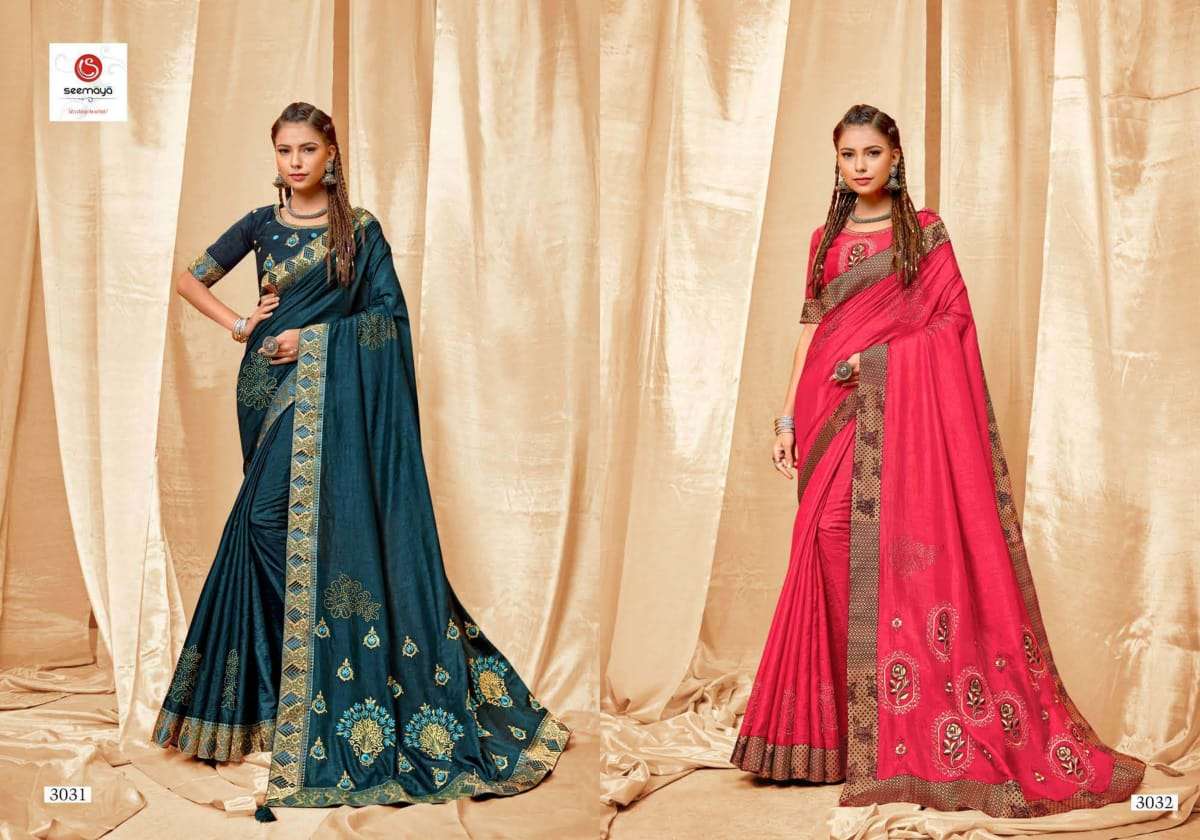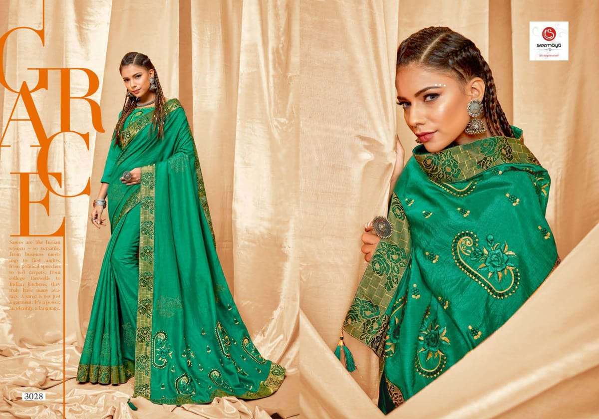 shreya by seemaya dola silk embroidery fancy saree wholesaler