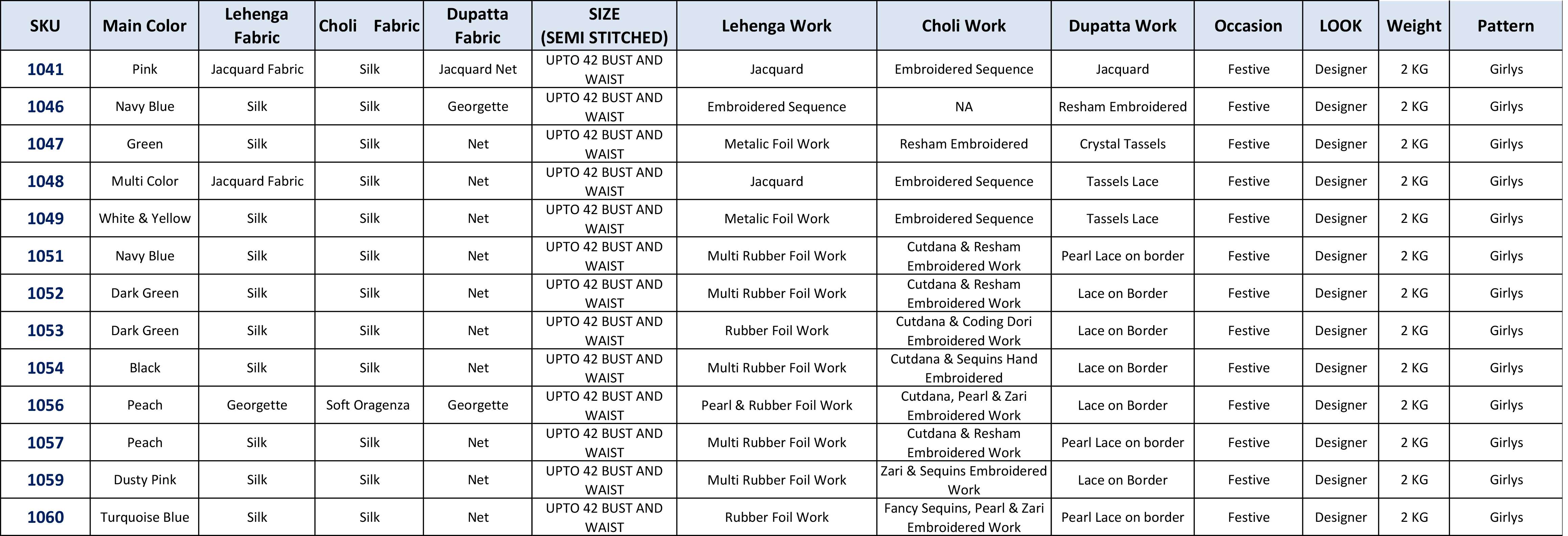 | Note | Stitching available on customer Requirment For Sarees , Salwar Kameez, Lehengha.(i.e M,L,XL,XXL). |