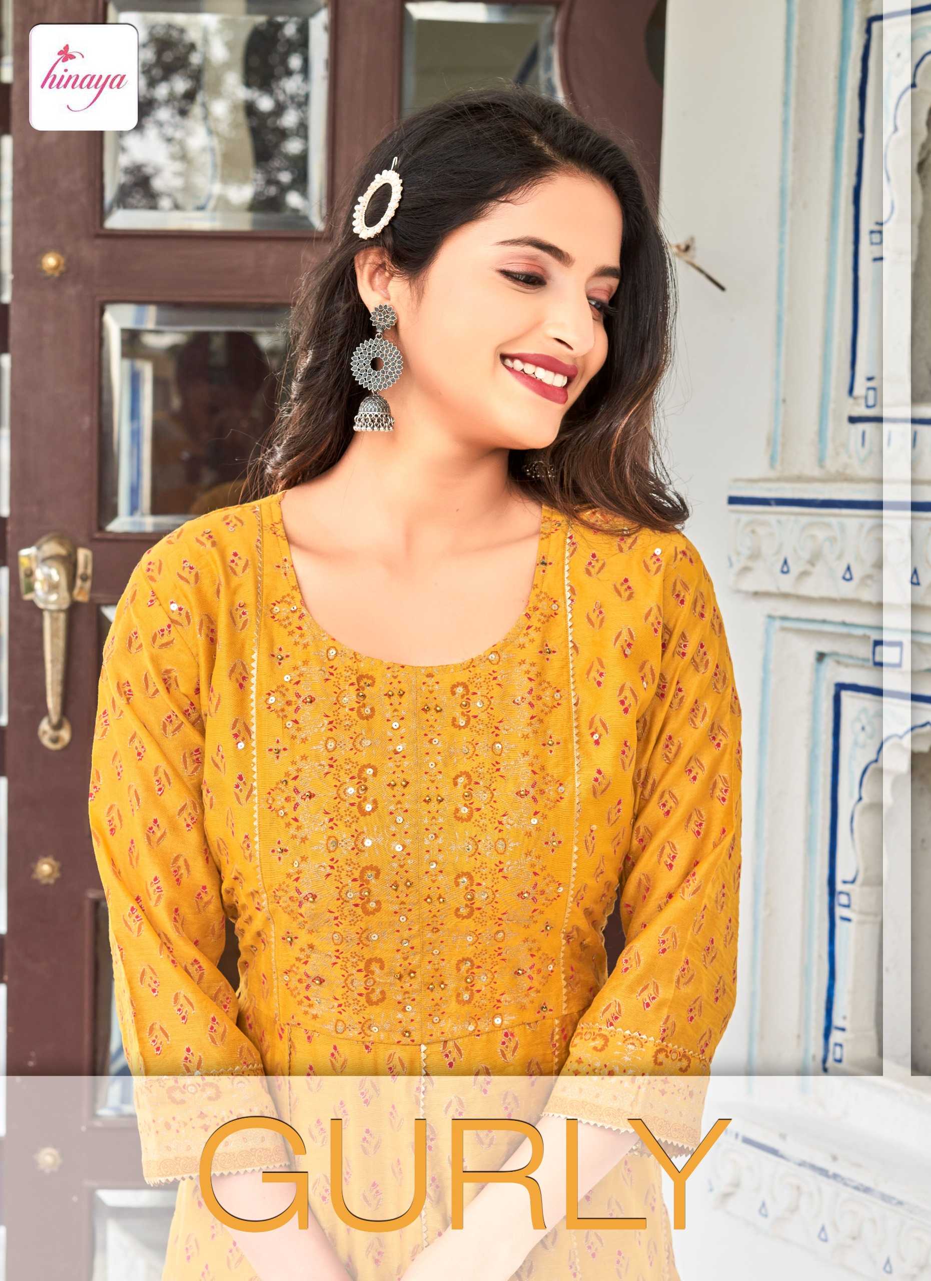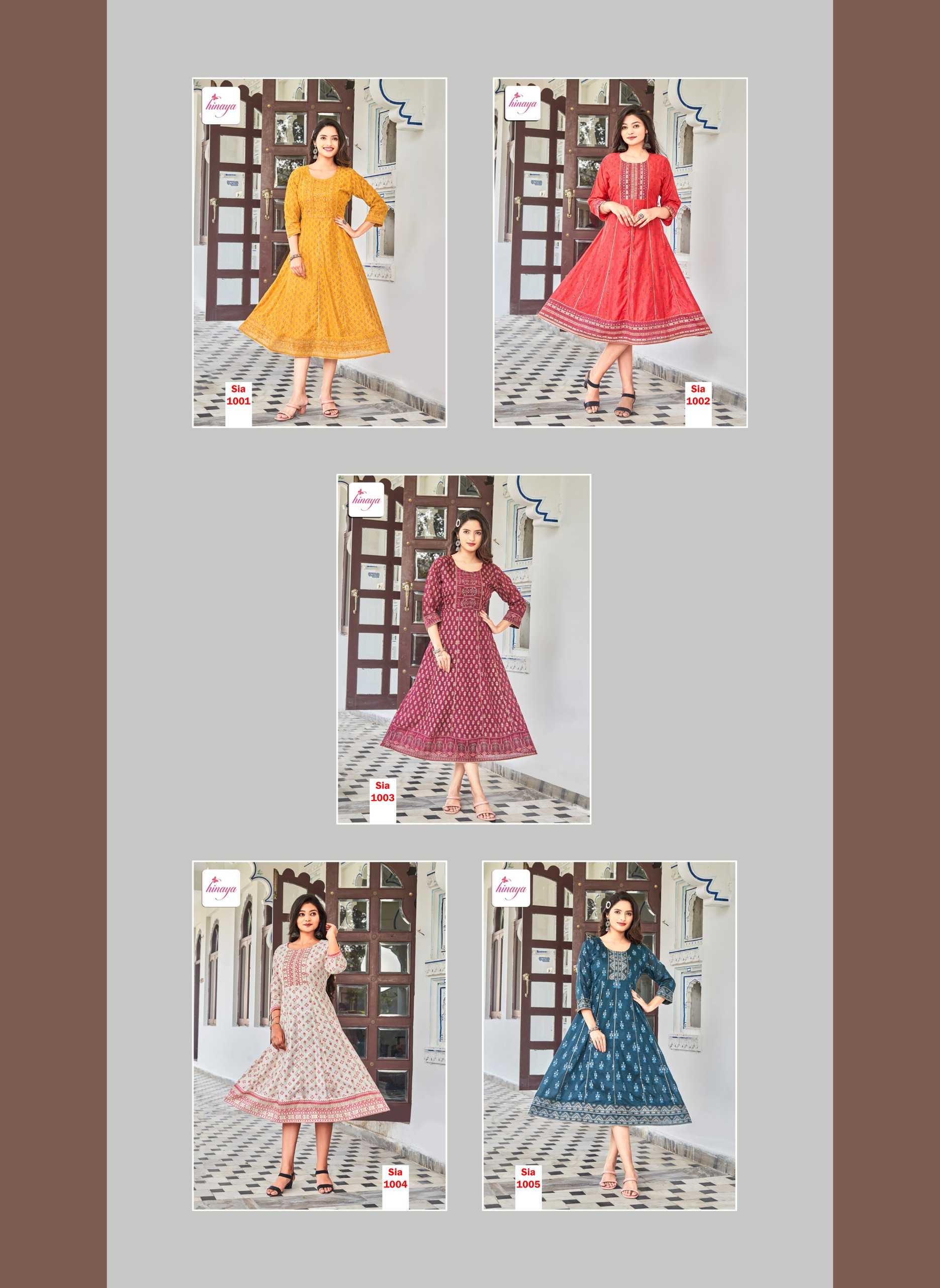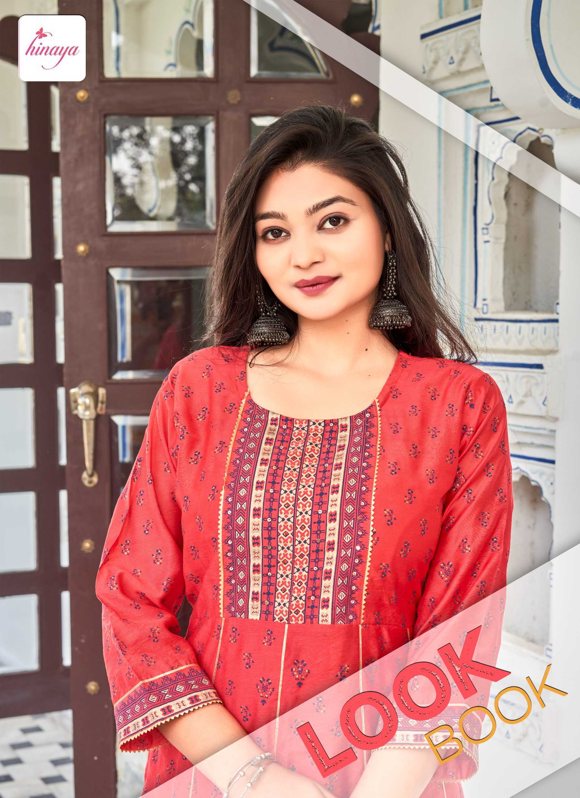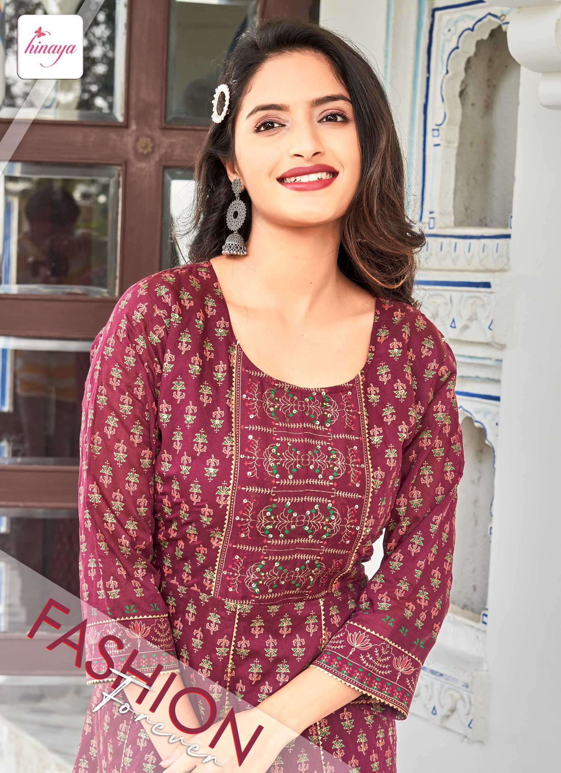 sia by hinaya trendy long chanderi silk full stitch flaired kurtis in kali pattern