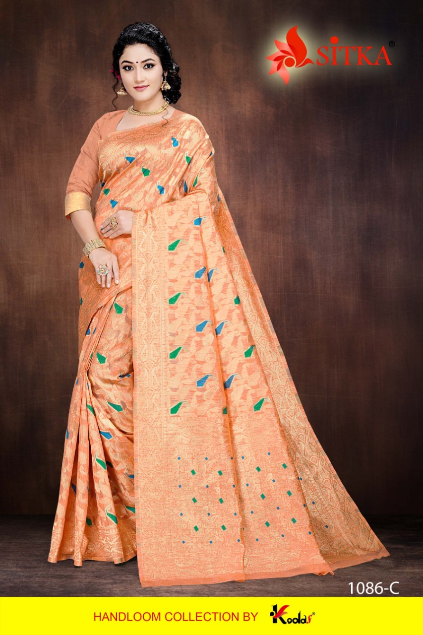 SITKA Brand Launched New Saree catalog Catalog Name : MANIKARNIKA-1086 Fabric : HANDLOOM COTTON SILK JACQUARD SAREE MOQ - 4 Box Rate : 815/- +5 % GST Without Box Rate : 795/- + 5% GST Length : 6.3 mtr Only full set |