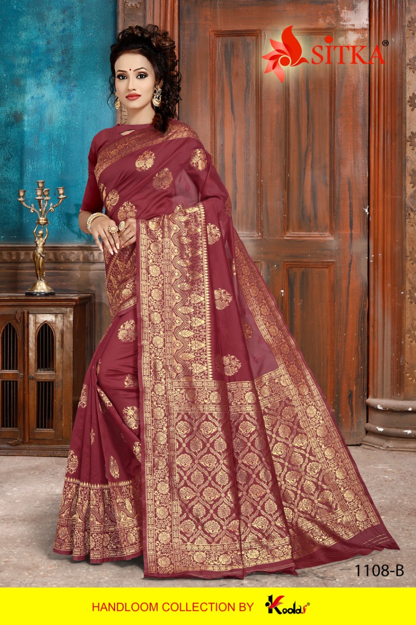 Sitka Natural Silk 1108 Handloom Cotton Silk Fancy Saree