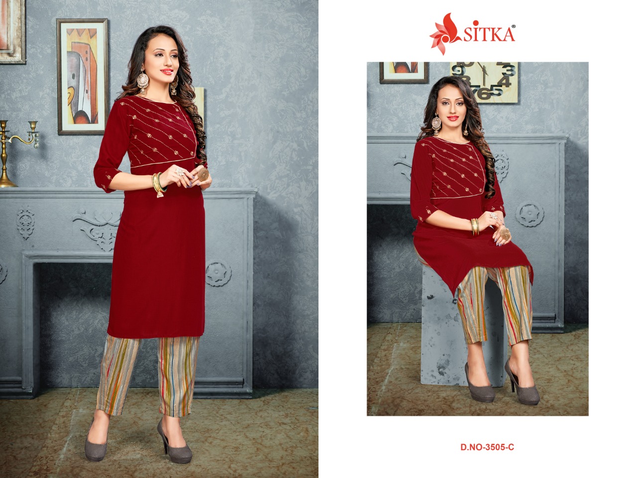 Ice Halwa - 3505 (Only Photo) 4 COLOR MATCHING • FABRIC : RAYON EMBROIDERY KURTI WITH RAYON PRINTED PLAZZO • MOQ : 12 Pcs • SIZE: L,XL,XXL • RATE : 525/- + GST |