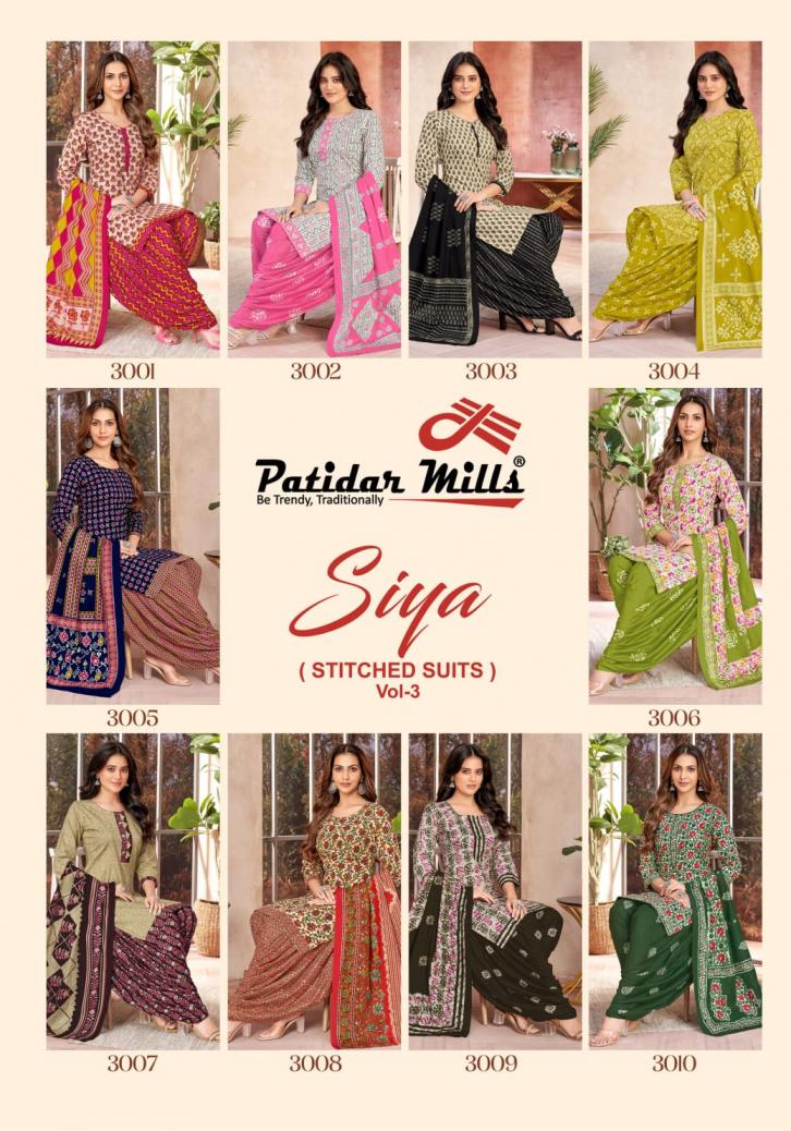 siya vol 3 by patidar mills cotton readymade regular wear 3pcs dress