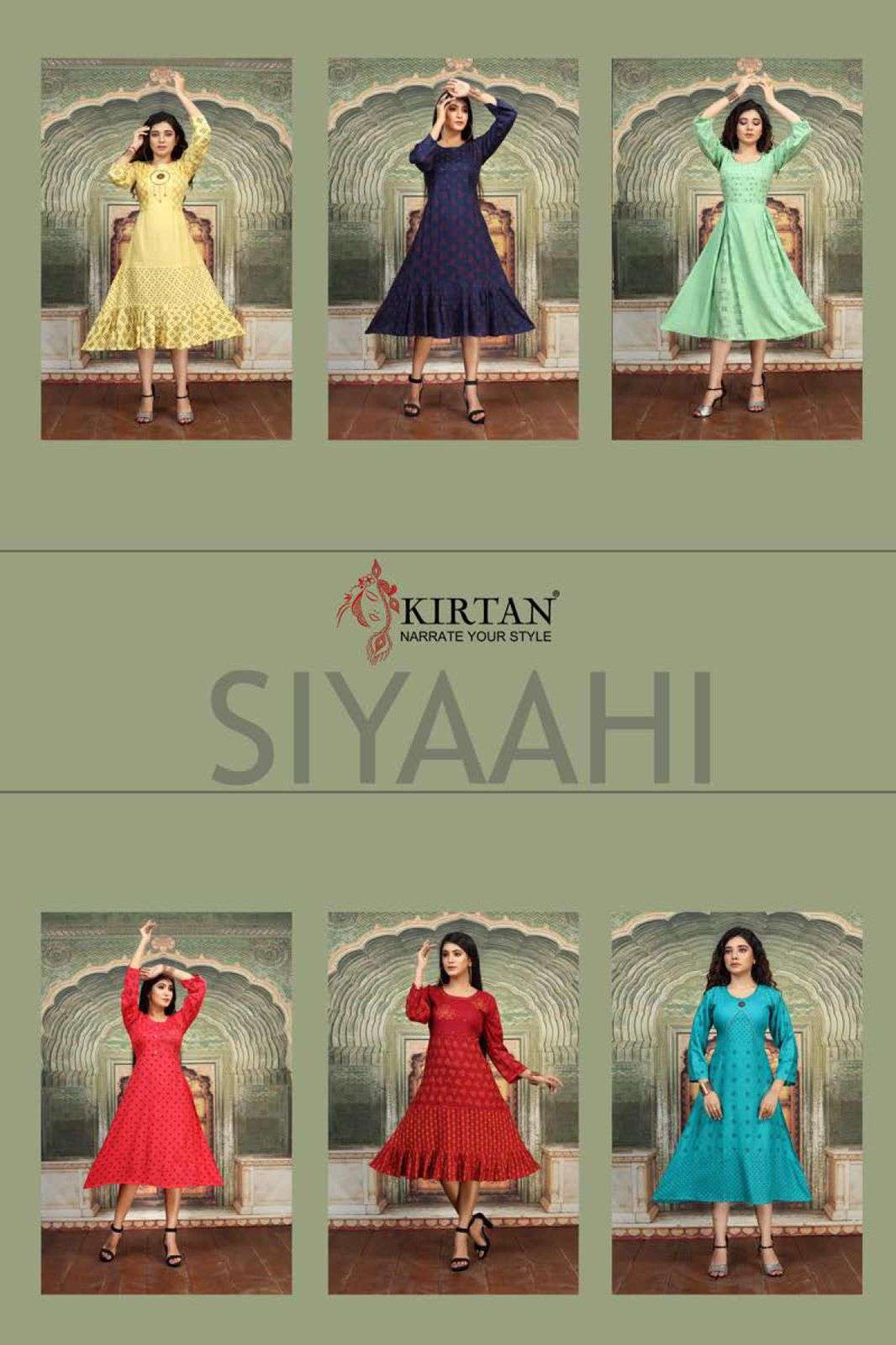 Kirtan (kurti) Catalogue - siyaahi Fabrics.   - rayon fancy Concept  - three prints mix and match Length -.   45 Size.      - S,M,L,XL,XXL,3XL RATE.    - 570/- |