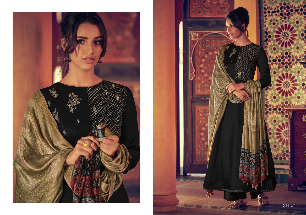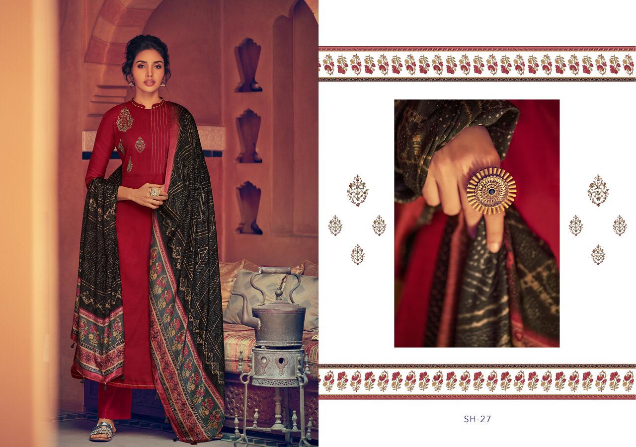 Varsha Fashions Sophia Self woven pure pashmina with pure gaji silk ajrakh digital print dupatta Price- 2180/- Pcs - 07 Buy Winter Woven Pashmina Designer Branded Ladies Suits Wholesaler In surat |