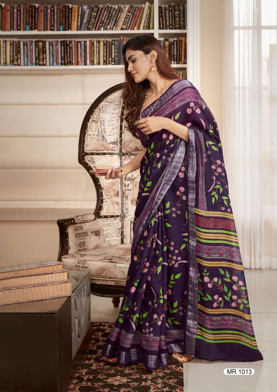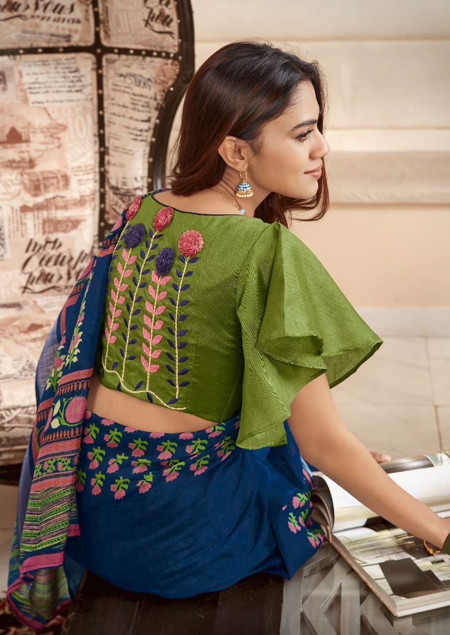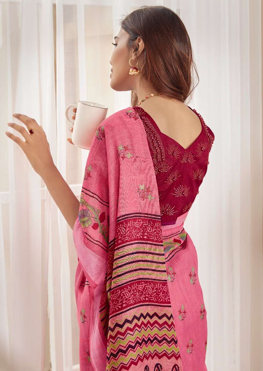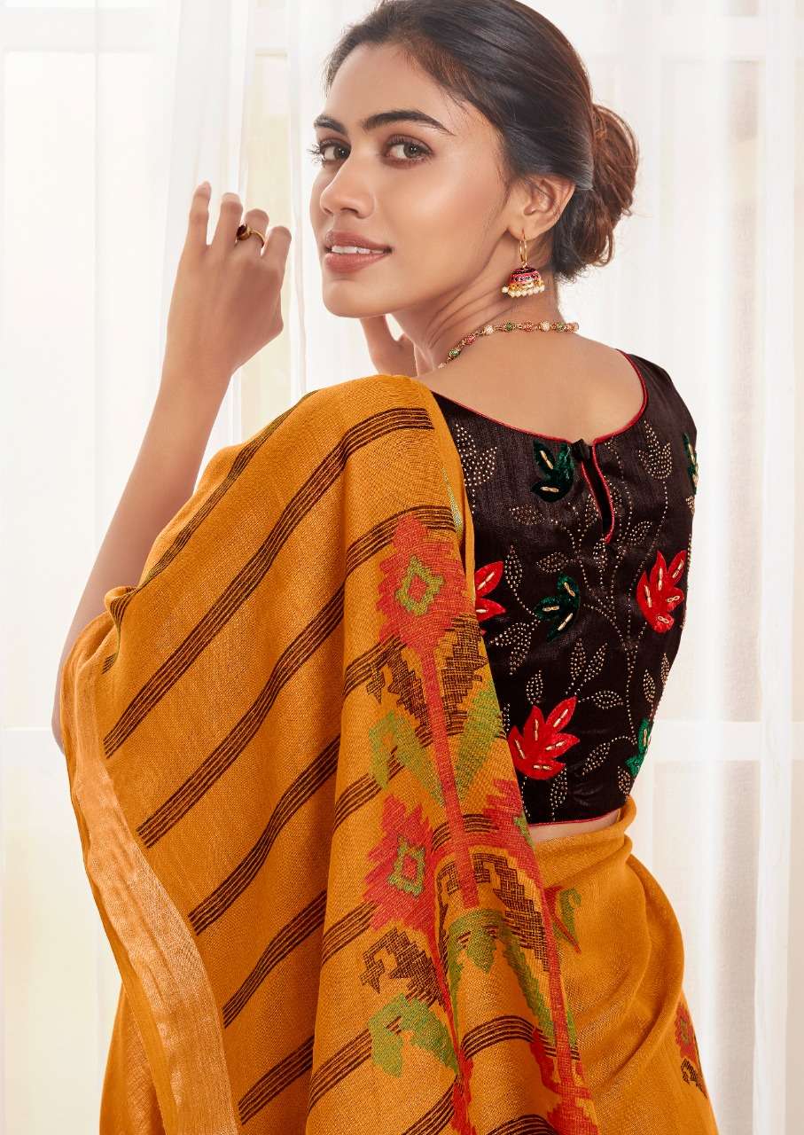 sr mercury vol 2 pure linen saree with handwork blouse pattern