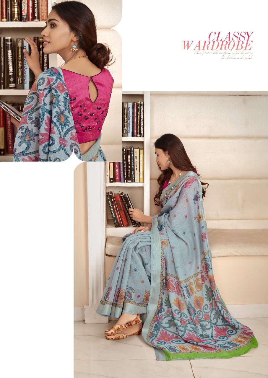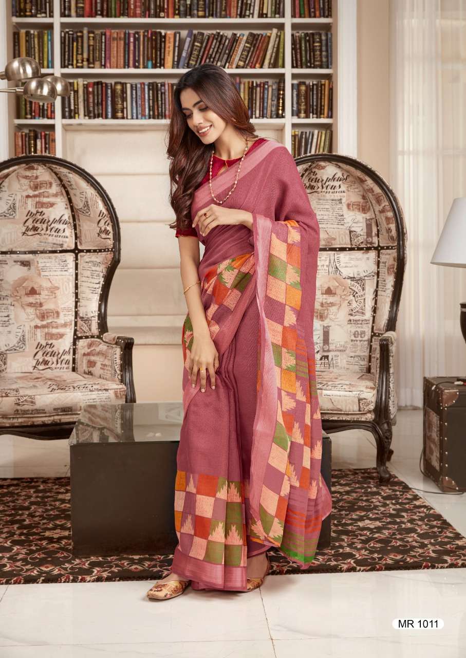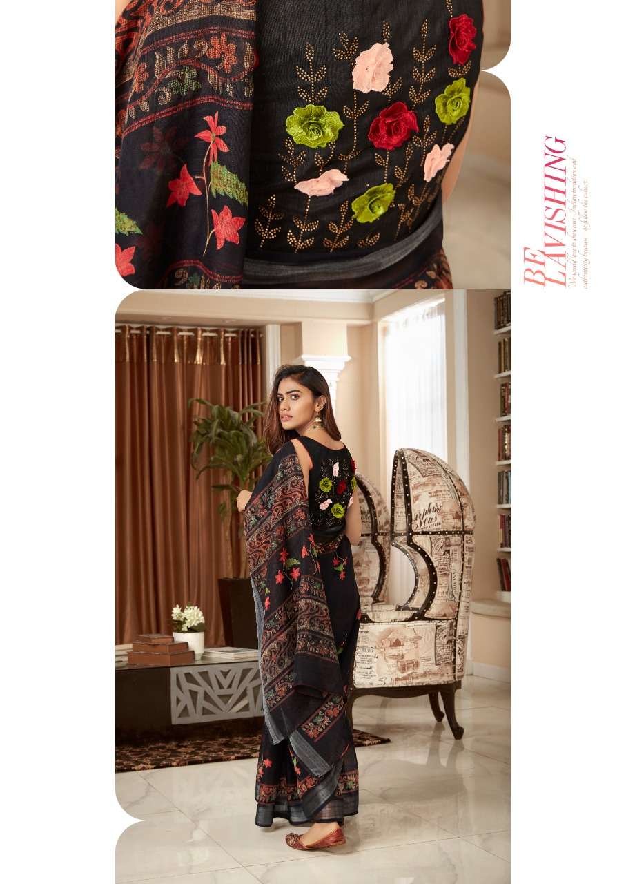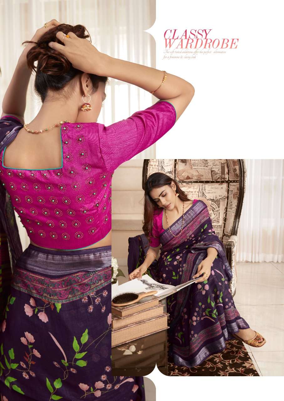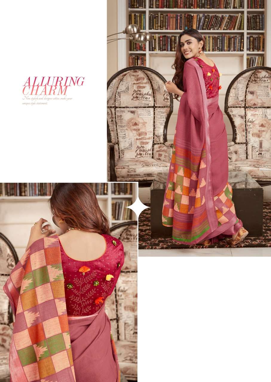 sr mercury vol 2 pure linen saree with handwork blouse pattern
