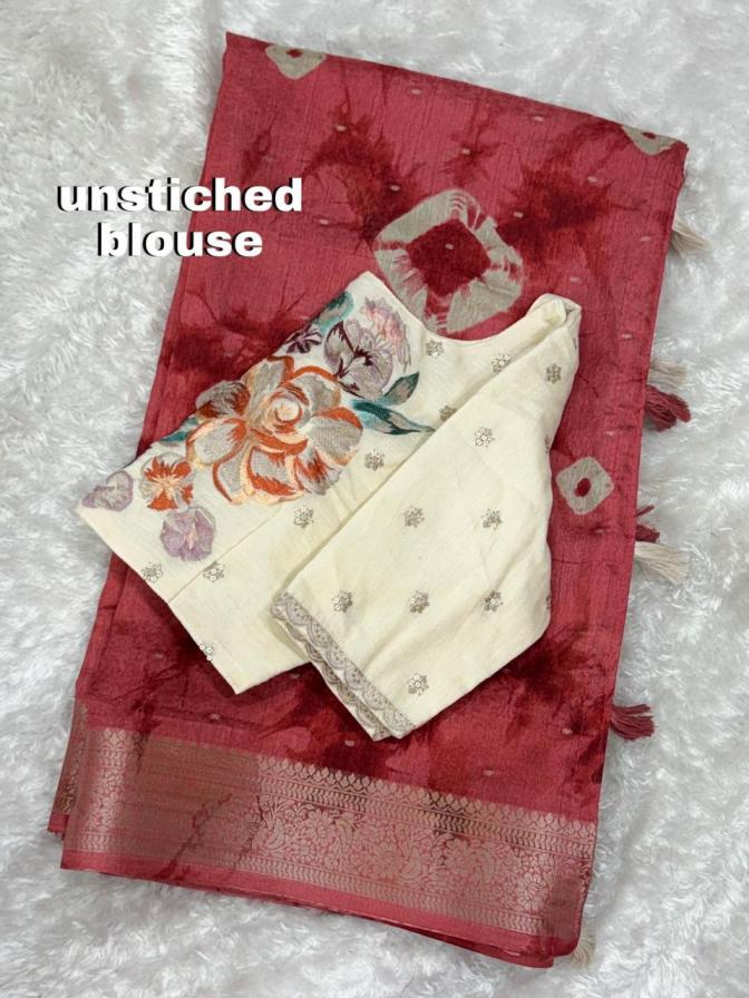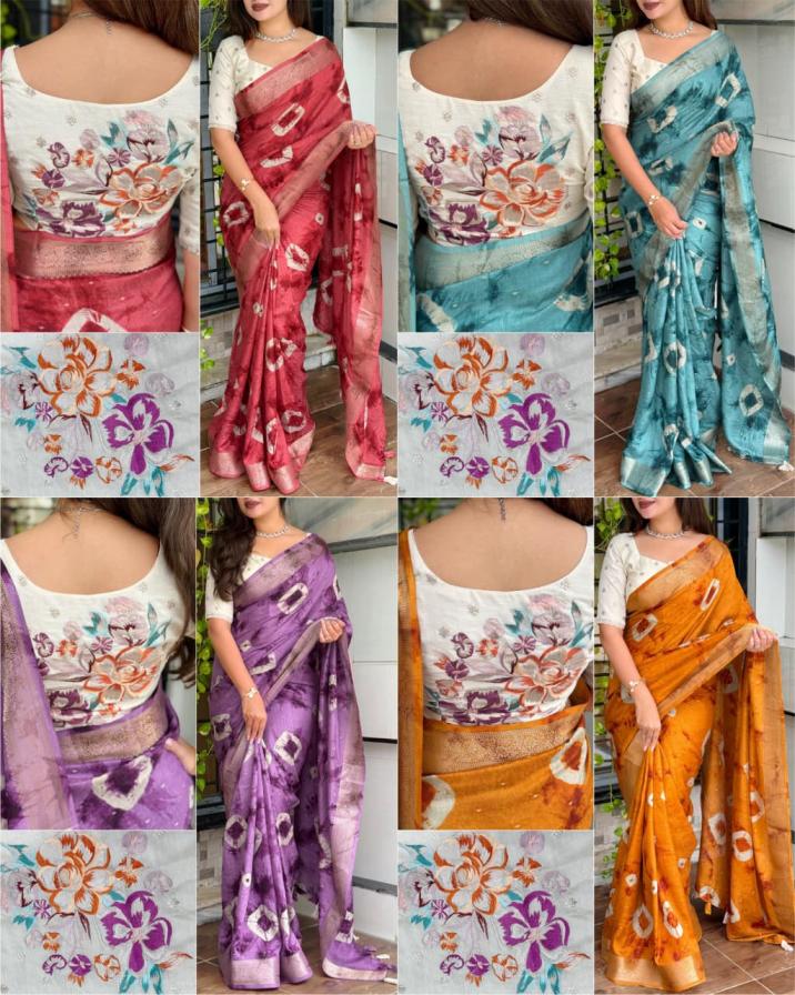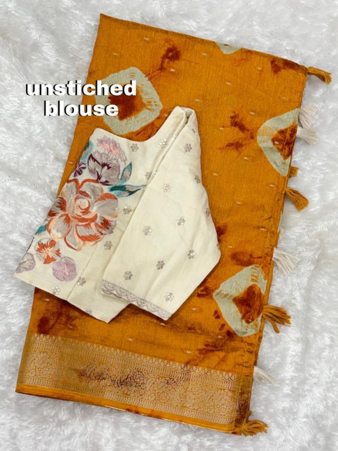 Design- Srivalli A blouse that make a statement, a piece of art Wrapped in the poetry of fine Embroidered work, with a classic shibori print viscose cotton saree