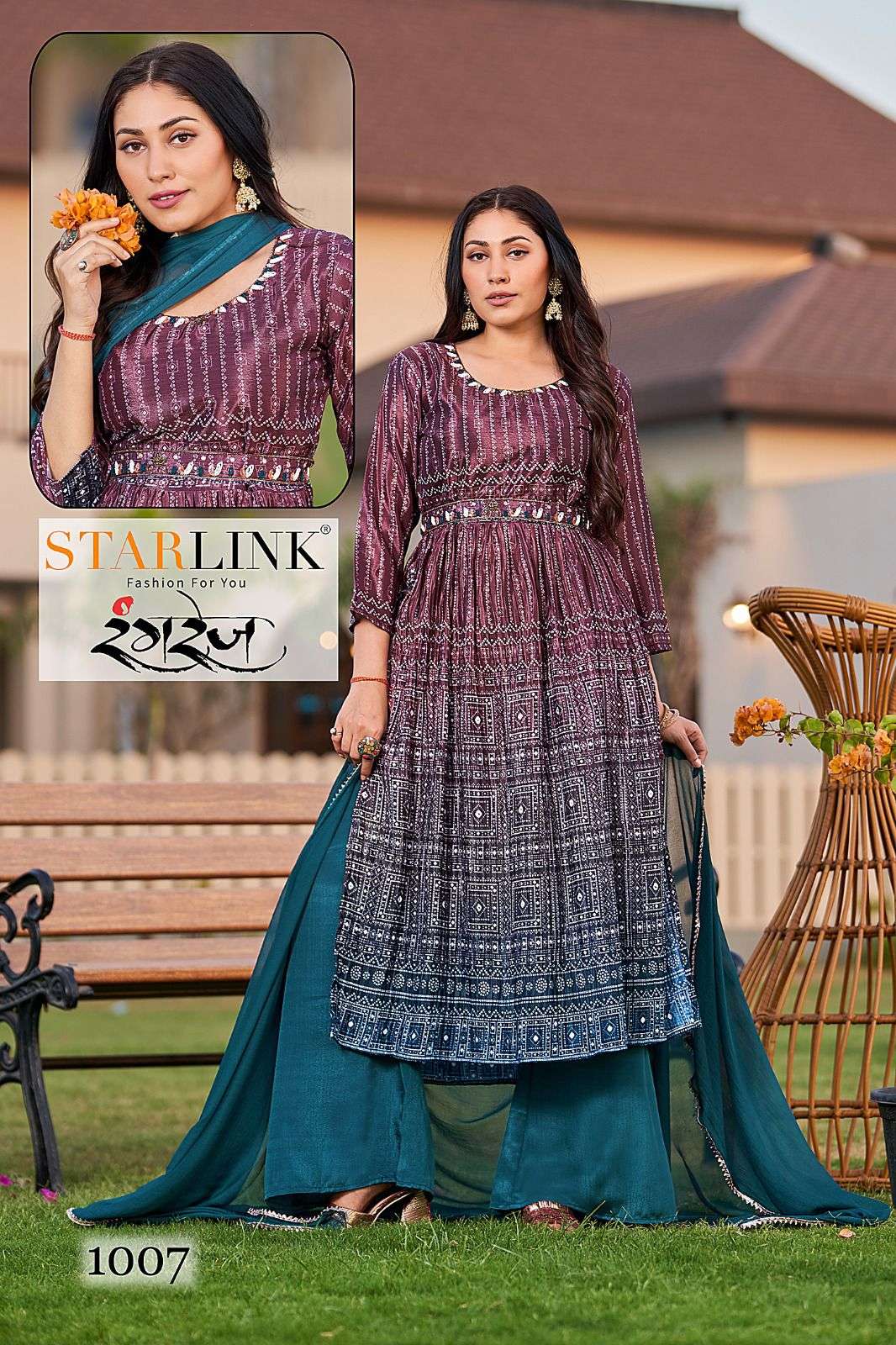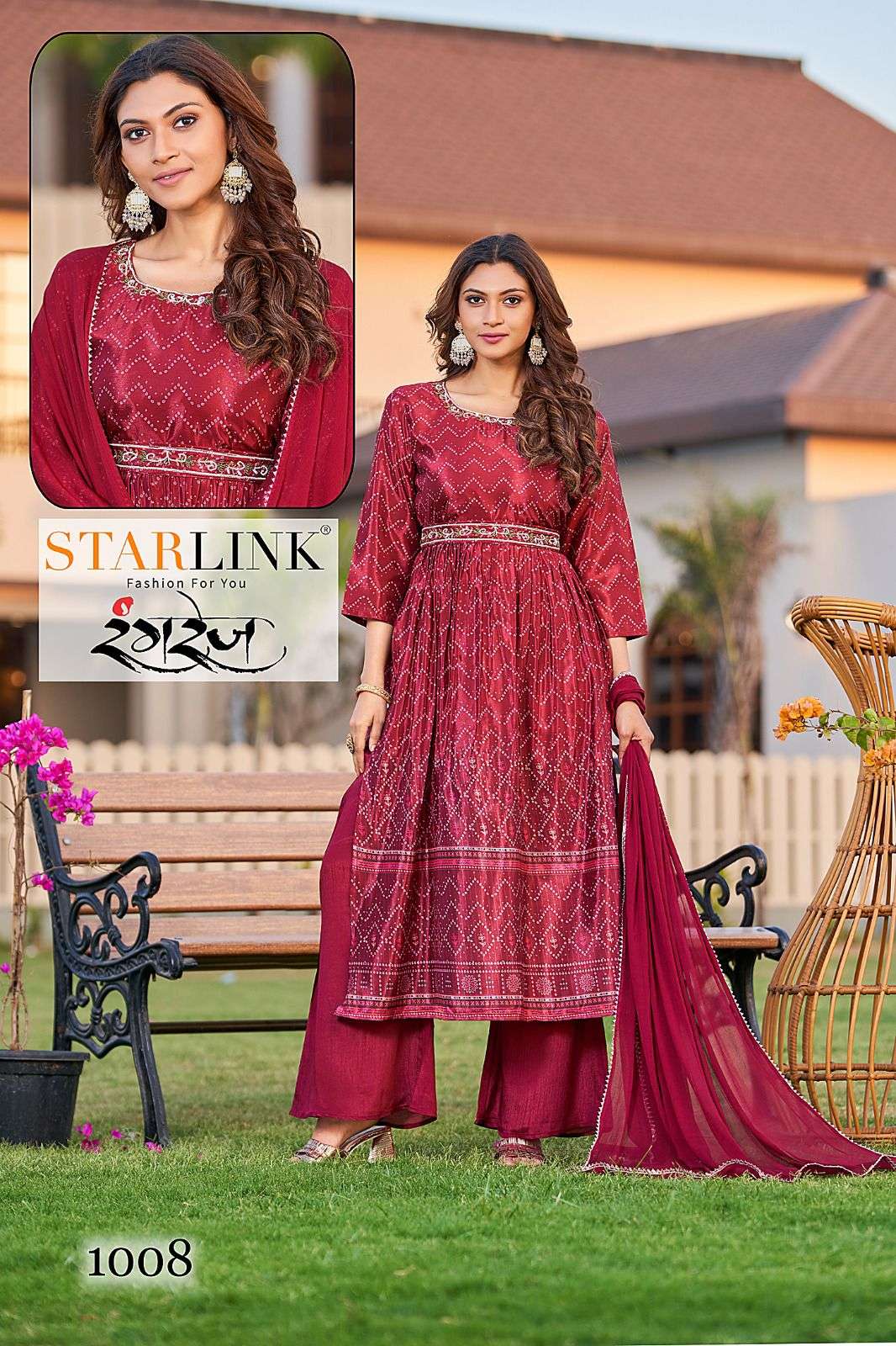 starlink rangrez nyra cut top with pant and dupatta 3psc set