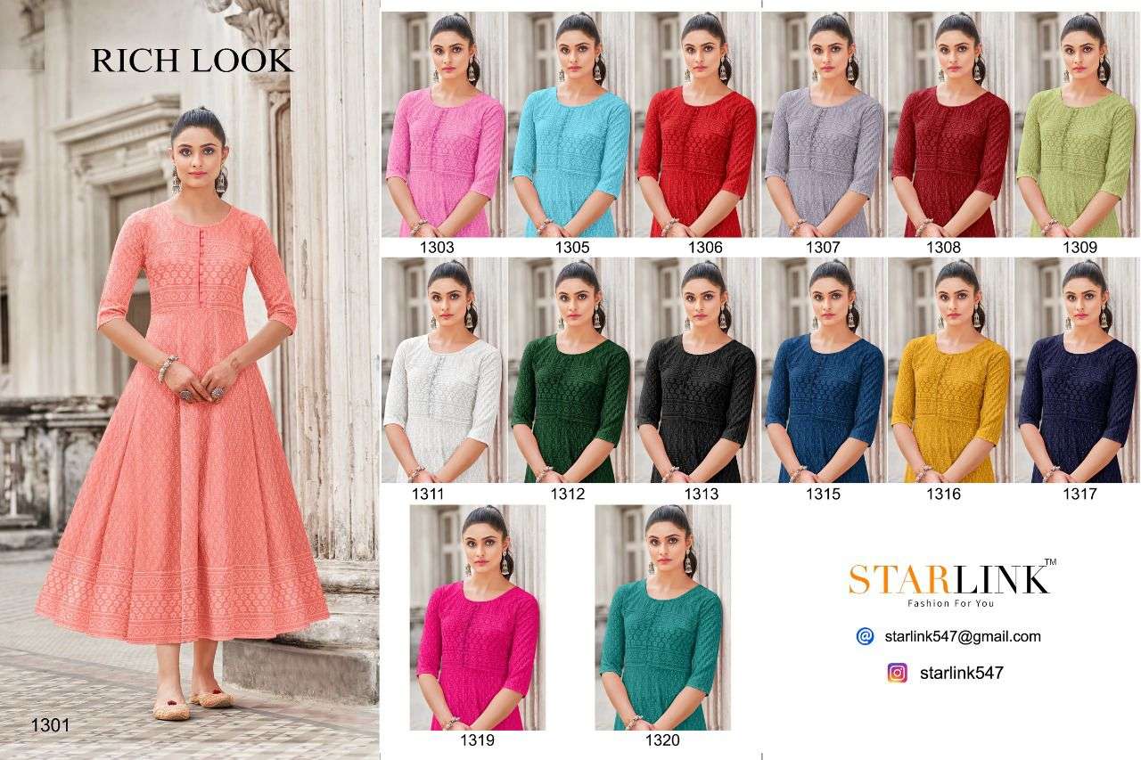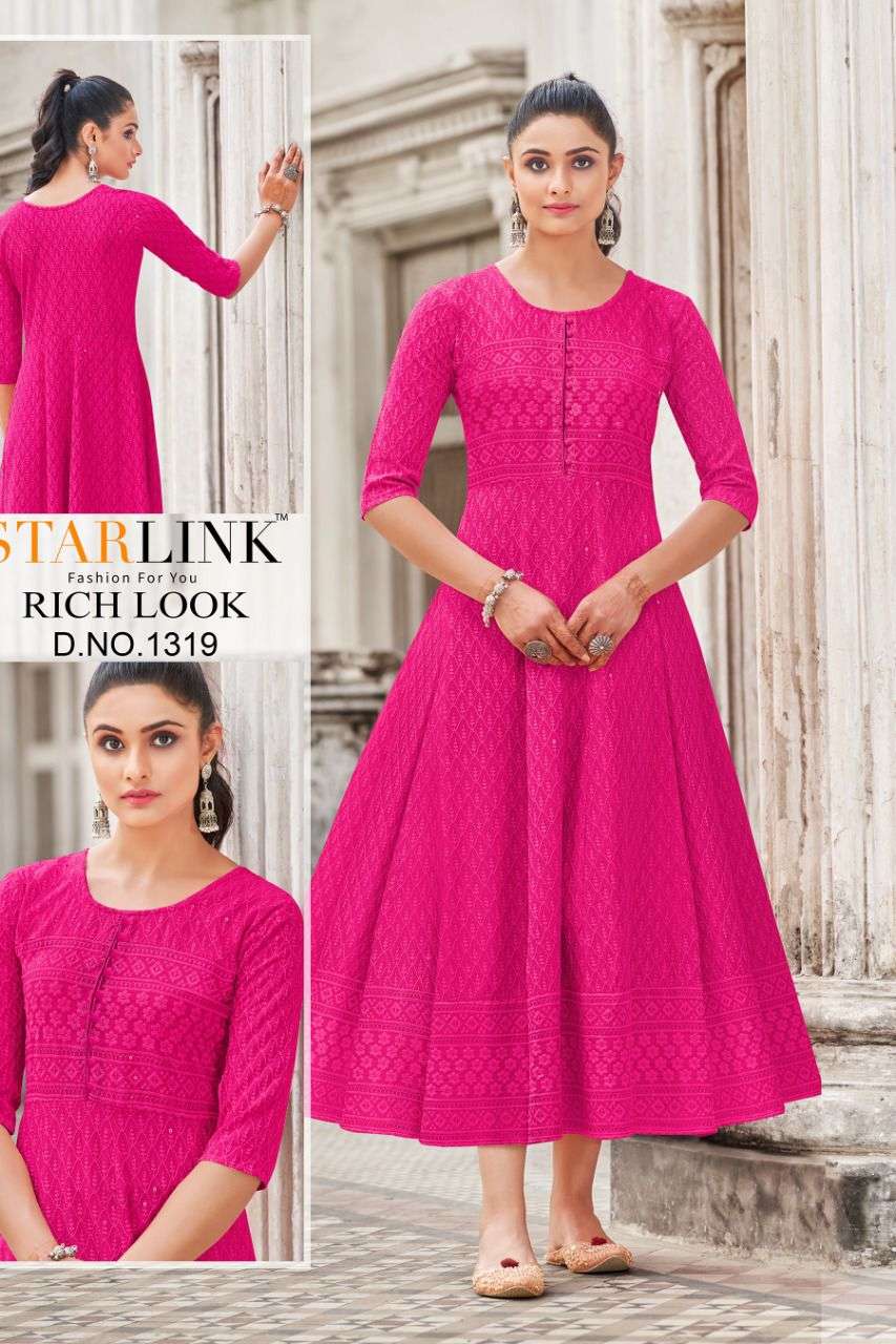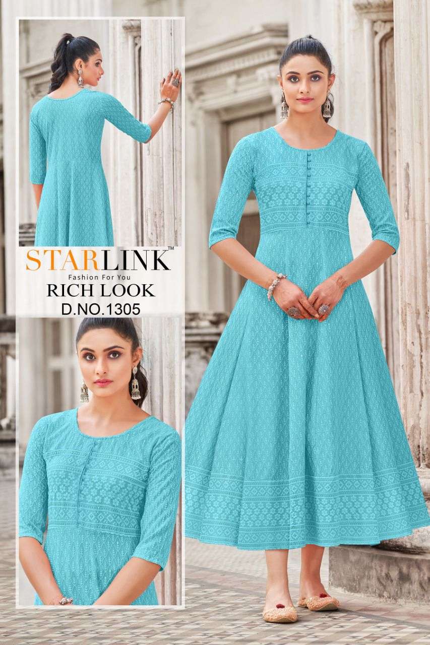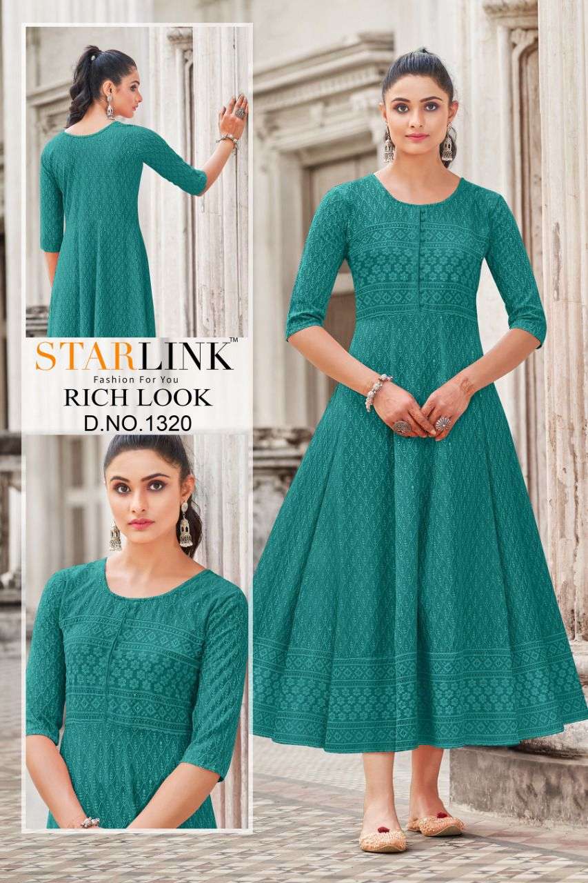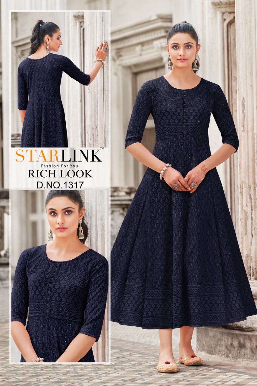 starlink rich look rayon schiflli work anarkali kurti combo set exports
