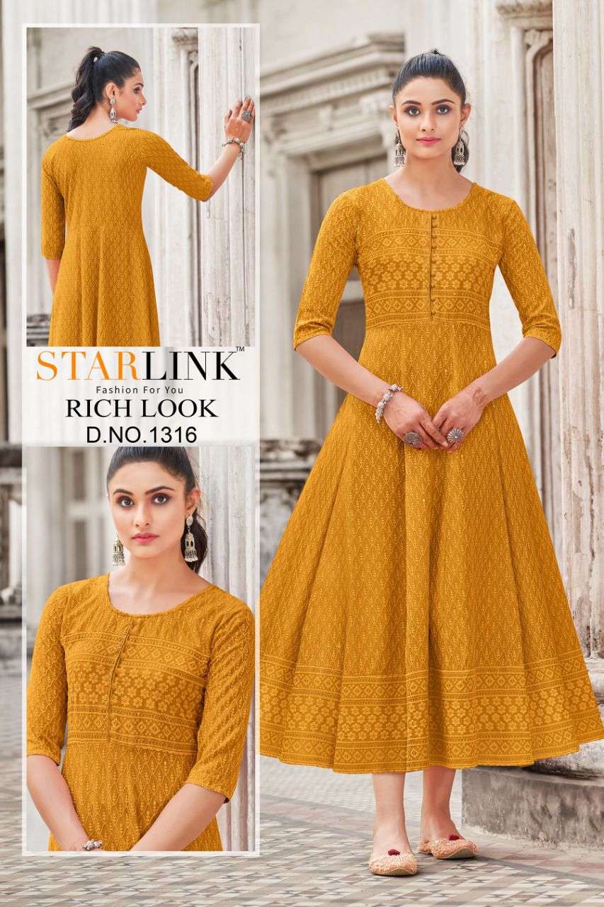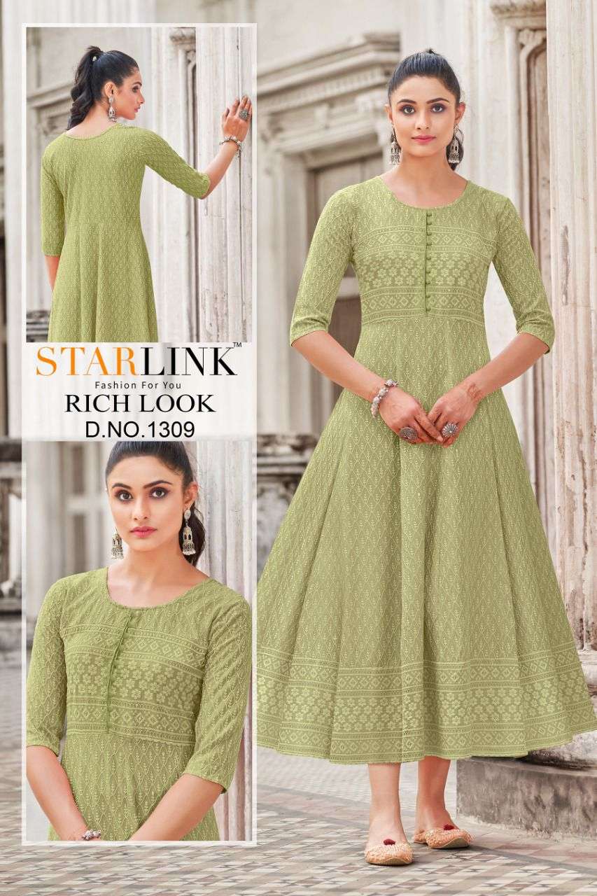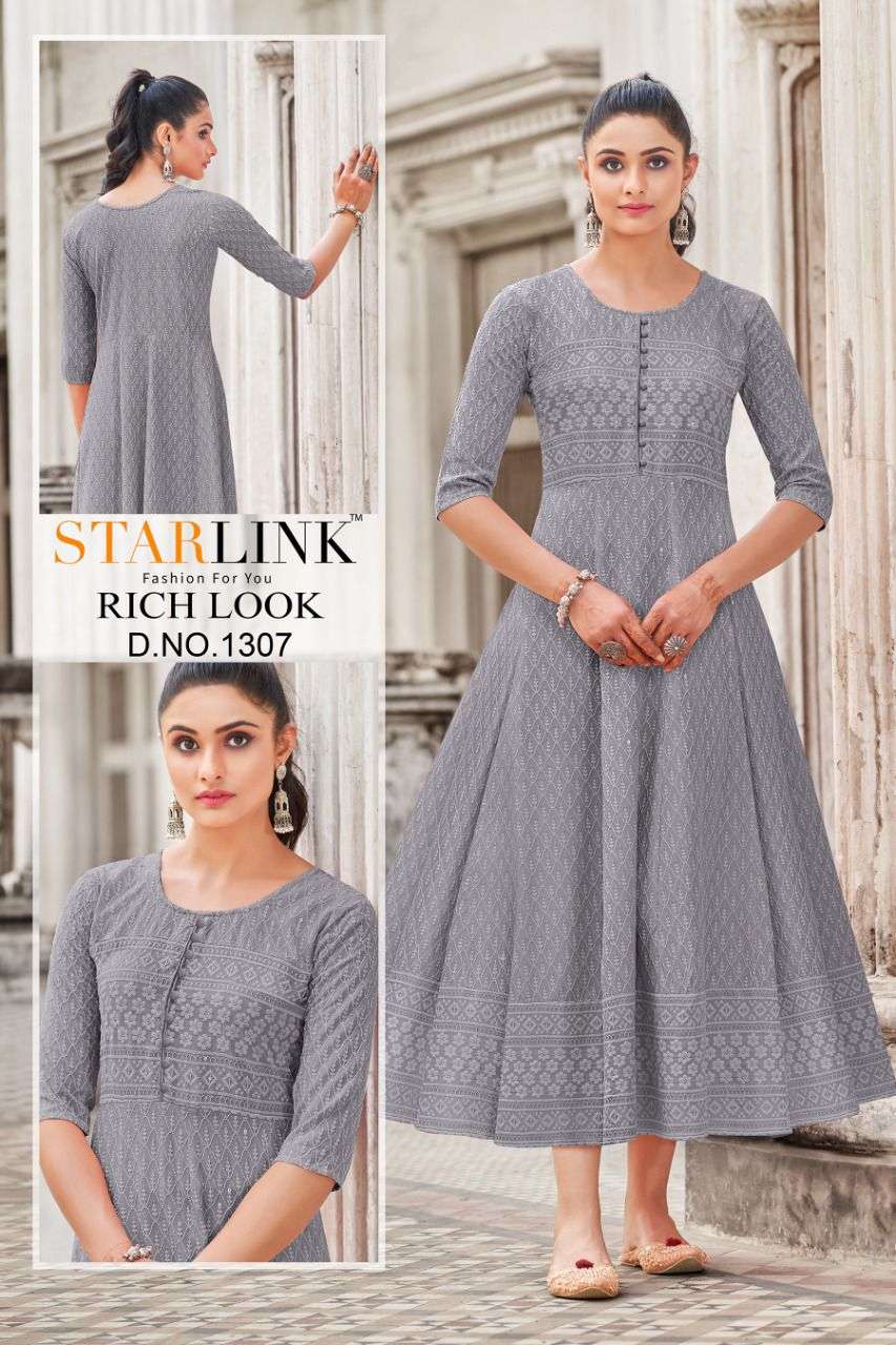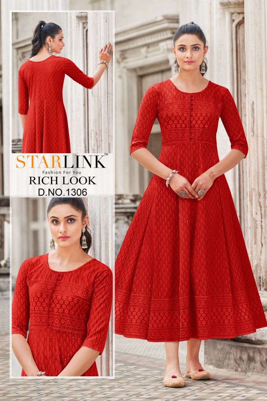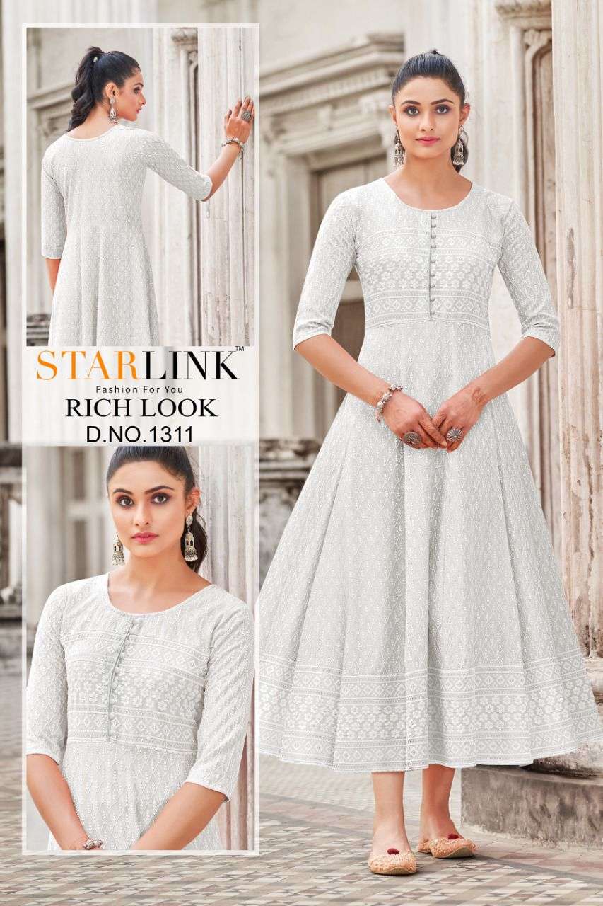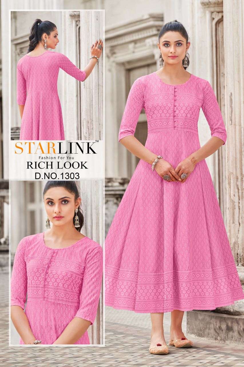 starlink rich look rayon schiflli work anarkali kurti combo set exports