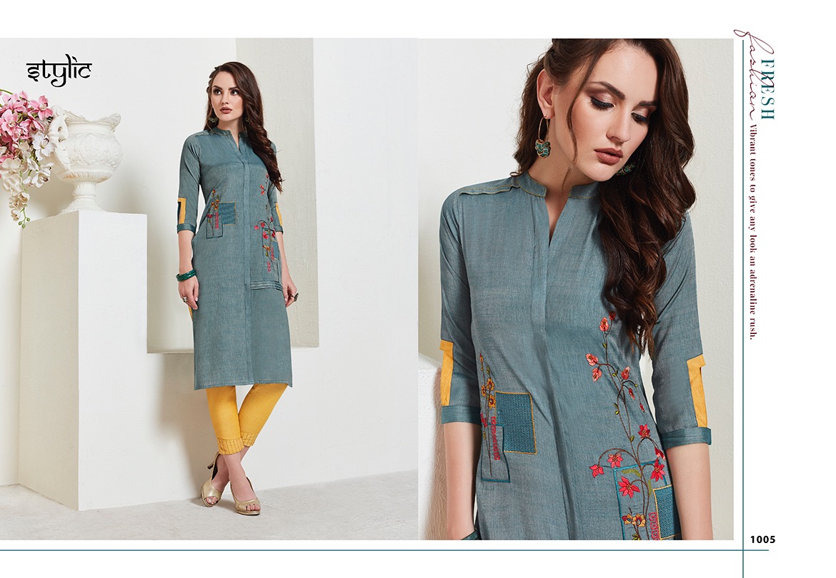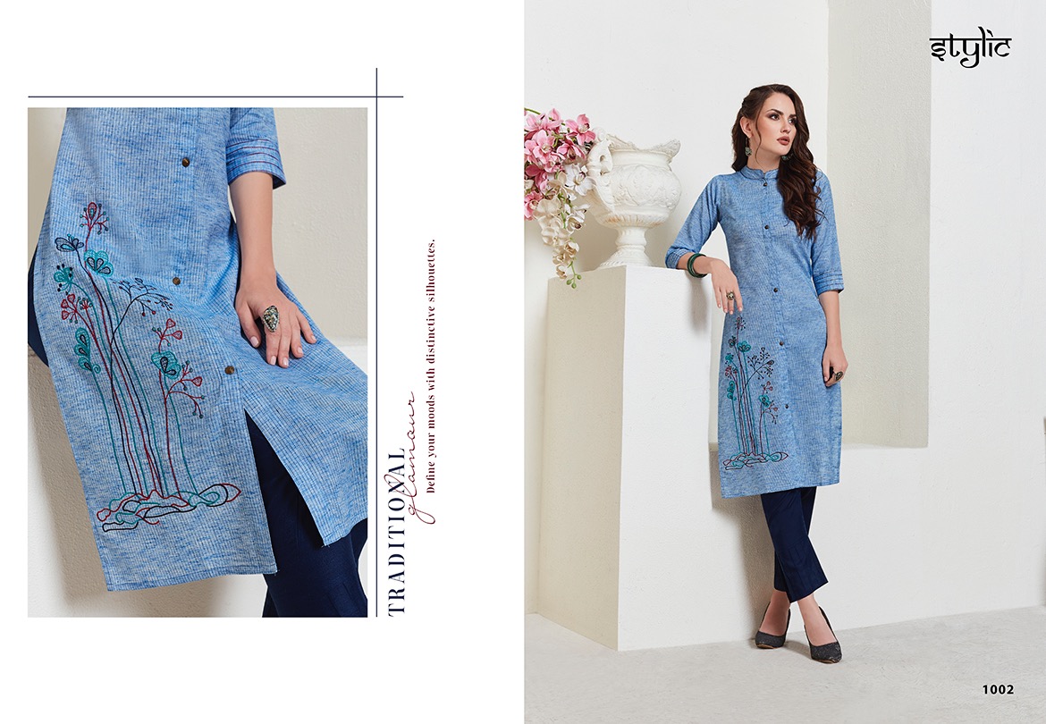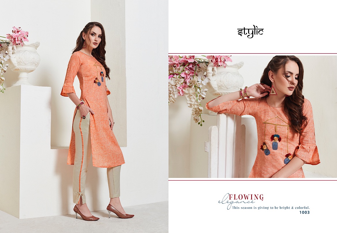 Stylic Present Eliza Linen Long Kurti With Pant Online Shopping In Surat