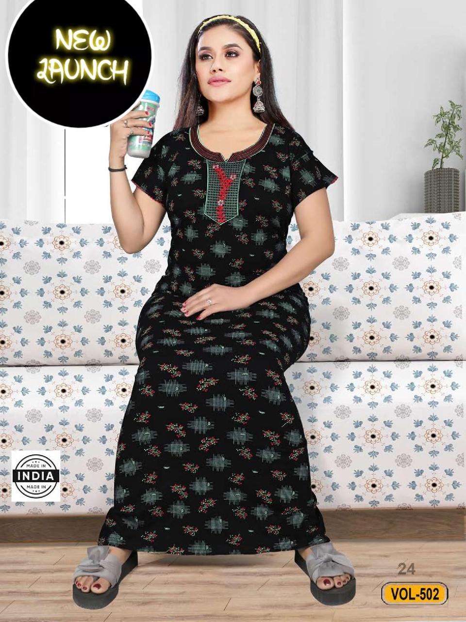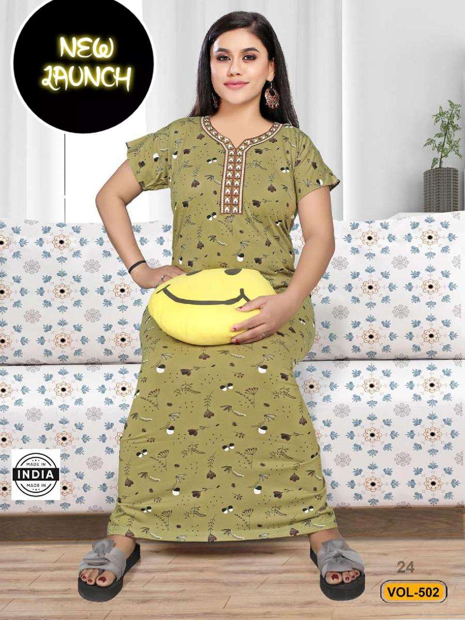 SUMMER SPECIAL SHINKER NIGHTY GOWN VOL.502 Shinker Print Hosiery Cotton NIGHTY GOWN CATALOG WHOLESALER BEST RATE