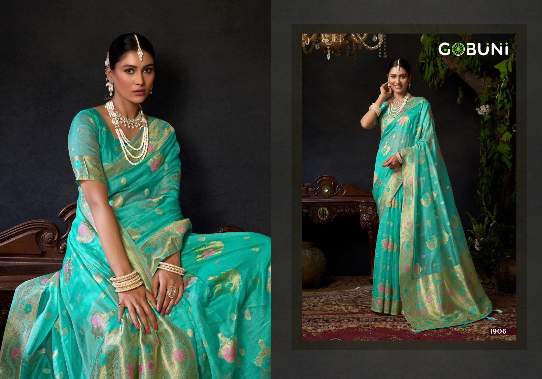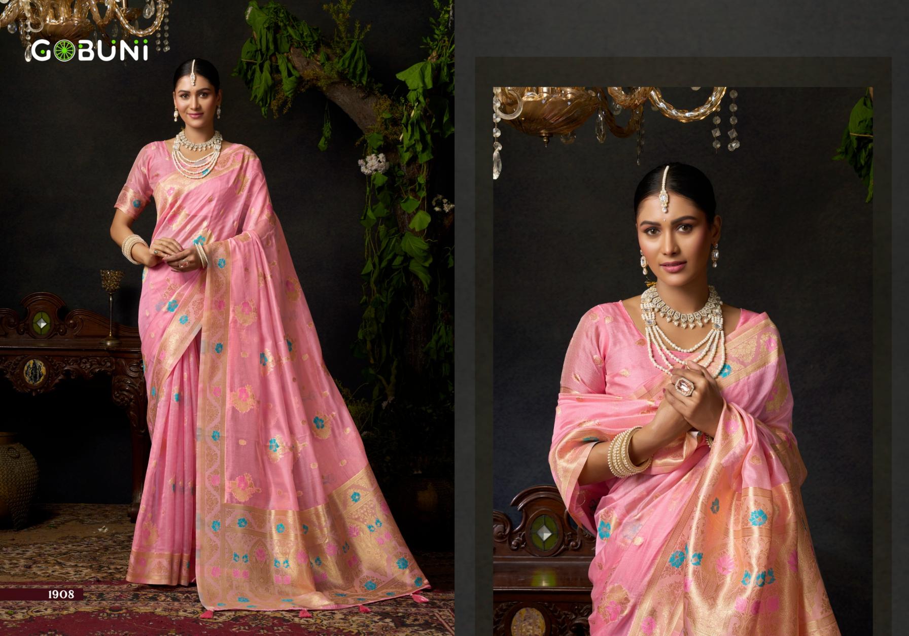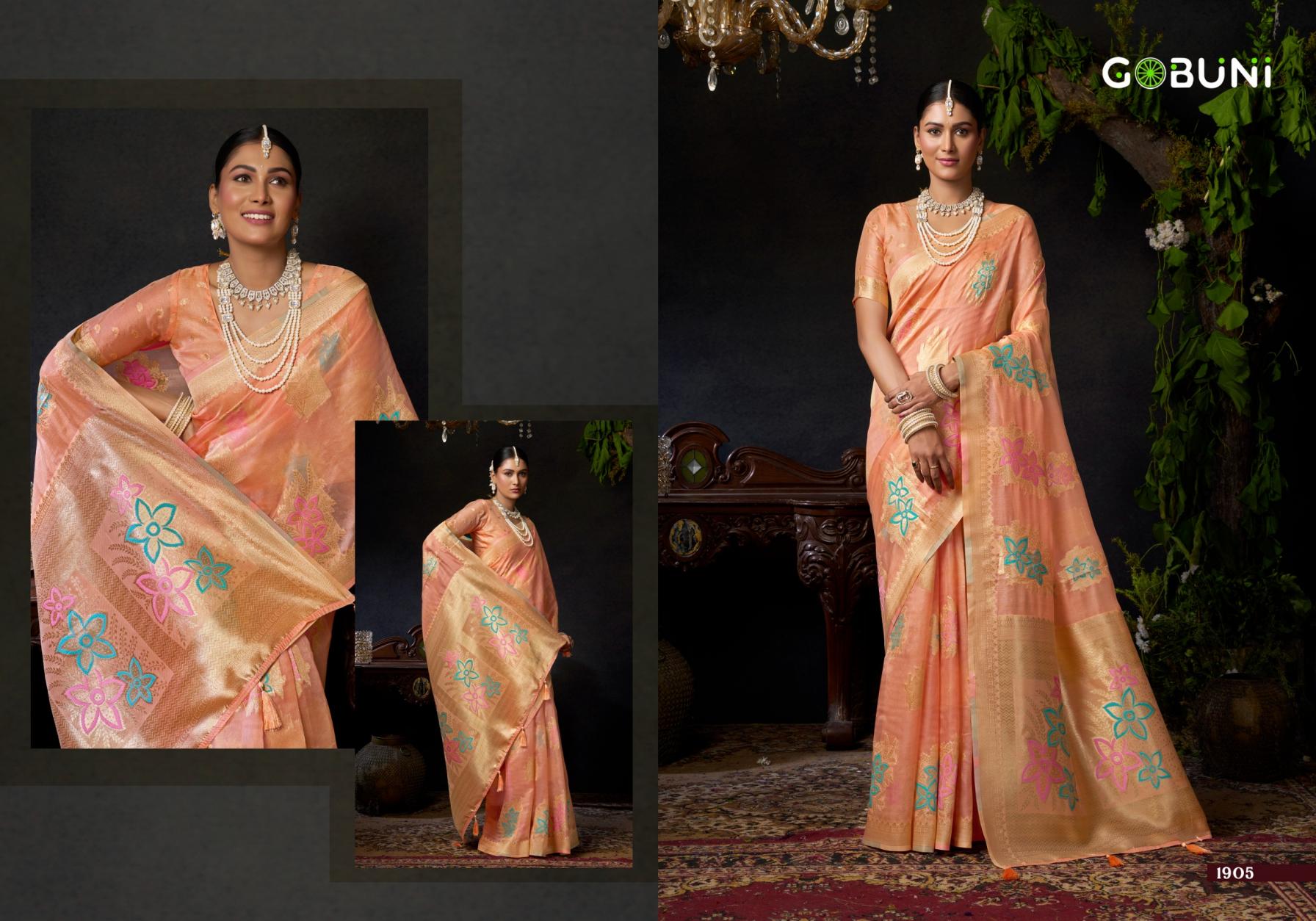 New Catalogue Launching by Gobuni 🥳 ✨ Elegance with a Touch of Tradition Brand - Gobuni👑 Catalogue Name - Sundari Vol 2 Series - 1905 To 1906 Saree Fabric - Organza Khadi with Zhallar Cut - 6.30 mtr with Blouse Rate - 1150/- + 5% Gst 04 Pc Set |
