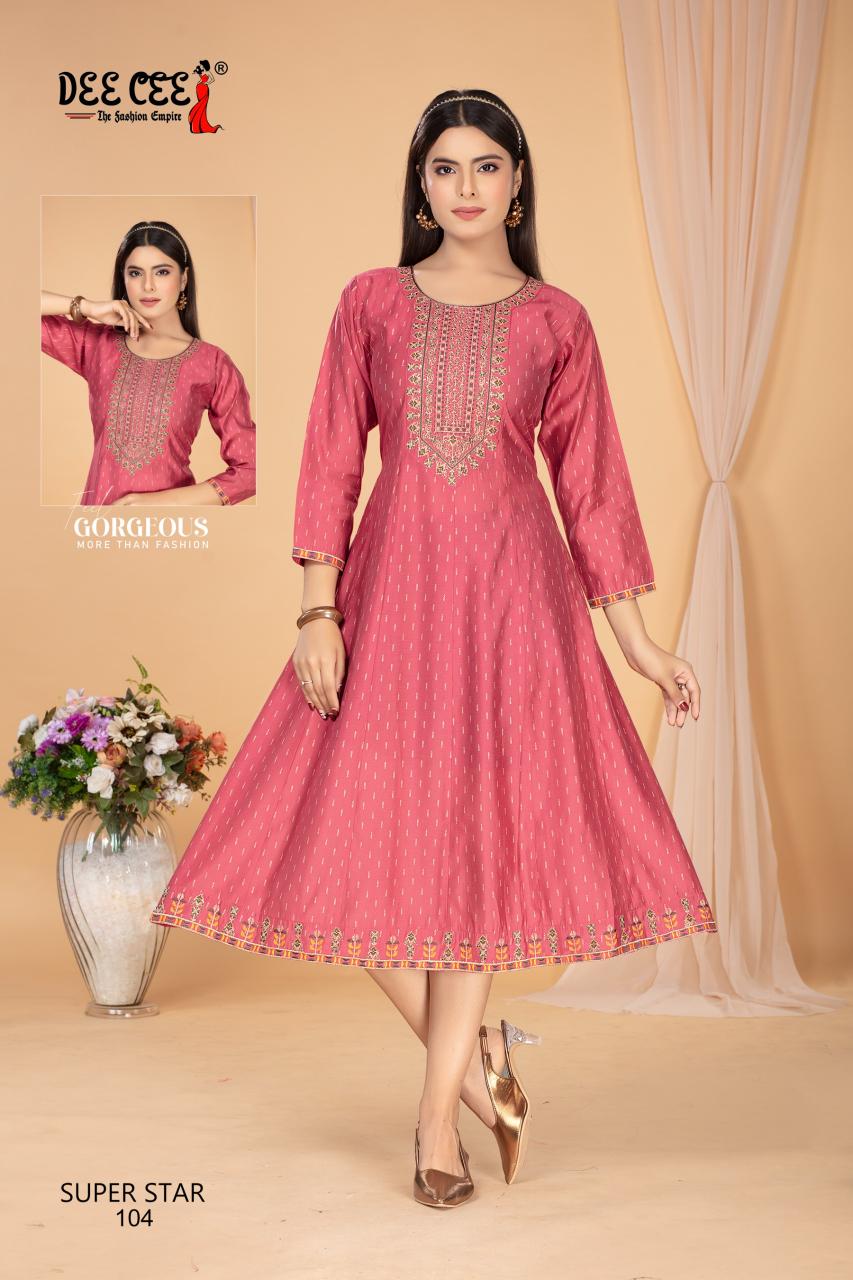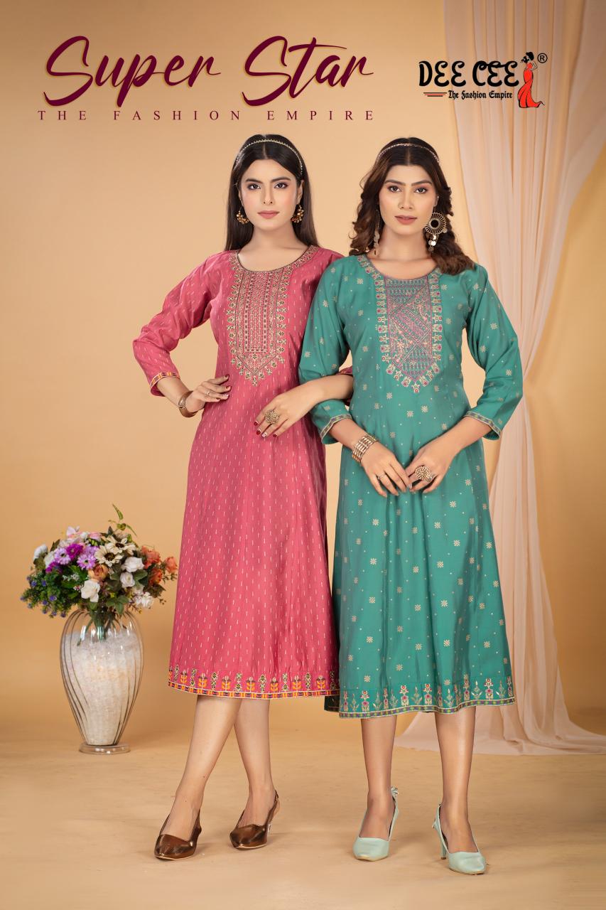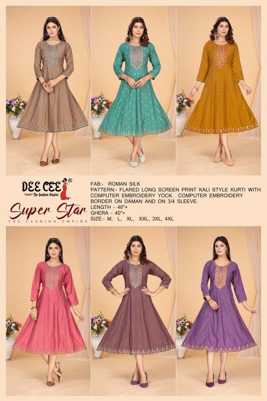 super star by deecee roman silk readymade big size fancy kurtis supplier