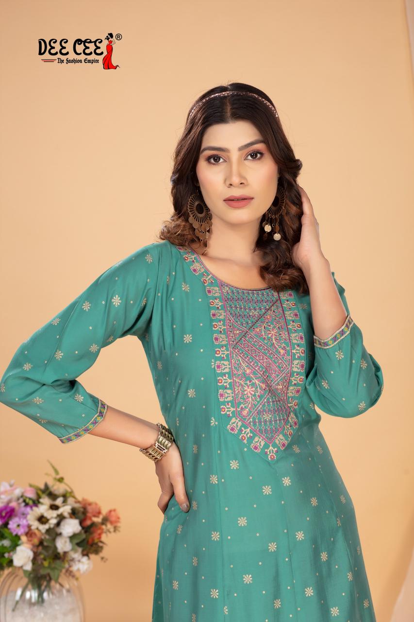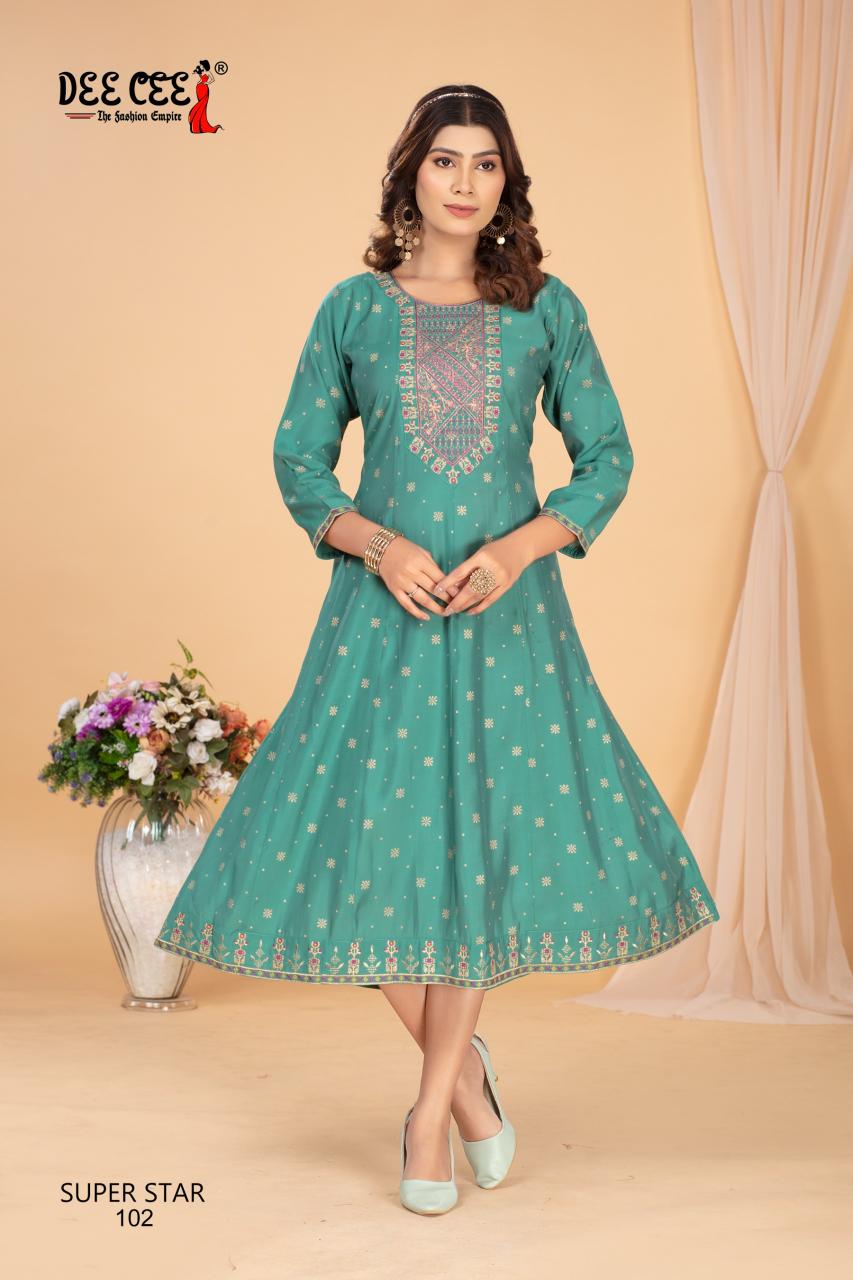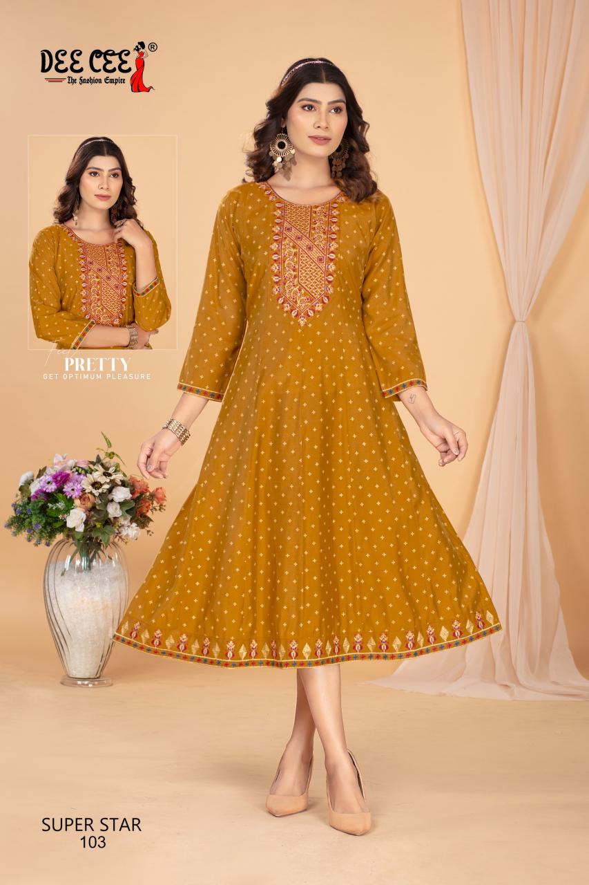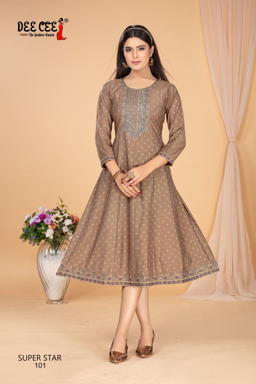super star by deecee roman silk readymade big size fancy kurtis supplier