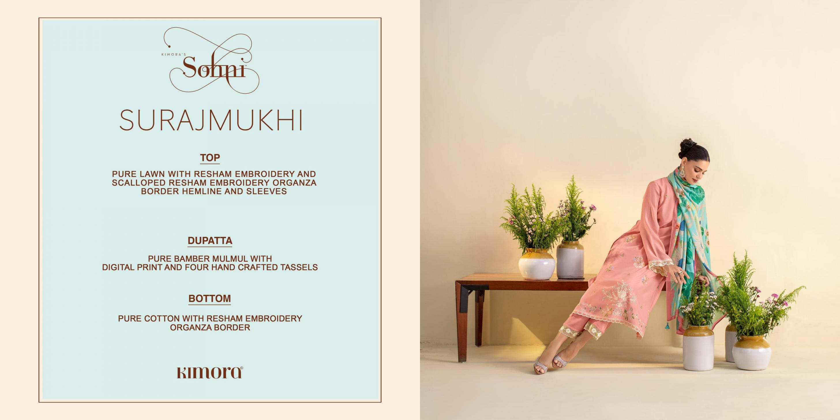 surajmukhi by kimora sohni lawn stylish look suit for women