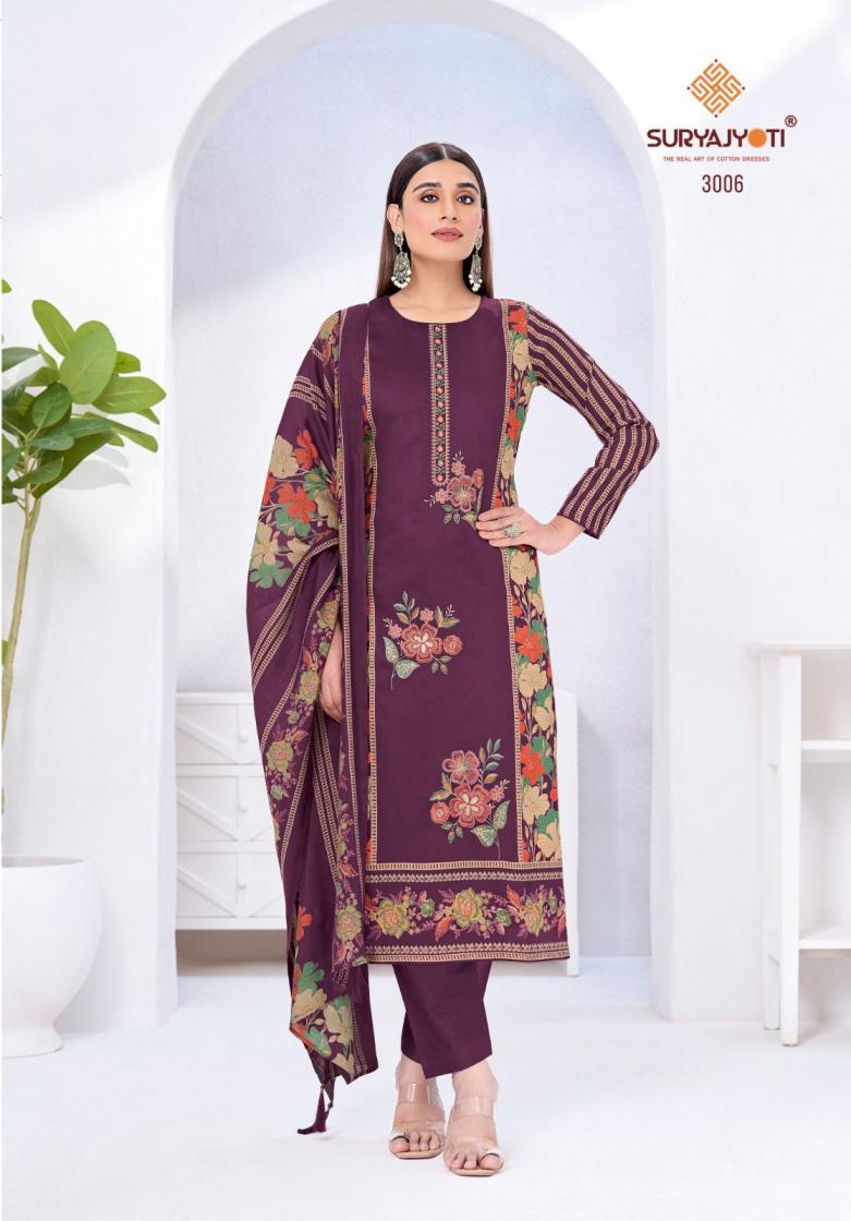 Suryajyoti Cotton Presents Latest Collection Launched on 04-10-2025. Presenting Beautiful collection of 6 PCS with Unstitched .