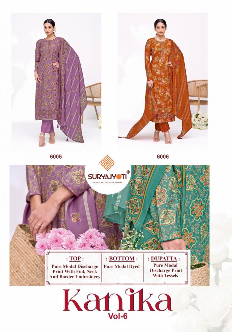 DEAR CUSTOMER👫 🙏WELCOME TO SURYAJYOTI 😍LAUNCHING OF SURYAJYOTI’S NEW FANCY CATALOG 📕CATALOGUE:- KANIKA VOL- 6 👗TOP:- PURE MODAL DISCHARGE PRINT WITH FOIL ,NECK & DAMAN EMBROIDERY WORK 👖BOTTOM:- PURE MODAL DYED 🧣DUPATTA:- PURE MODAL DISCHARGE PRINT WITH TESSELS CUT:- 👚2.50-👖2.50-🧣2.25 💸RATE:- 835/- 🧳PACKING:- EXCLUSIVE POUCH PACK WITH BAG Always with you...👍 |