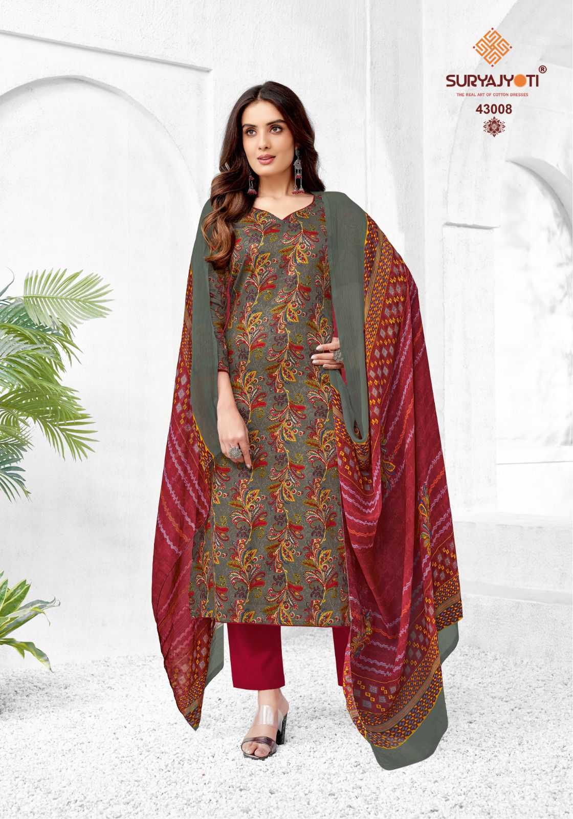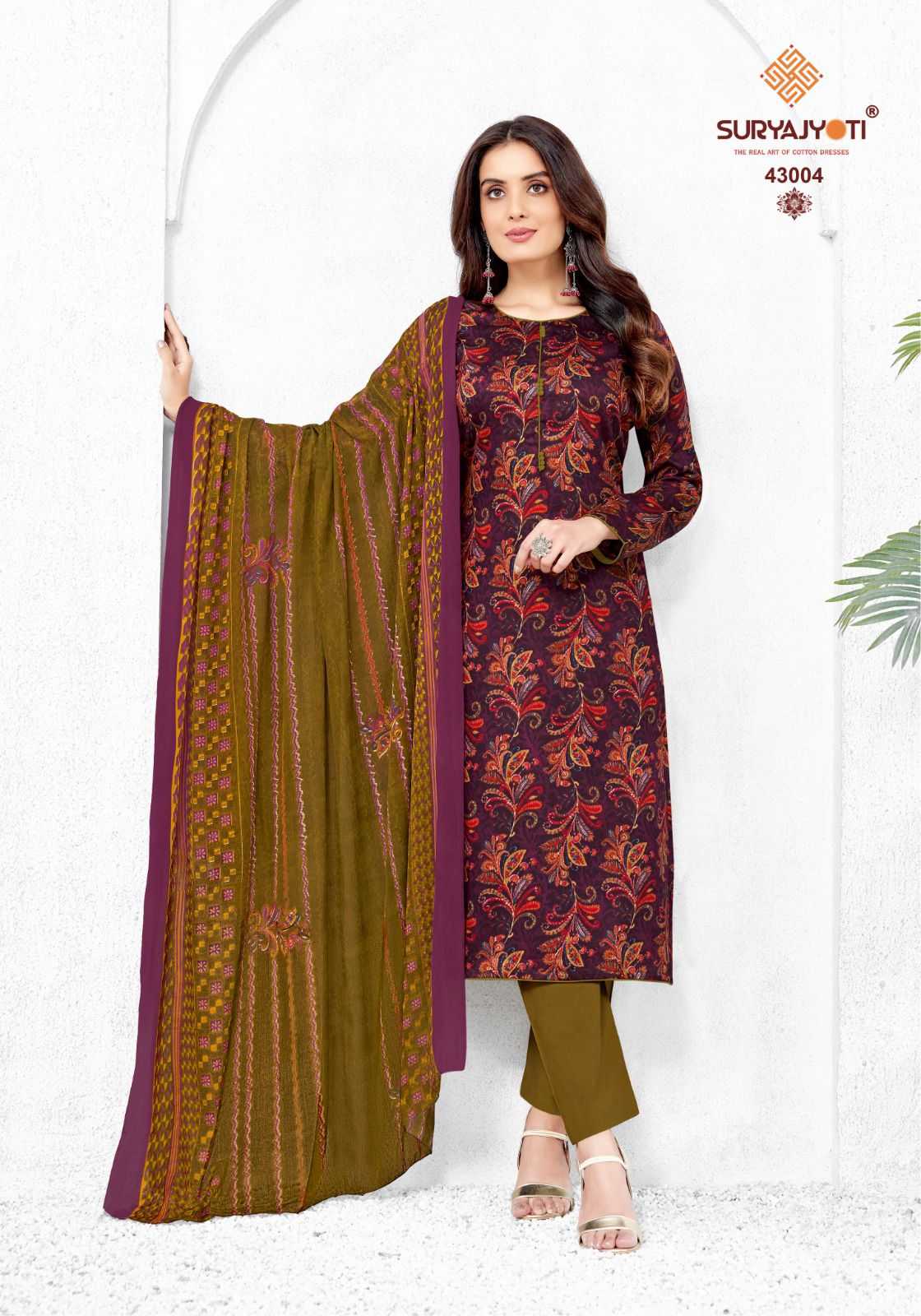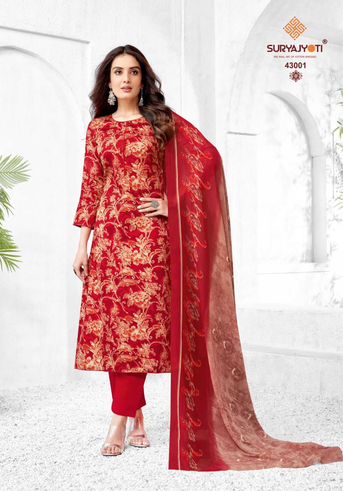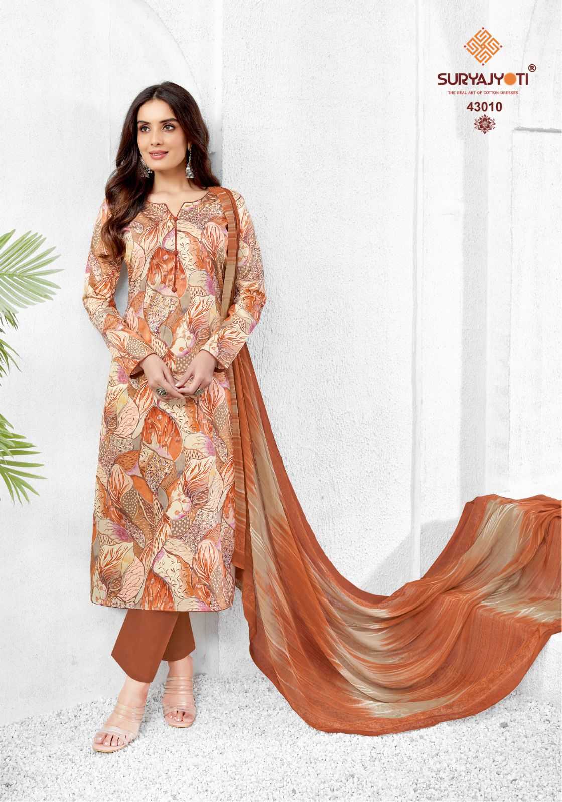 Suryajyoti Cotton Presents Latest Collection Launched on 18-07-2024. Presenting Beautiful collection of 10 PCS with Unstitched .