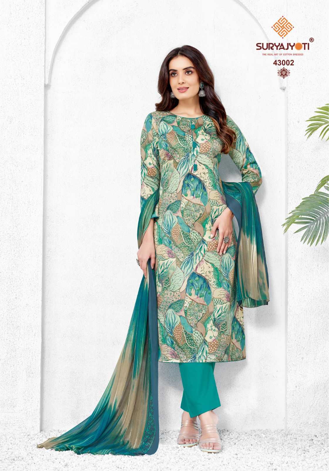 suryajyoti naishaa vol 43 unique satin printed 3pcs salwar suit