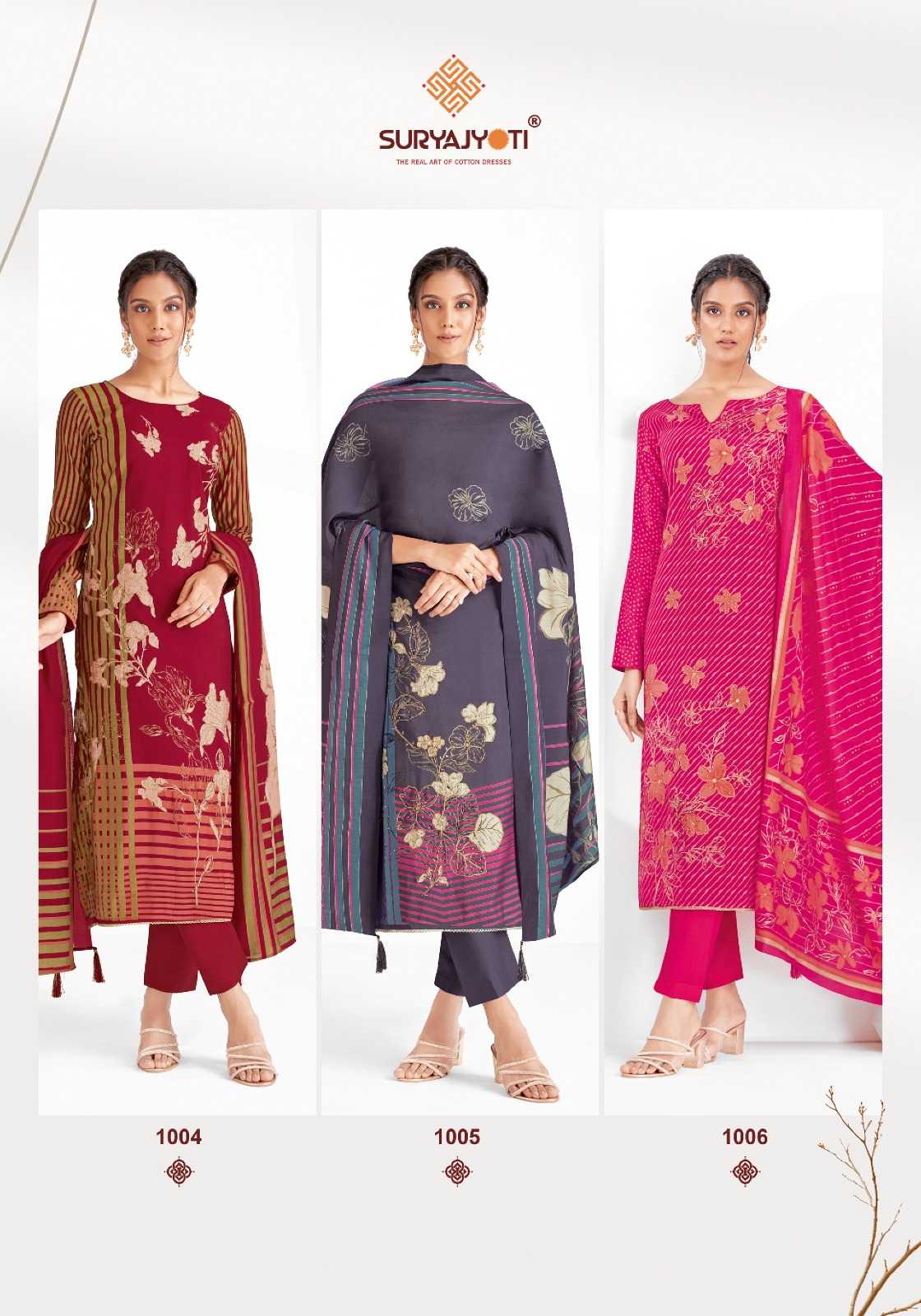 Suryajyoti Cotton Presents Latest Collection Launched on 19-06-2024. Presenting Beautiful collection of 6 PCS with Unstitched .