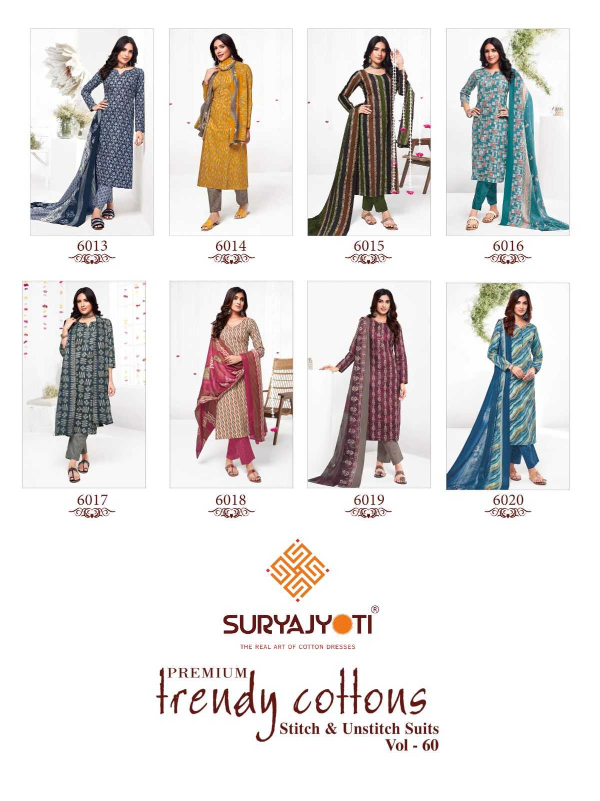 suryajyoti trendy cotton vol 60 beautiful casual unstitch ladies suit