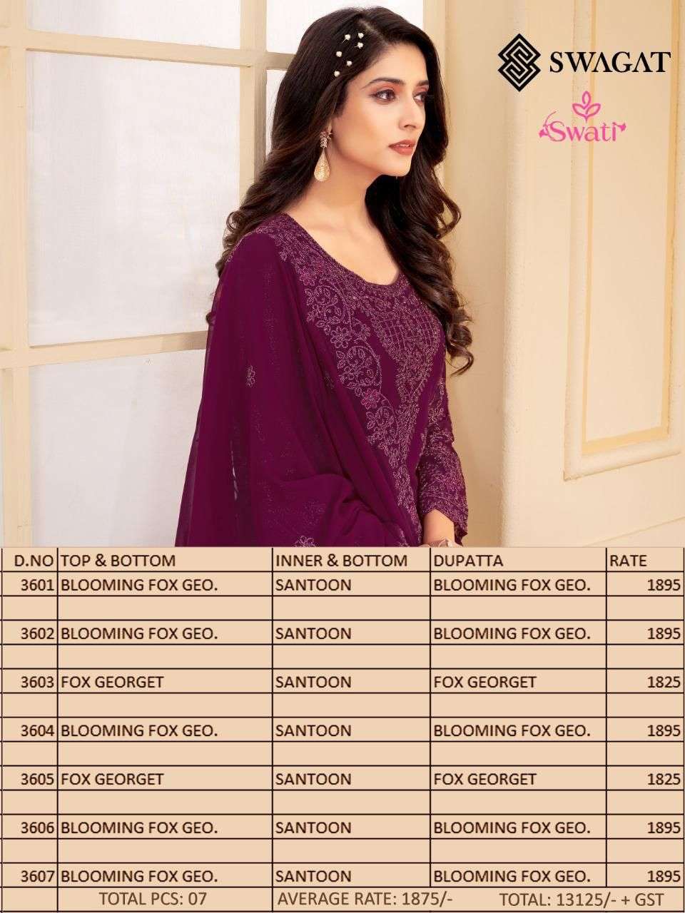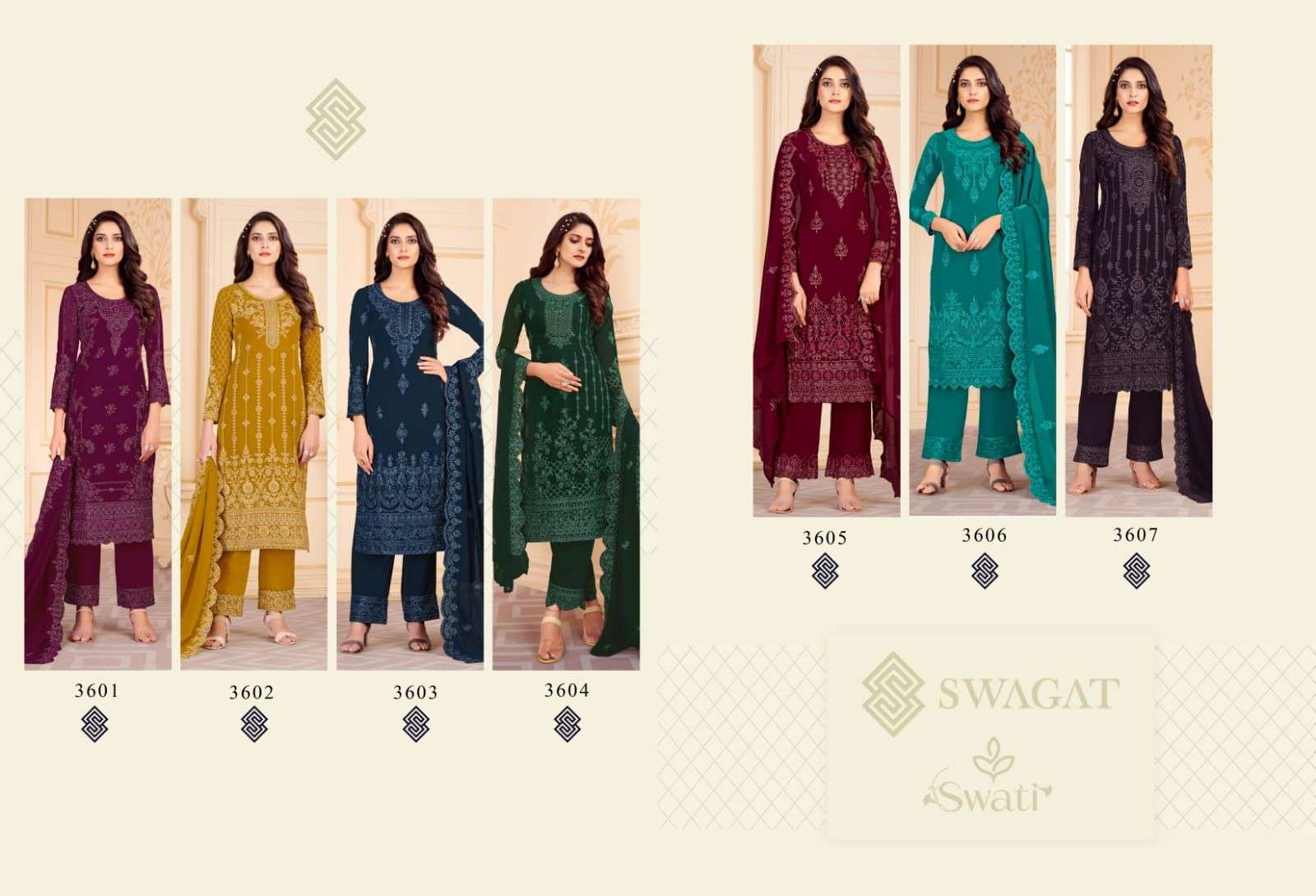 swagat swati 3601-3607 georgette designer salwar kameez