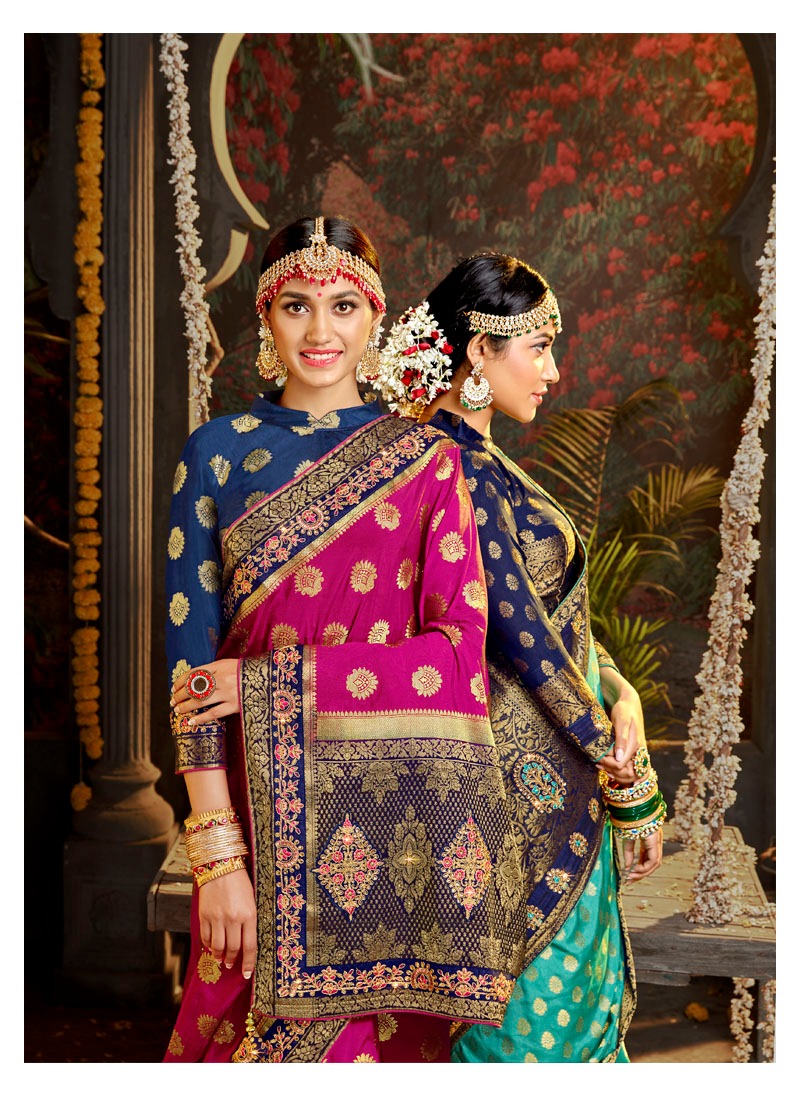 SURAT Catalog :-SWETANGI by Lifestyle Volume :-1 Fabric :-NYLONE SILK Packing :-BOX Price :- 1850 per Pcs . Set to set GST 5 Percent Extra Cut/Length :-6.3 NYLONE RAW SILK WITH EMBROIDERY LACE. Delivery from today |