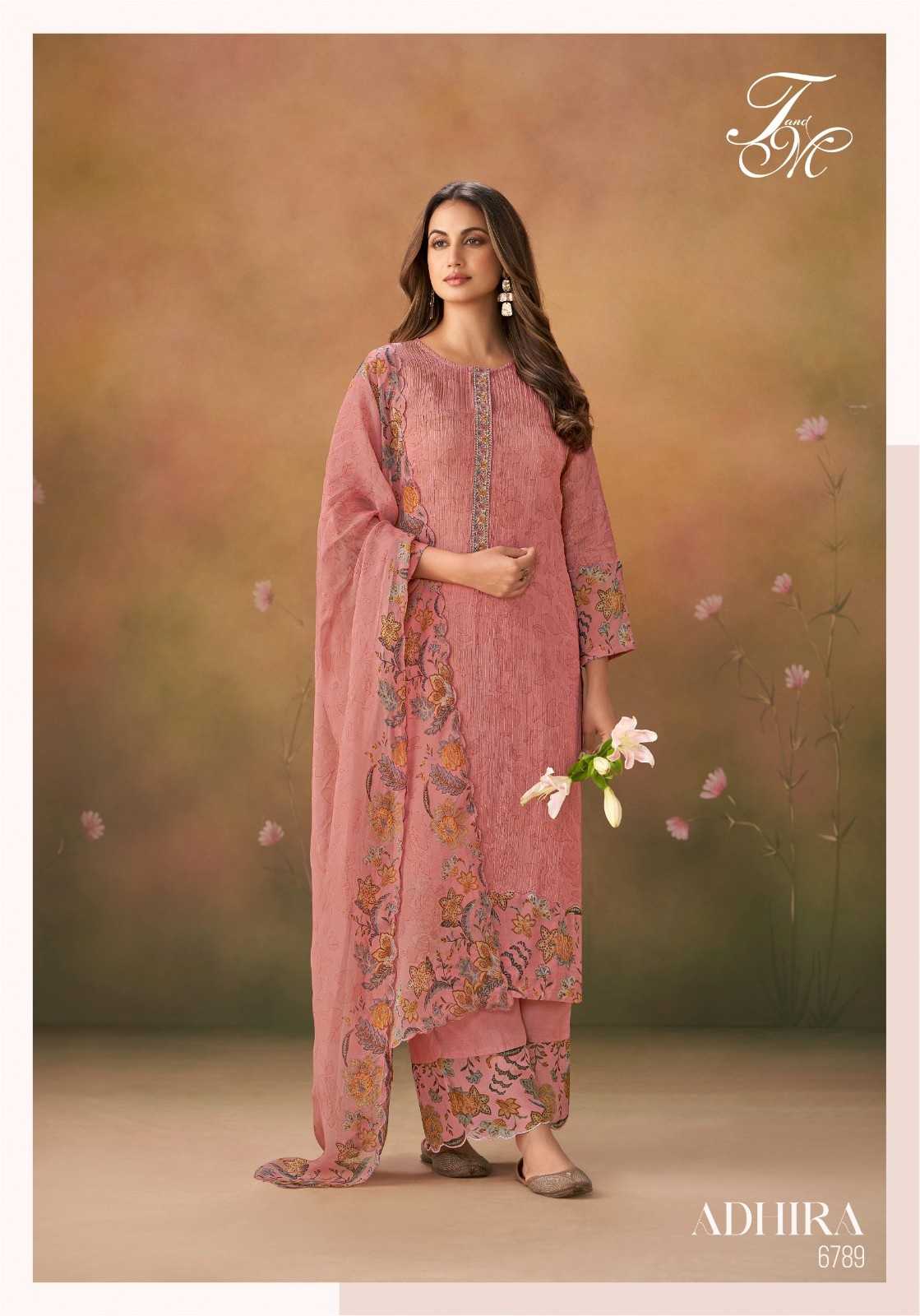 t&m adhira neck organza silk muslin crush stylish ladies suits
