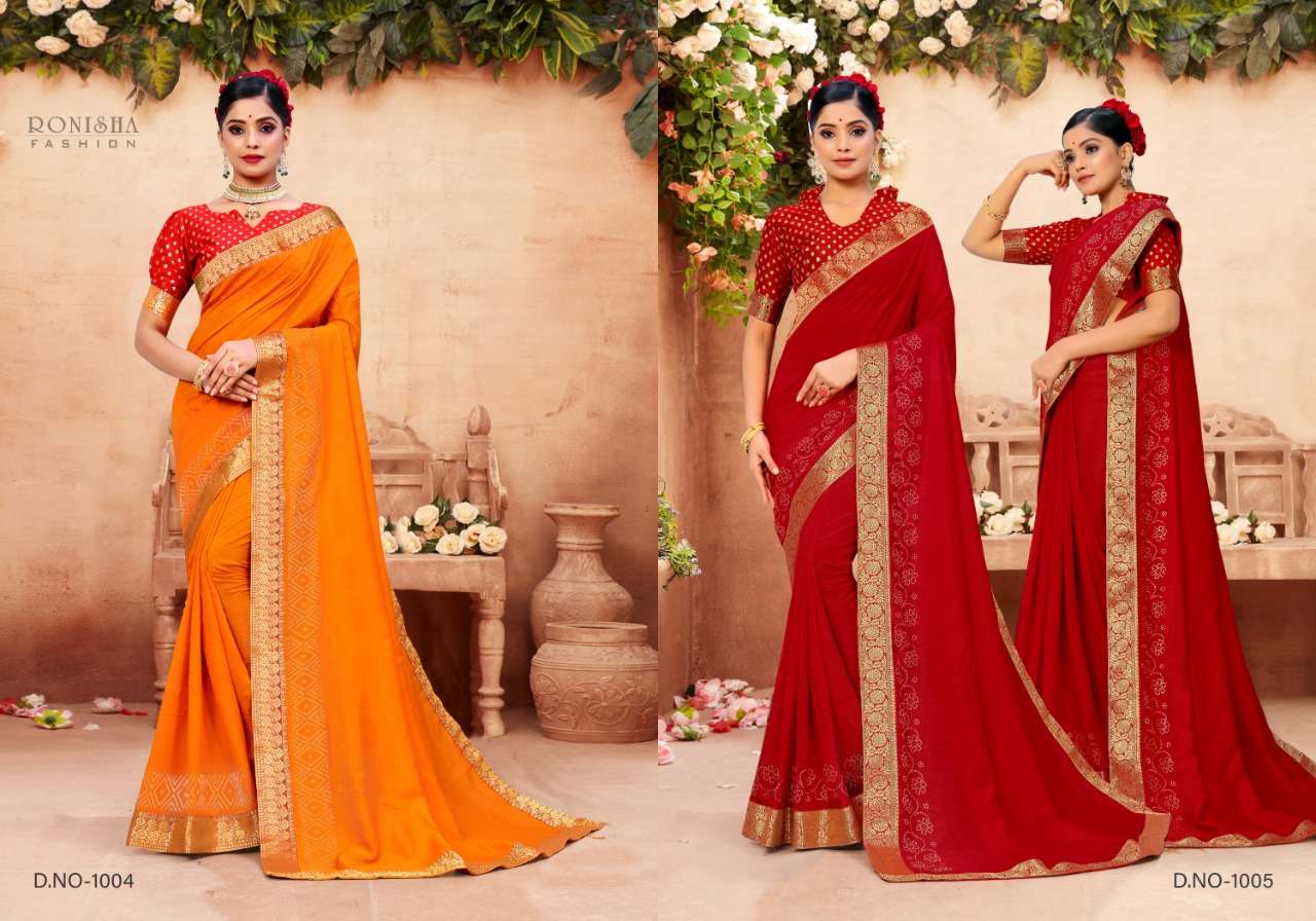 Tahira by ranjna saree fastive wear stylish border blouse saree Collection