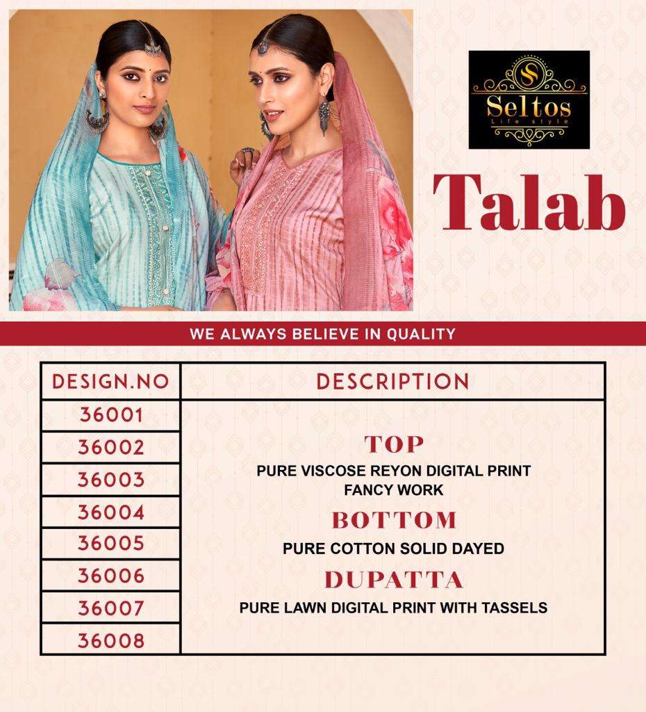 talab by seltos lifestyle viscose rayon casual wear dress materials