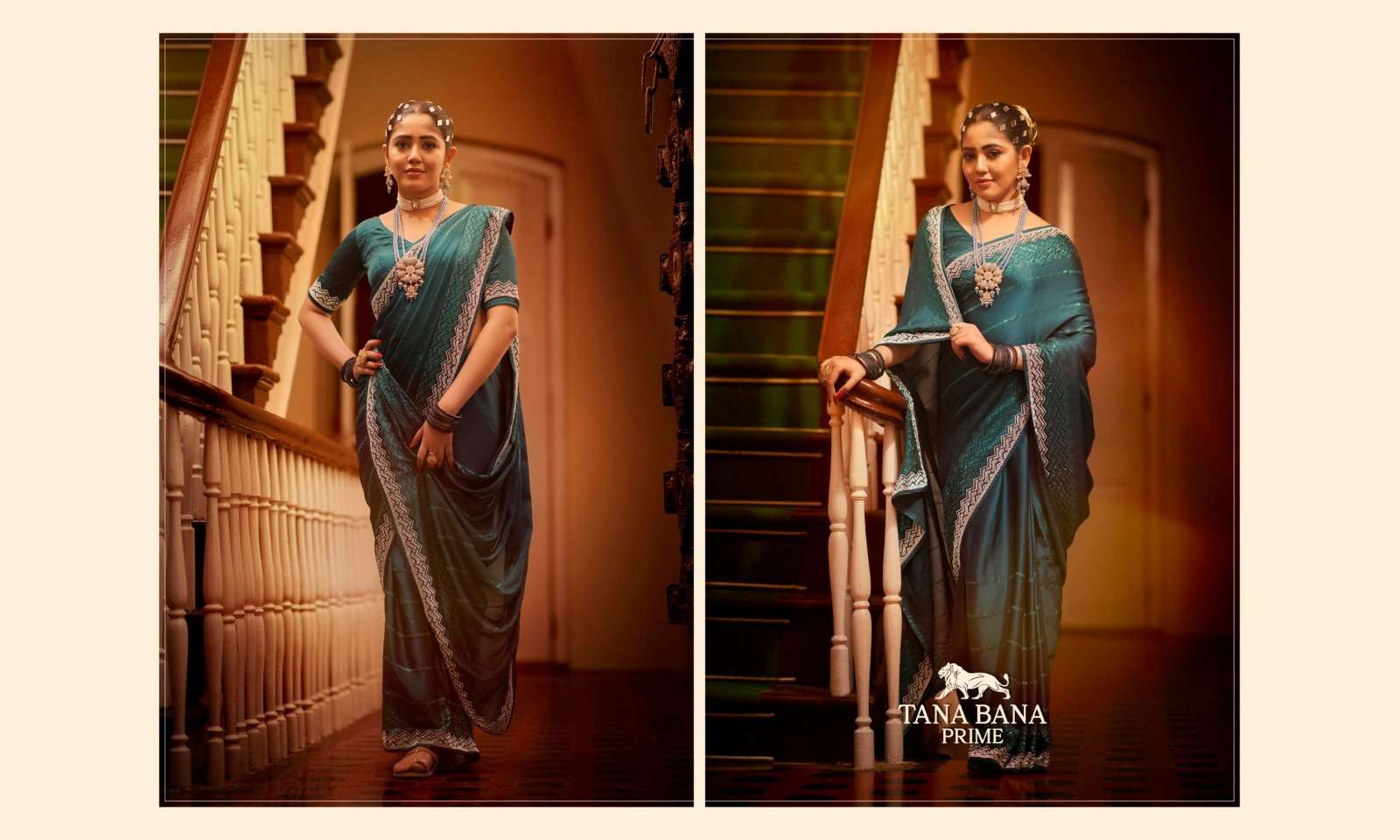 TANA BANA PRIME NEW CATALOGUE LAUNCH CATALOGUE DETAILS:- FABRIC DETAILS ▪︎WITH FULL SAREE HEAVY CRYSTAL ZARKAN WITH SWAROVSKI WORK PACKING DETAILS:- BOX ▪︎ WOODEN BOX PACKING RATE:-3830₹/- |